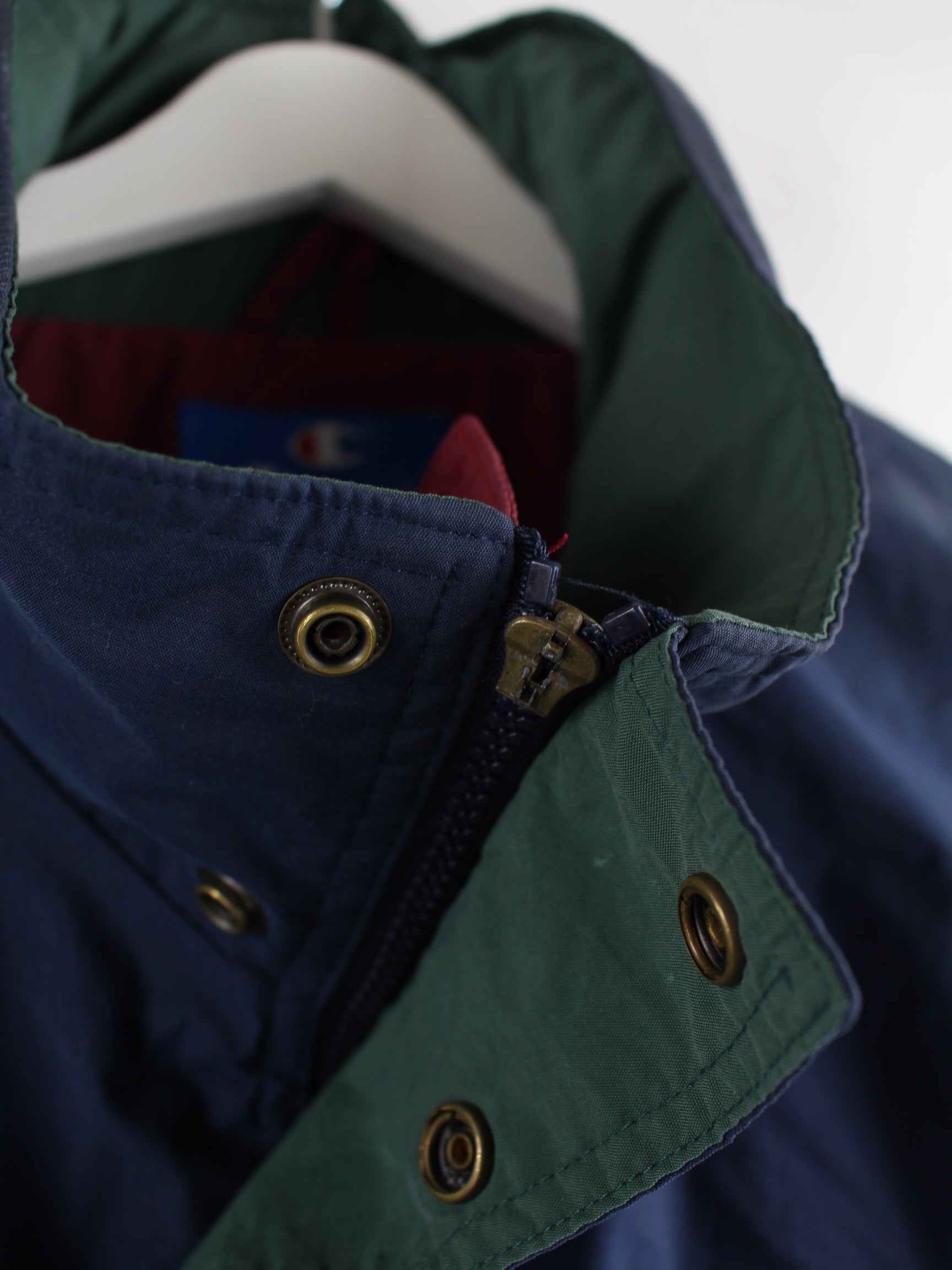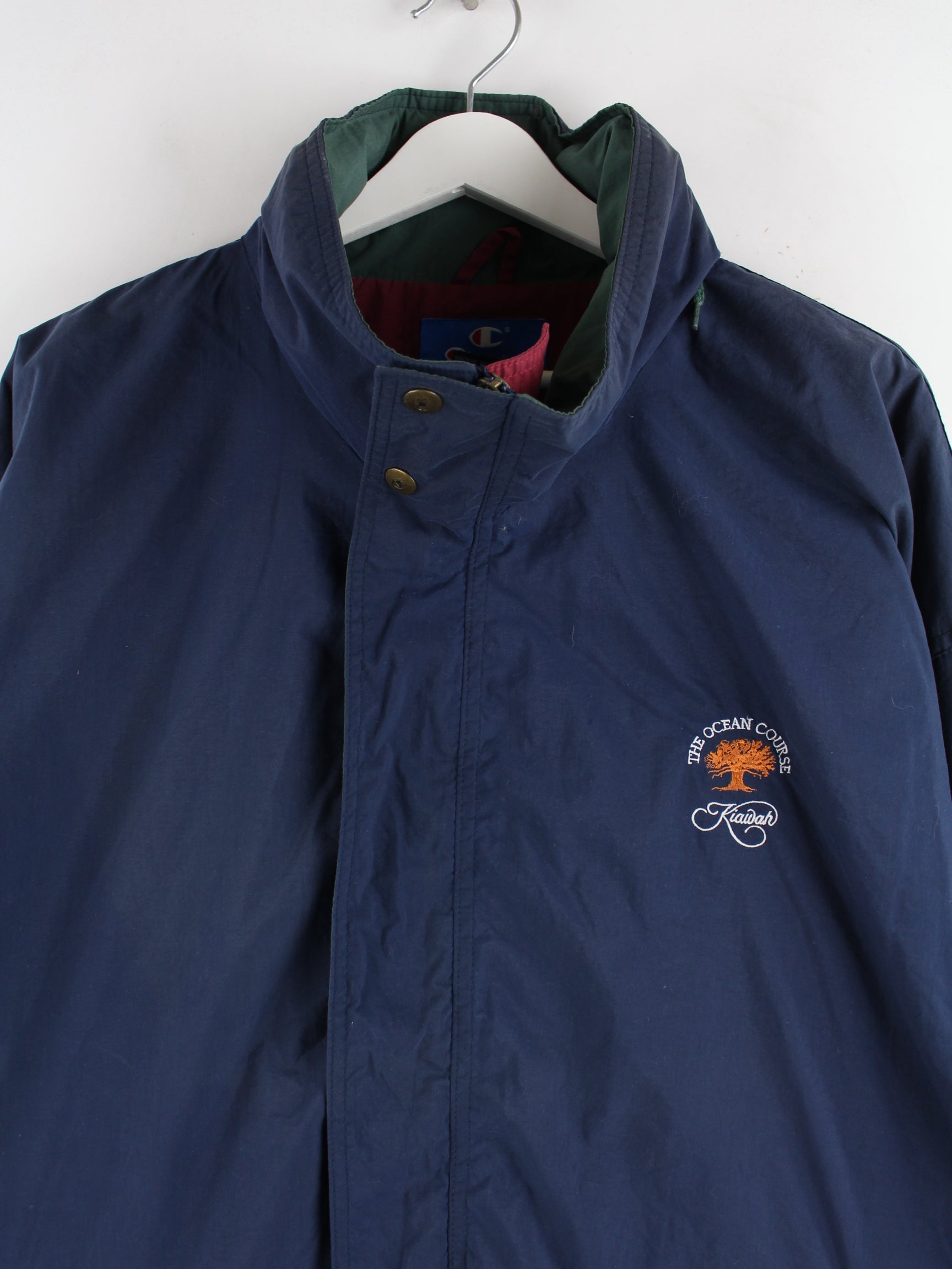 Lightweight jacket from the Champion brand in size XL from the 90's. It is made of synthetic material and is available in blue.