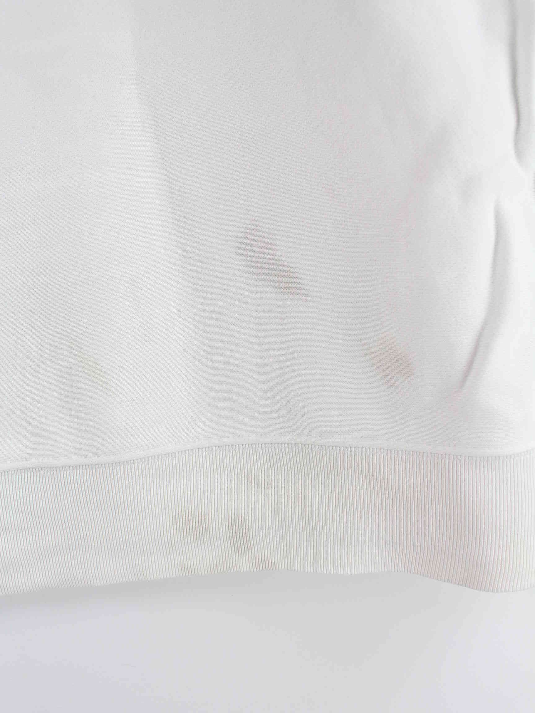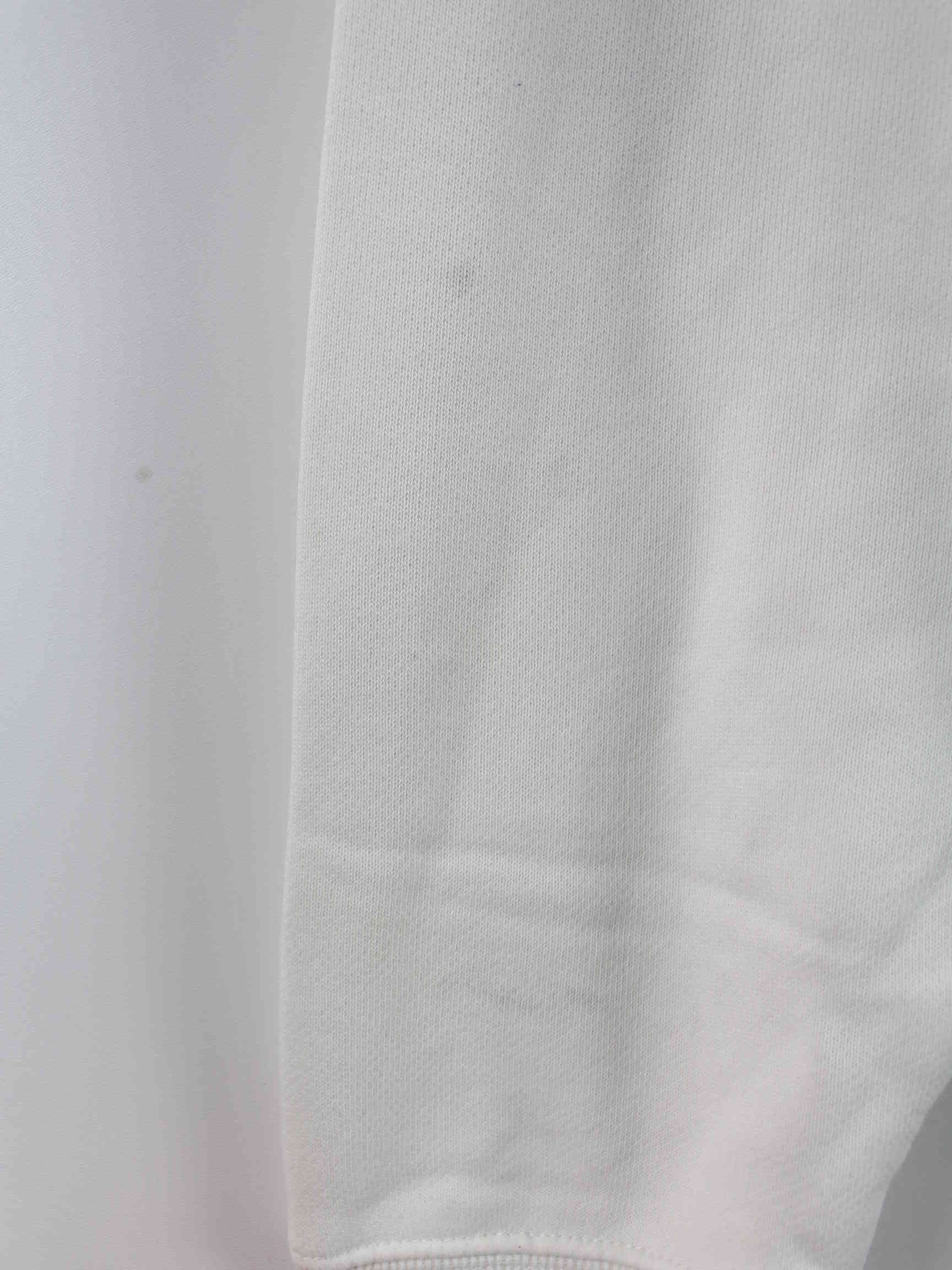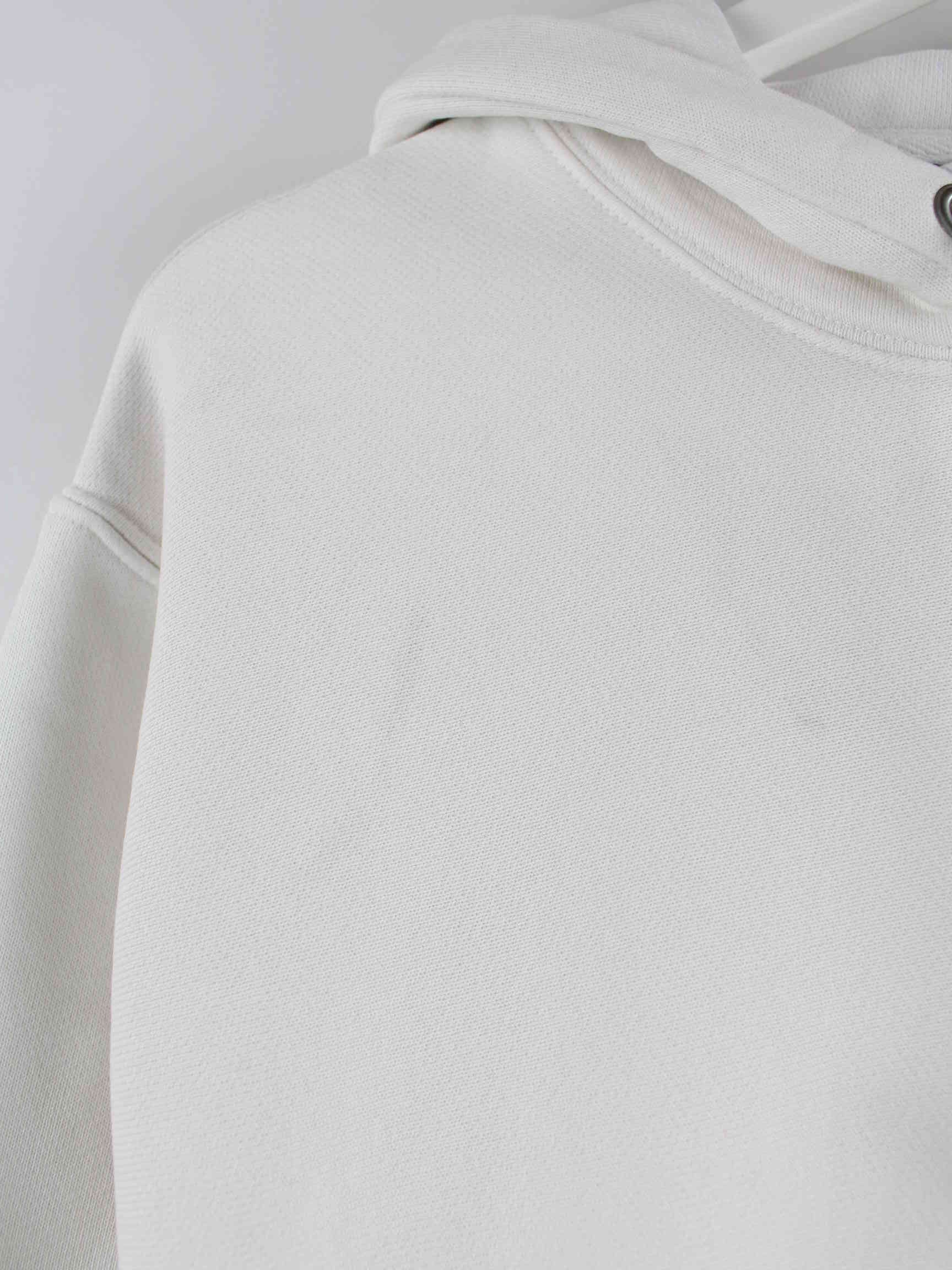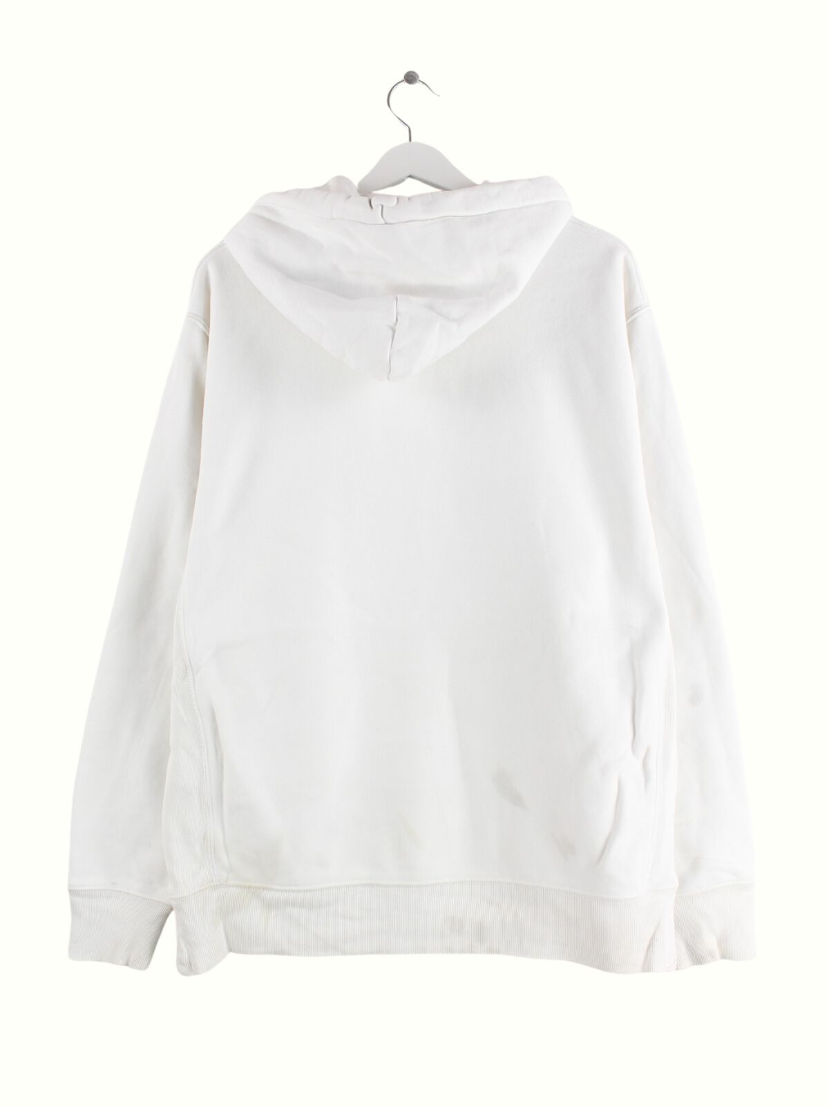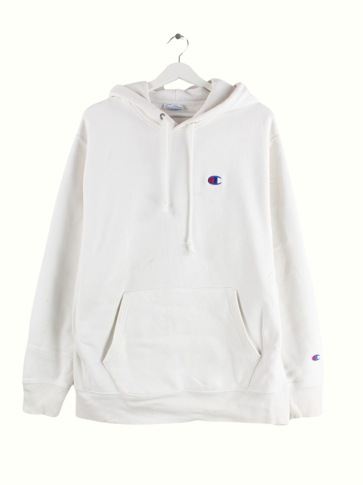White hoodie from the Champion label from the 90s in size XL. It is made from a cotton blend. We would describe the condition as 'OK' (see pictures).