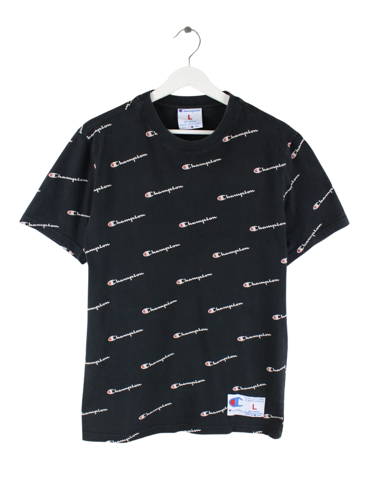 Schwarzes T-Shirt von Champion in Größe L. Es ist aus Baumwolle gefertigt und in sehr gutem Zustand zu bekommen.