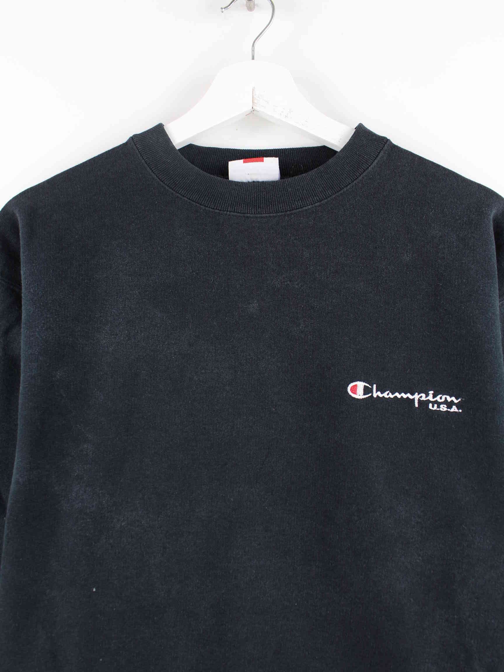 Sweater from the Champion label with an embroidered logo in size S. It is made from a cotton blend and is available in black.