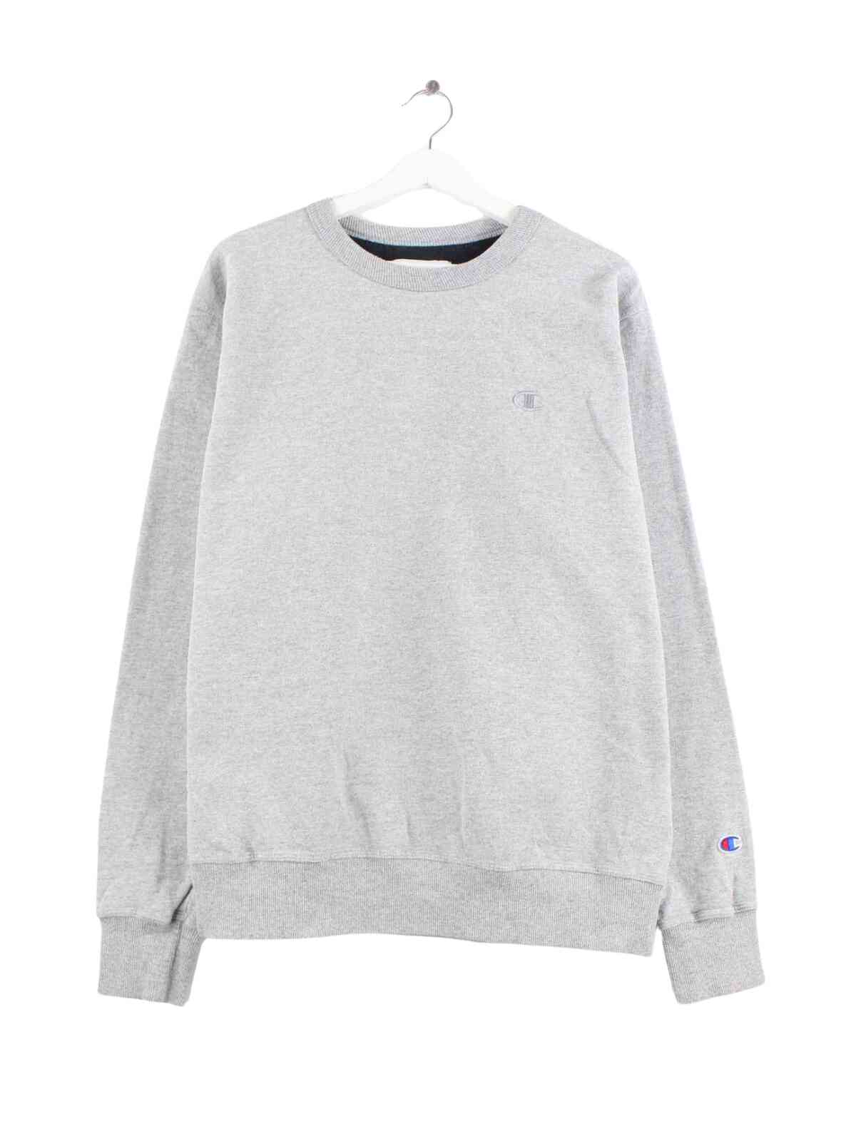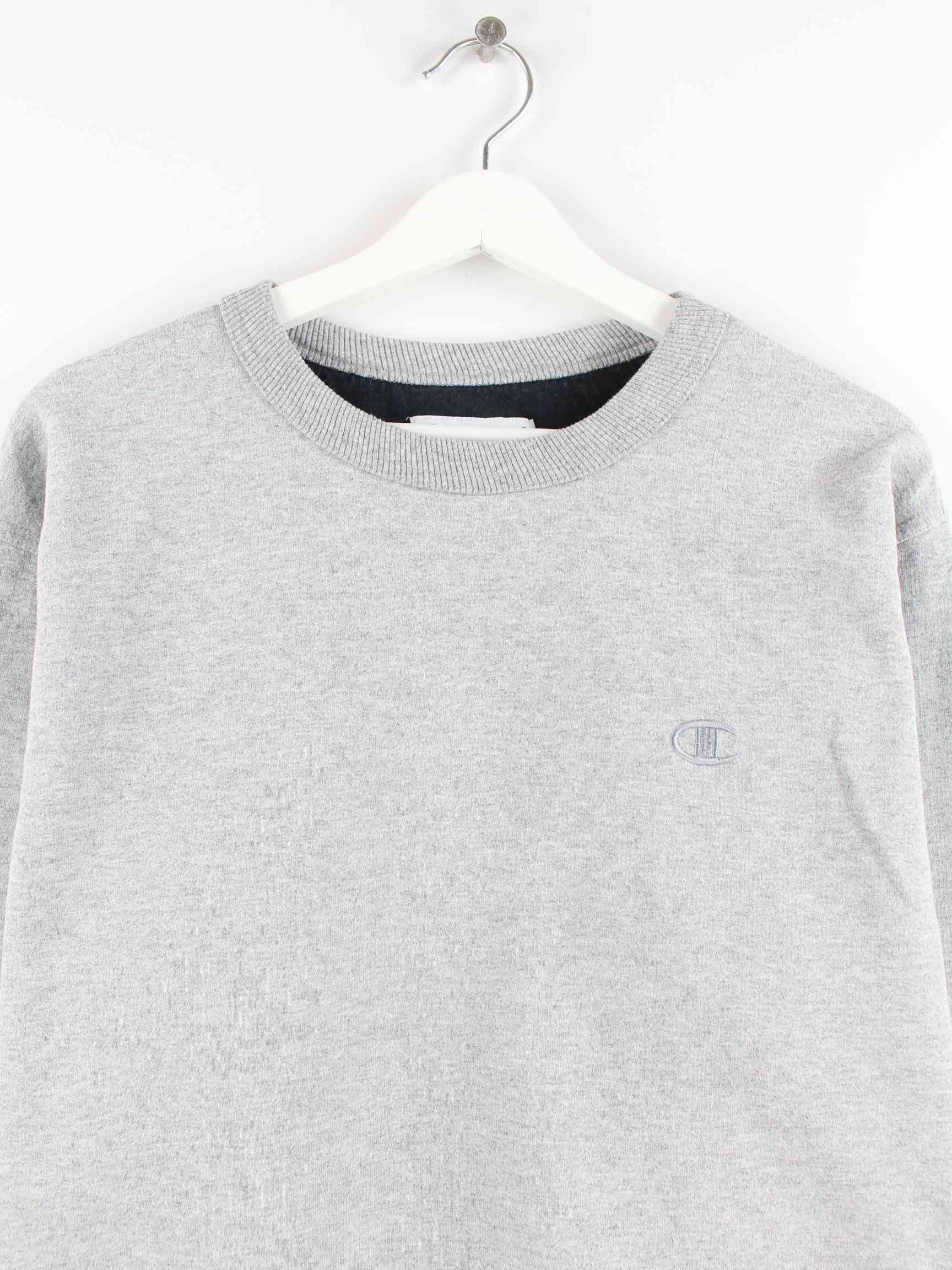 Grauer Champion Basic Sweater aus den 2000er Jahren mit kleinem aufgesticktem Logo.
