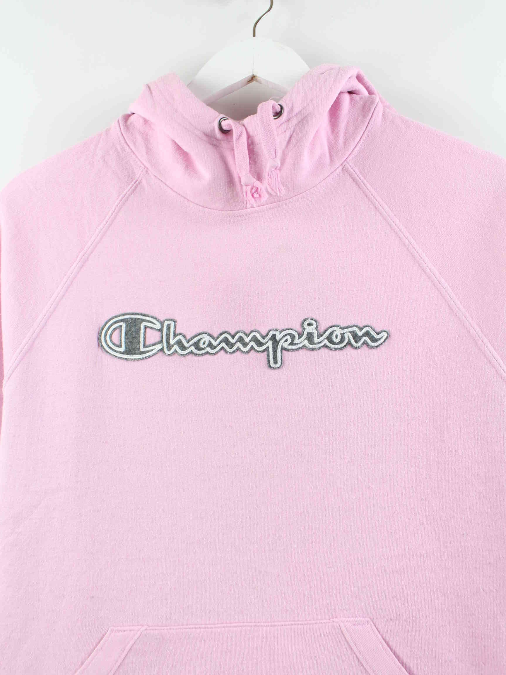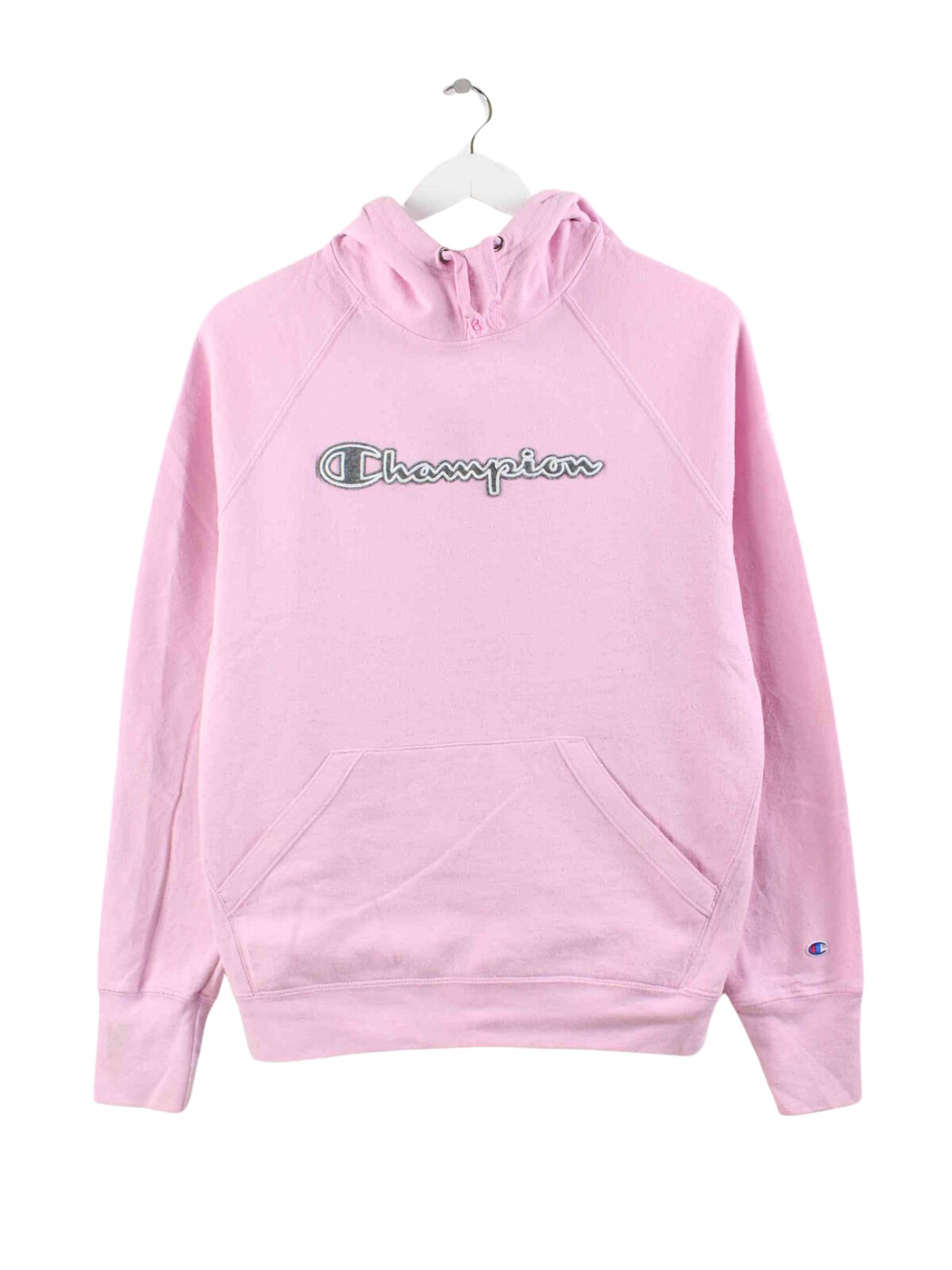 Hoodie from the Champion label with embroidery in size M. It is made from a cotton blend and is available in pink.