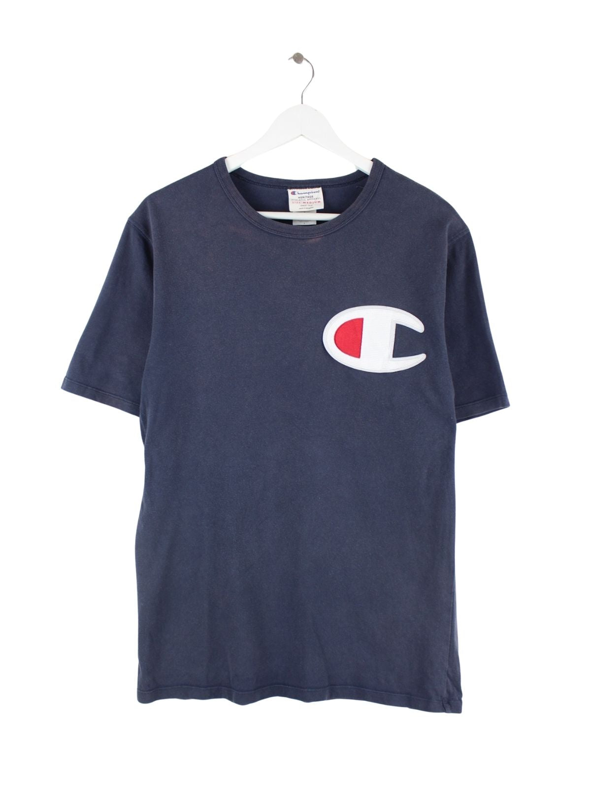 T-Shirt von Champion mit gestickten Motiven in Größe M. Es ist aus Baumwolle gefertigt und in Grau bei uns zu bekommen.