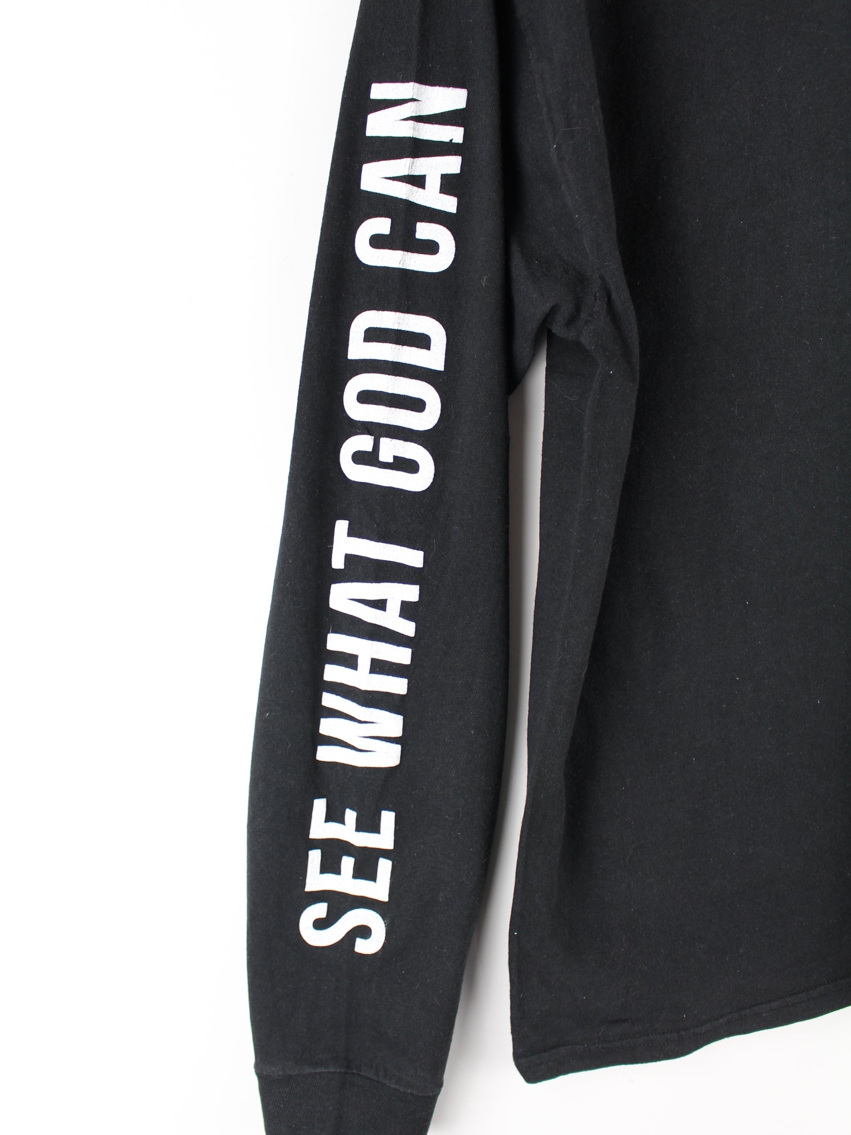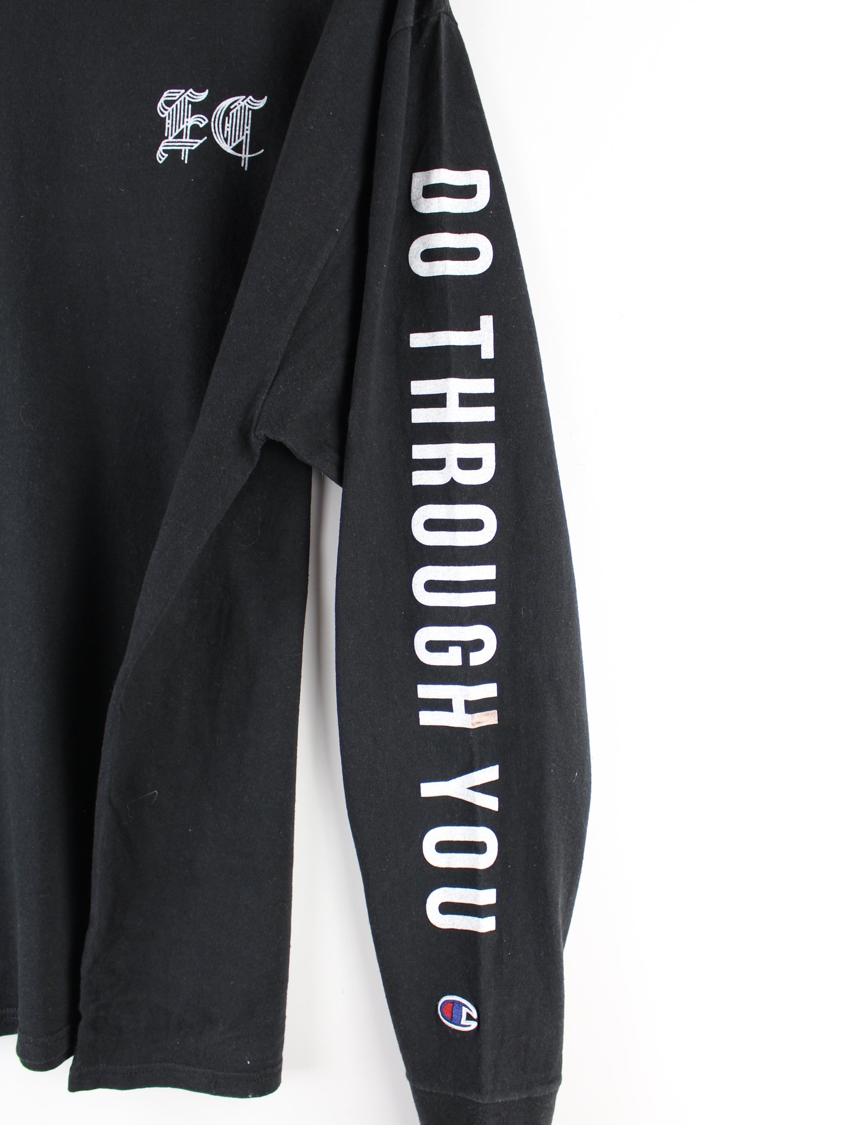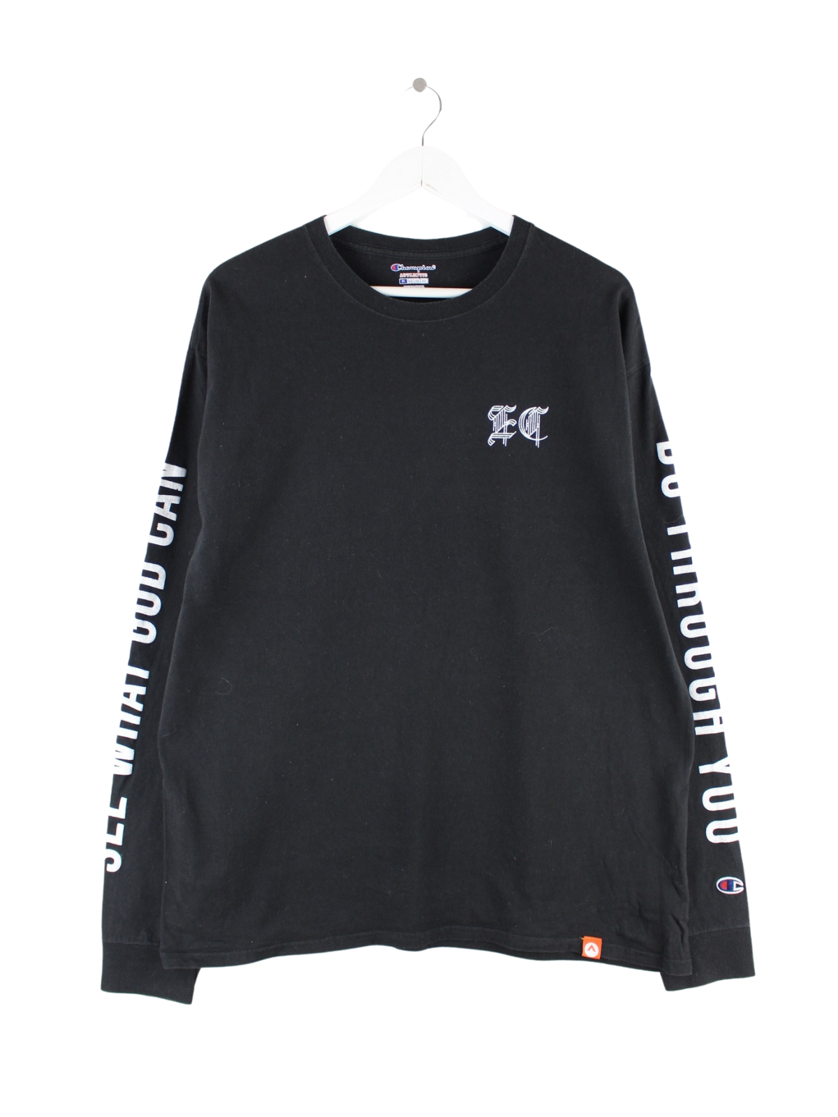 Sweater from the brand Champion in size XL. It is made from a cotton blend and is available from us in black. With a rare God print.