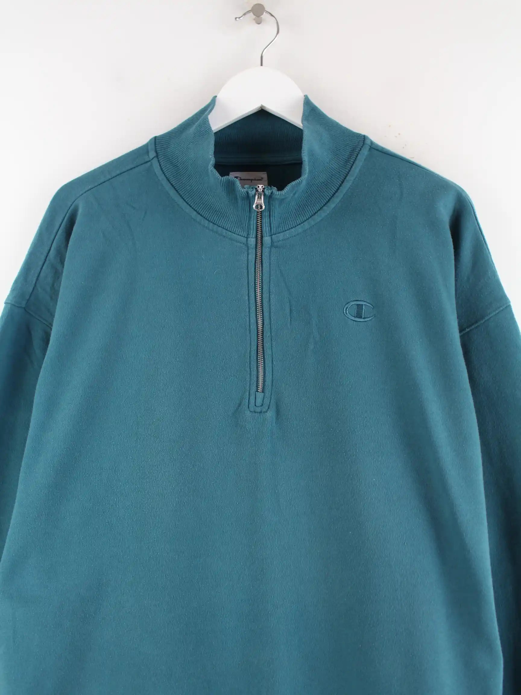 Blauer Sweater mit half Zip vom Label Champion in Größe XXL. Er ist aus einer Baumwollmischung und in sehr gutem Zustand im Bestand.