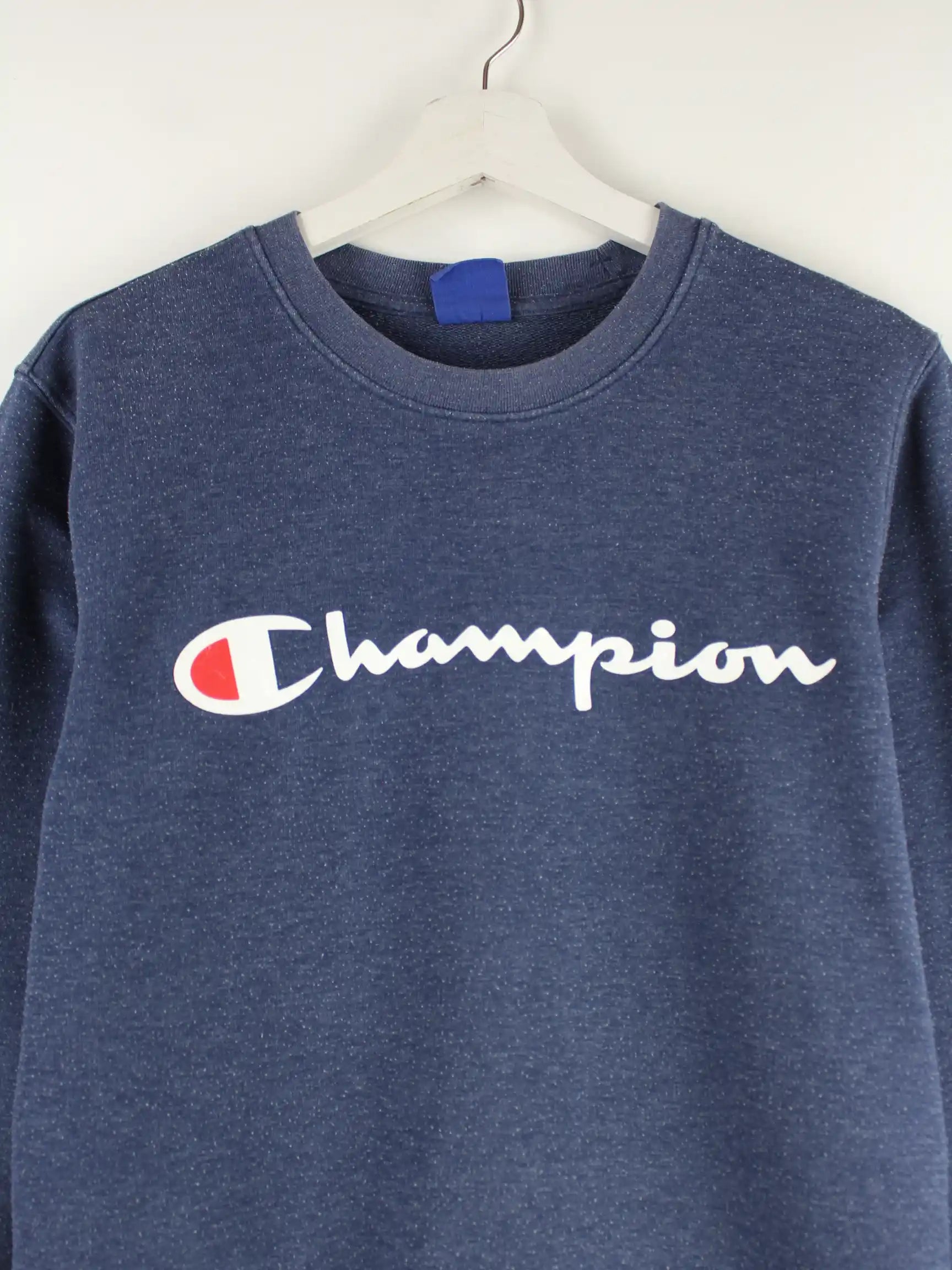 Sweater der Brand Champion in Größe S. Er ist aus einer Baumwollmischung gemacht und in Blau bei uns zu bekommen. Mit schönem Logo Print.