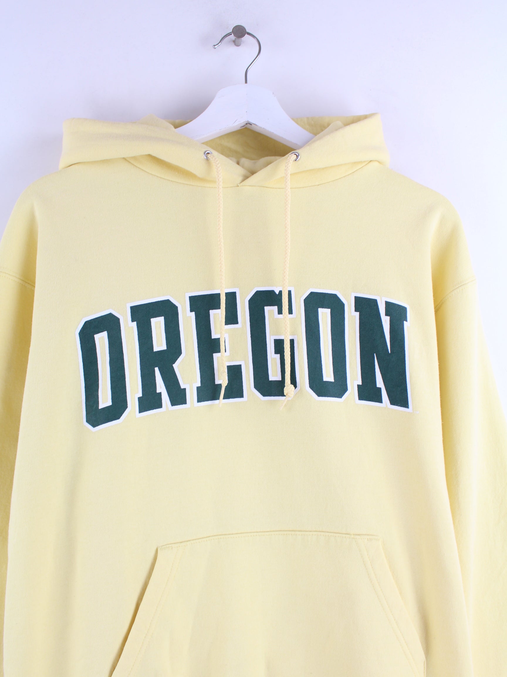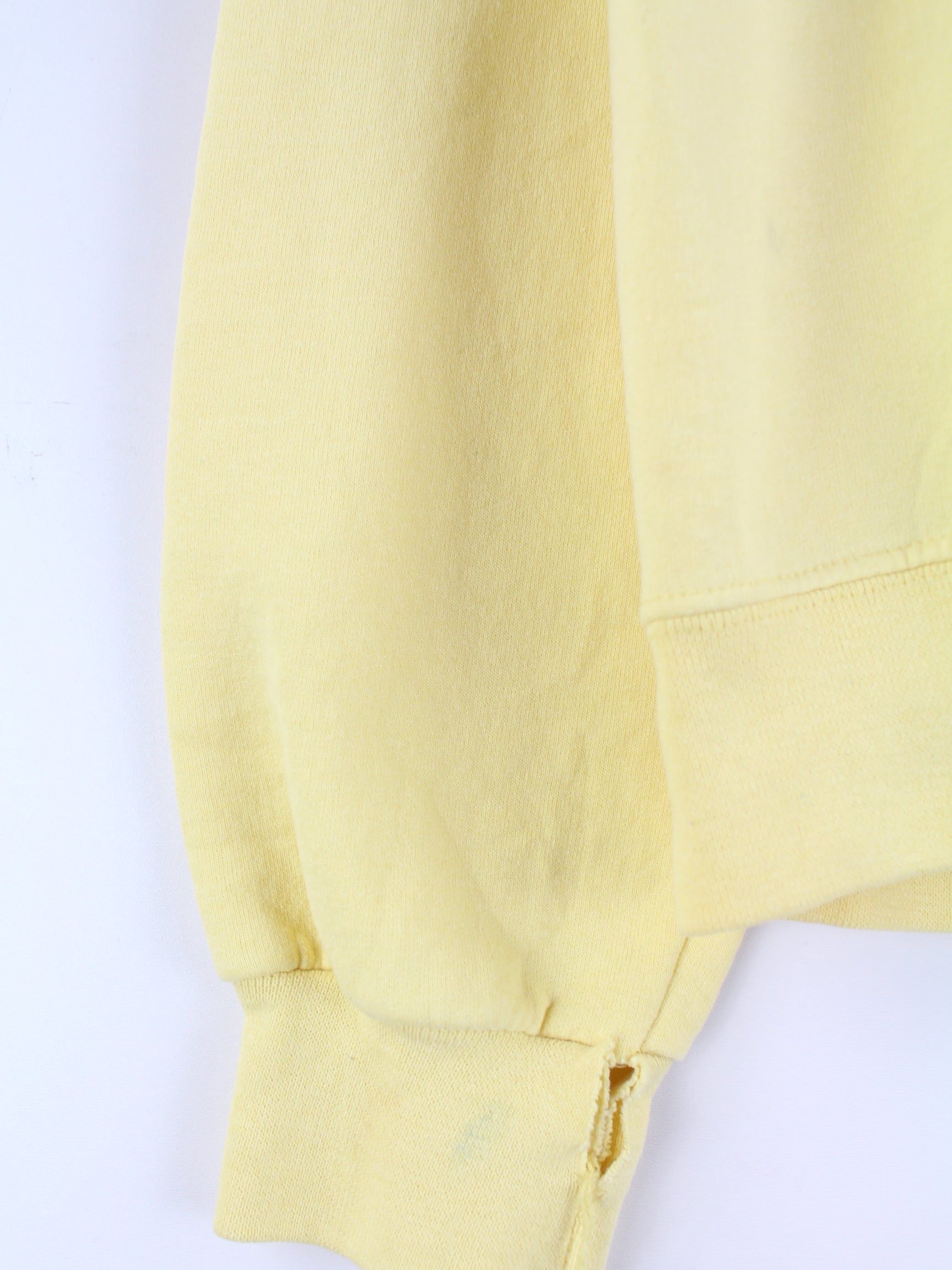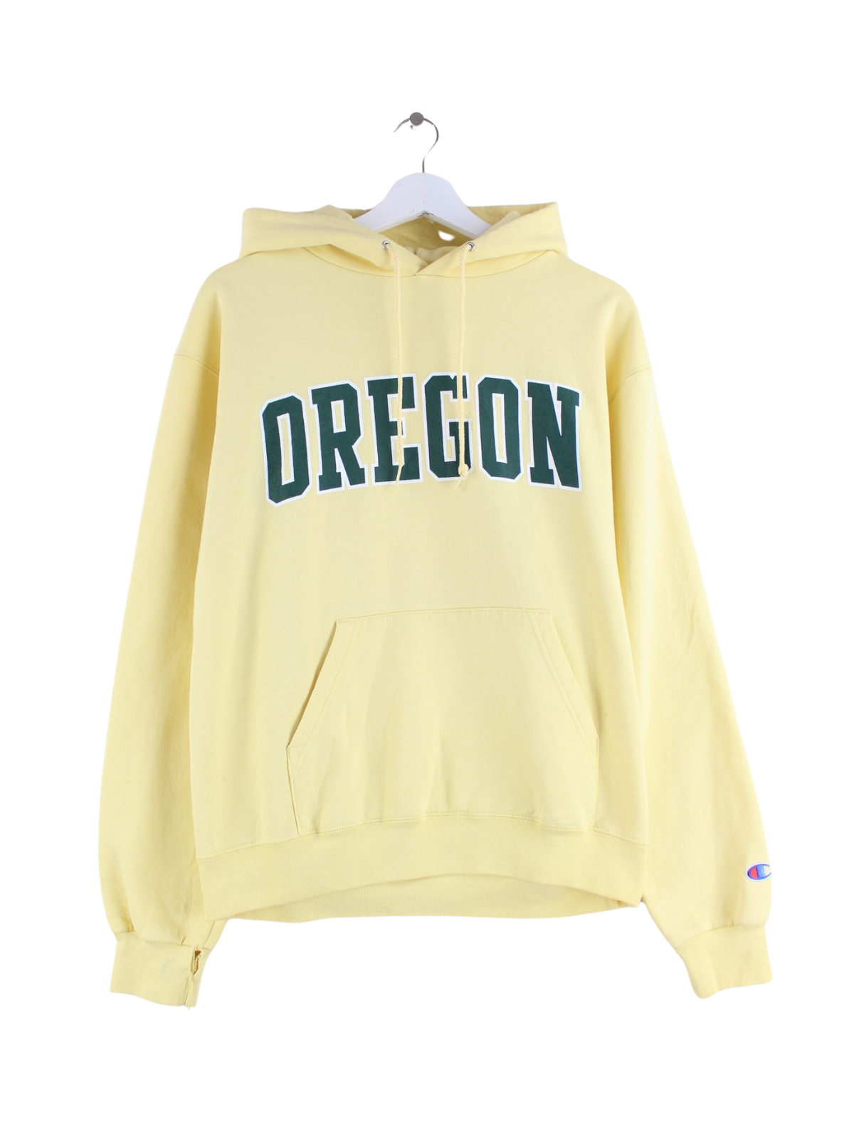 Yellow hoodie from Champion in size M. It is made from a cotton blend. We would describe the condition as 'fine' (see pictures).