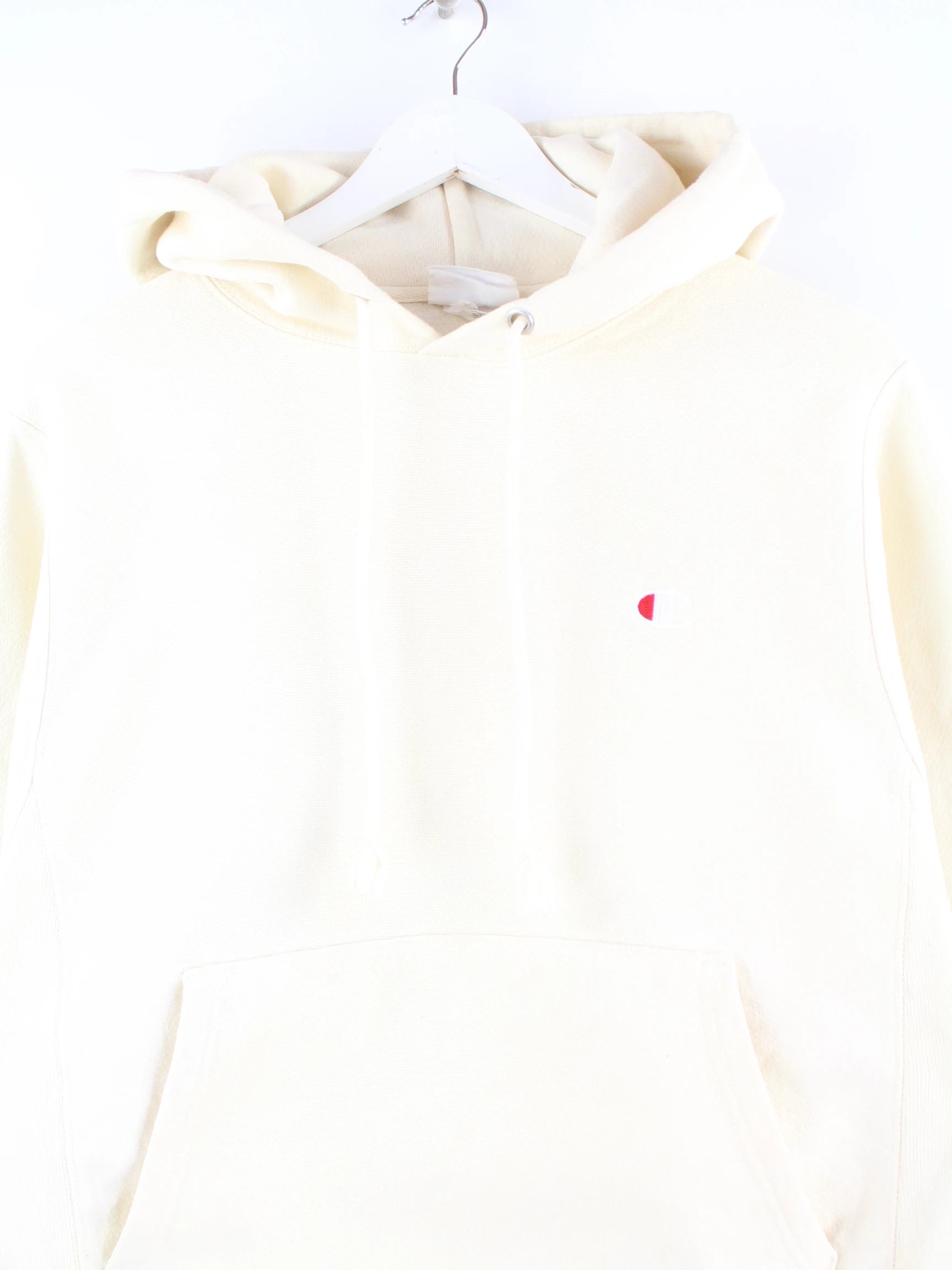 Beigefarbener Hoodie vom Label Champion in Größe S. Er ist aus einer Baumwollmischung hergestellt. Den Zustand würden wir als 'In Ordnung' bezeichnen (vergl. Bilder).