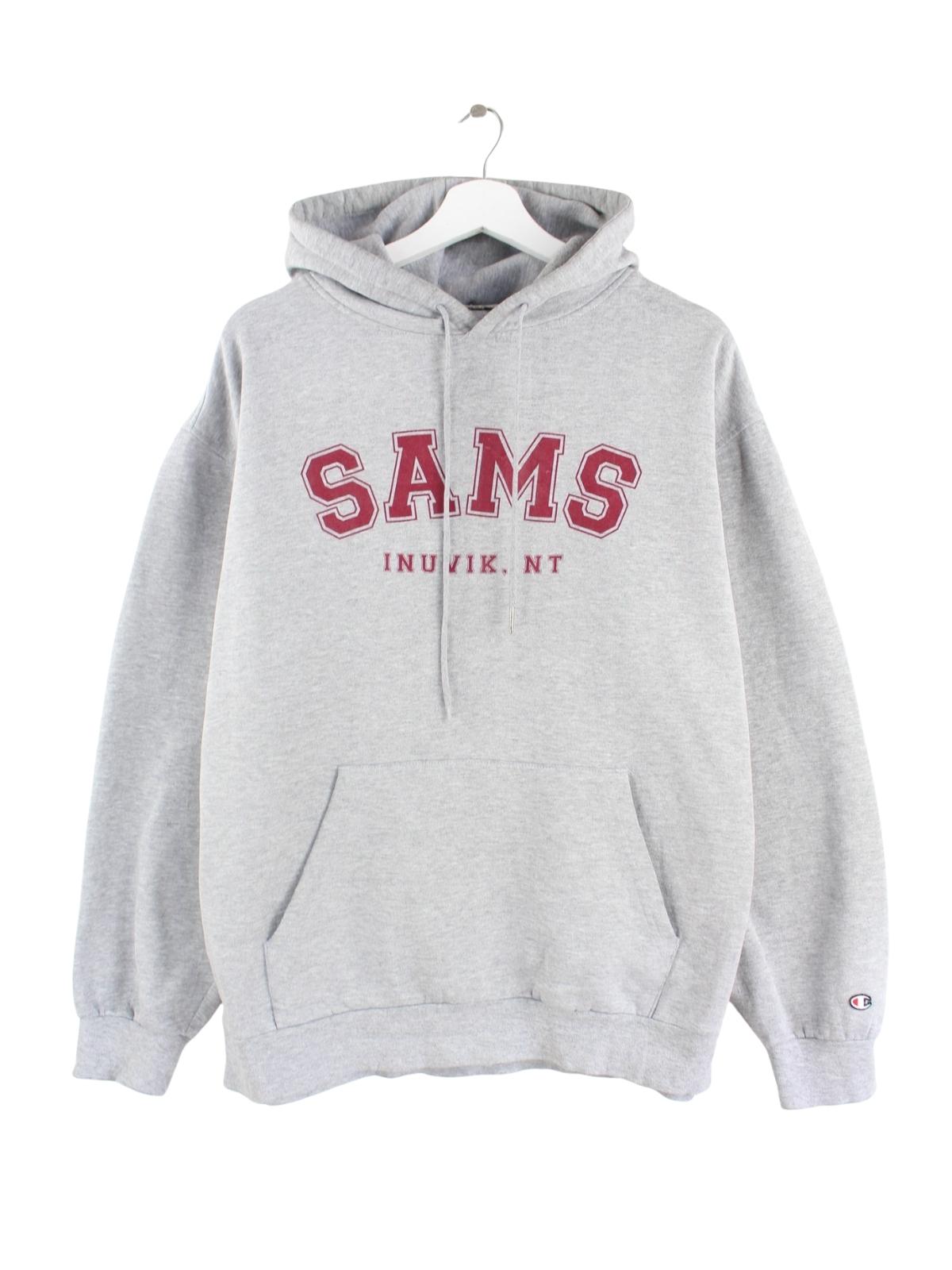 Hoodie vom Brand Champion in Größe XL. Er ist aus einer Baumwollmischung gefertigt und in Grau im Bestand. Mit chiquem SAMS Print.