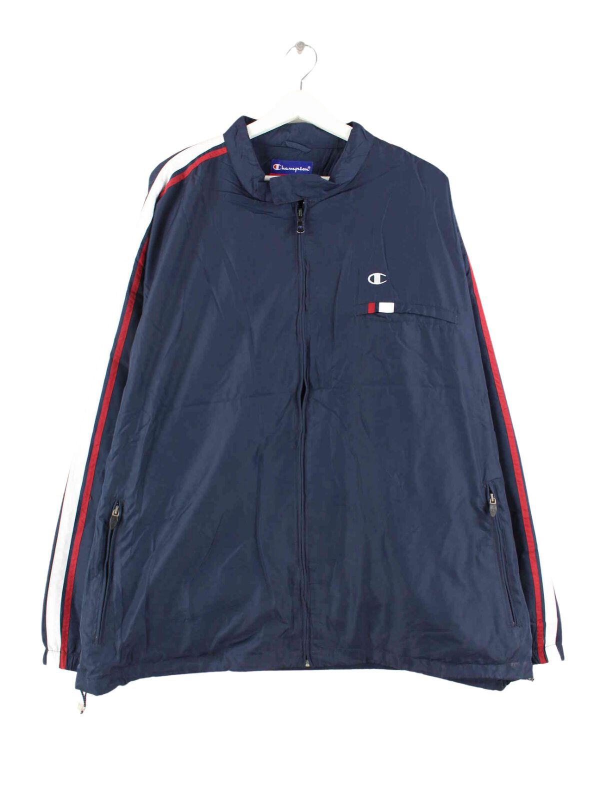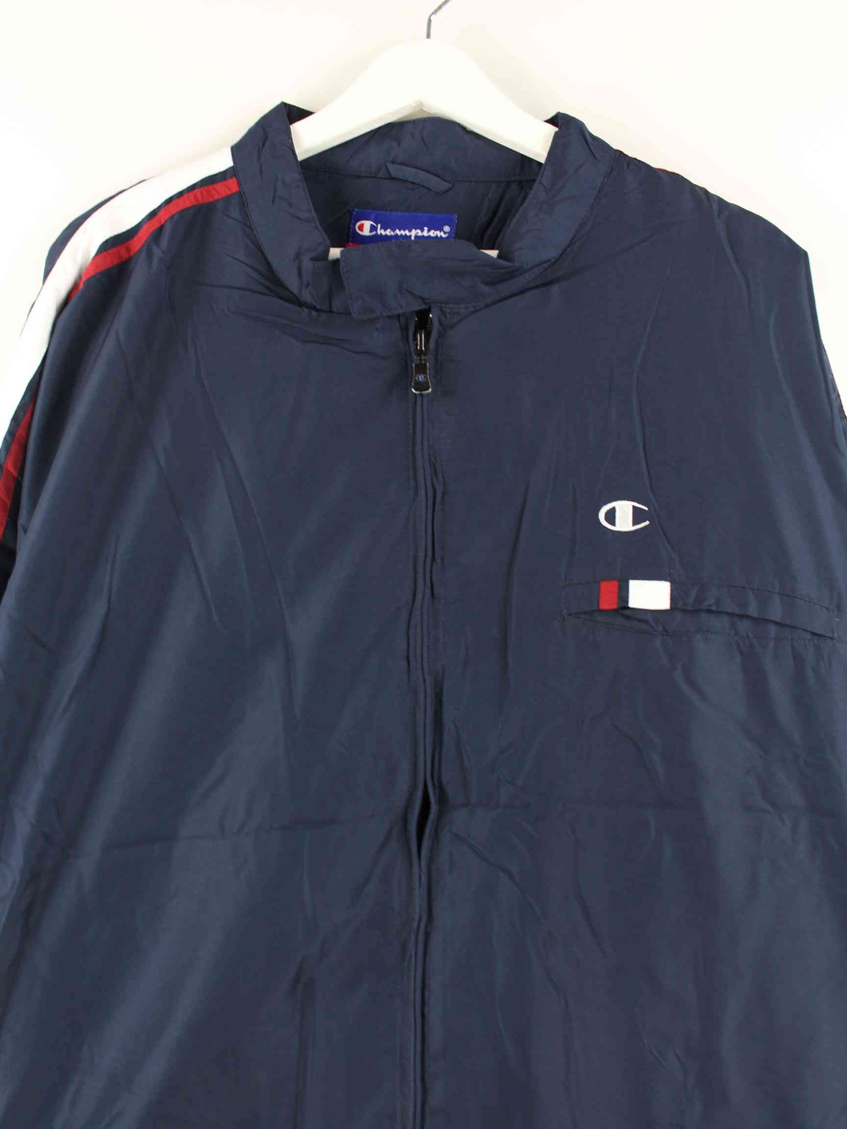 Blue training jacket from the Champion brand in size 4XL. It is made of synthetic material and is in very good condition.