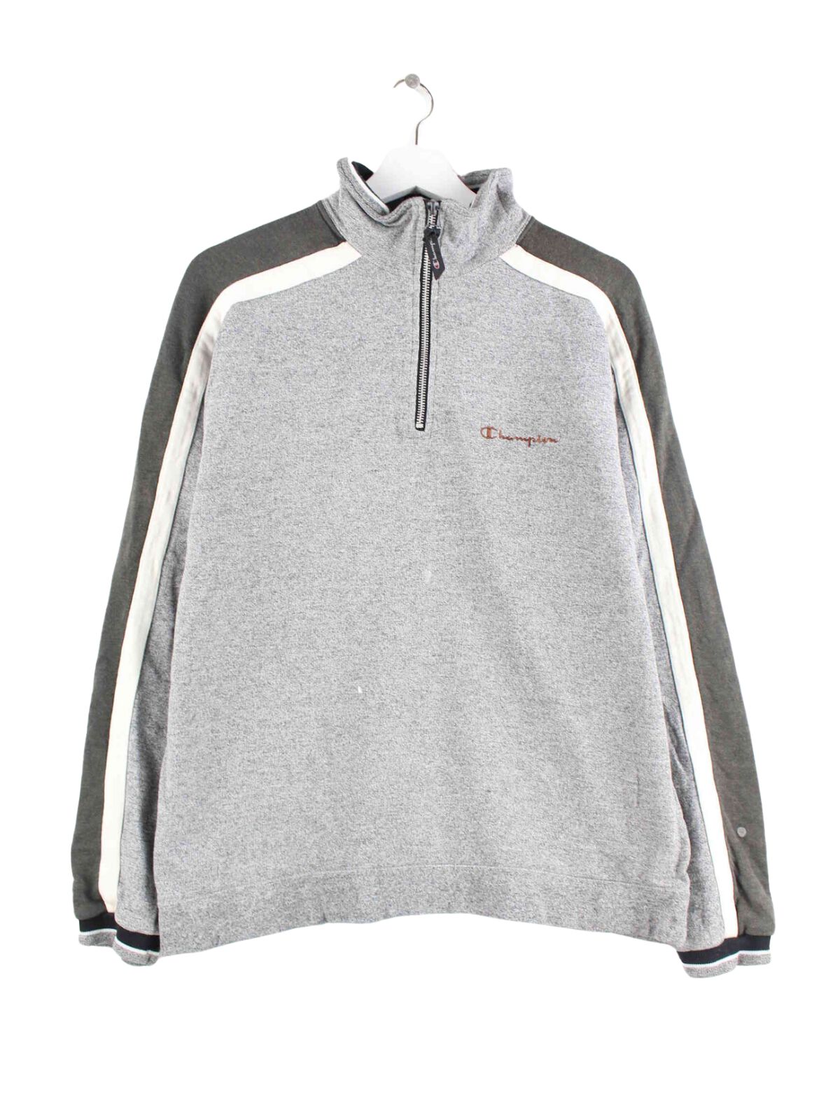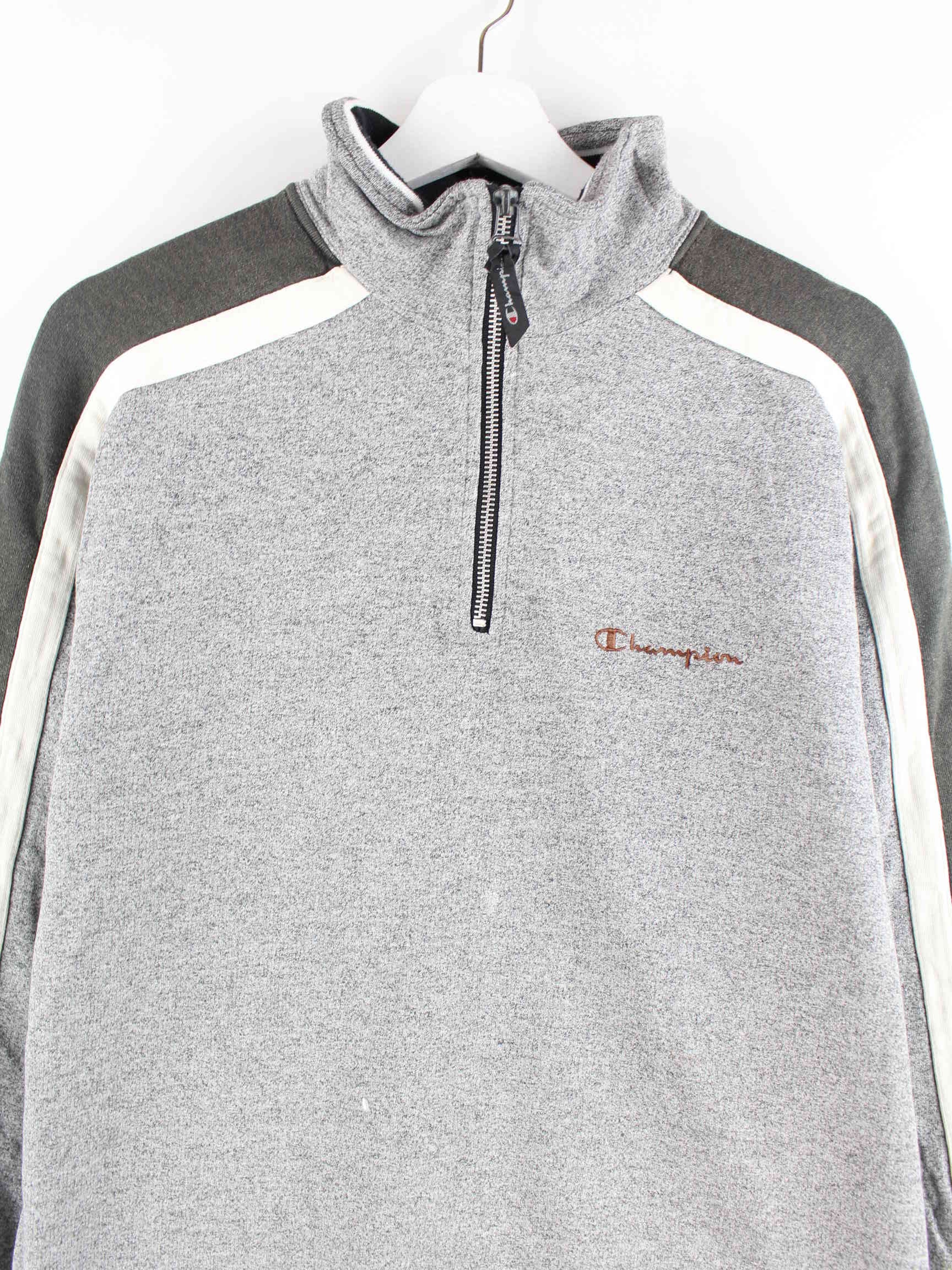 Gray sweater with embroidery and half zip from the brand Champion from the early 2000s in size M. It is made from a cotton blend and is available in good condition.