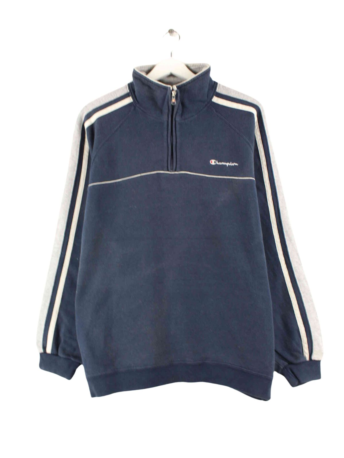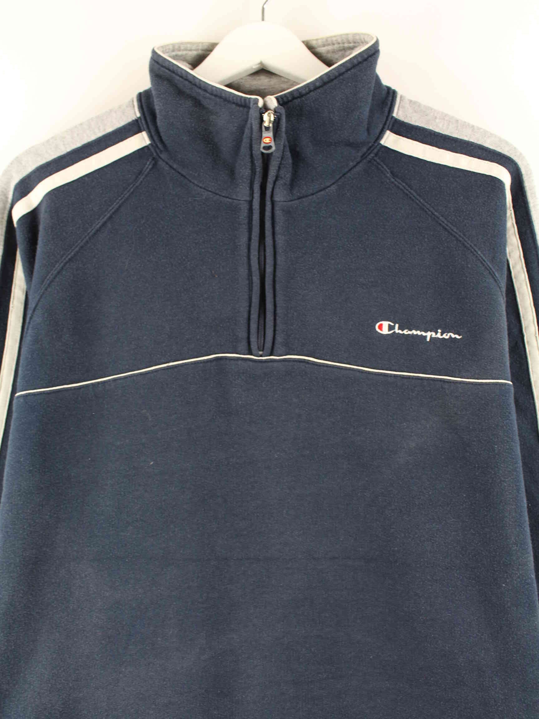 Sweater from the brand Champion with half zip in size L from the early 2000s. It is made from a cotton blend and is available in black.