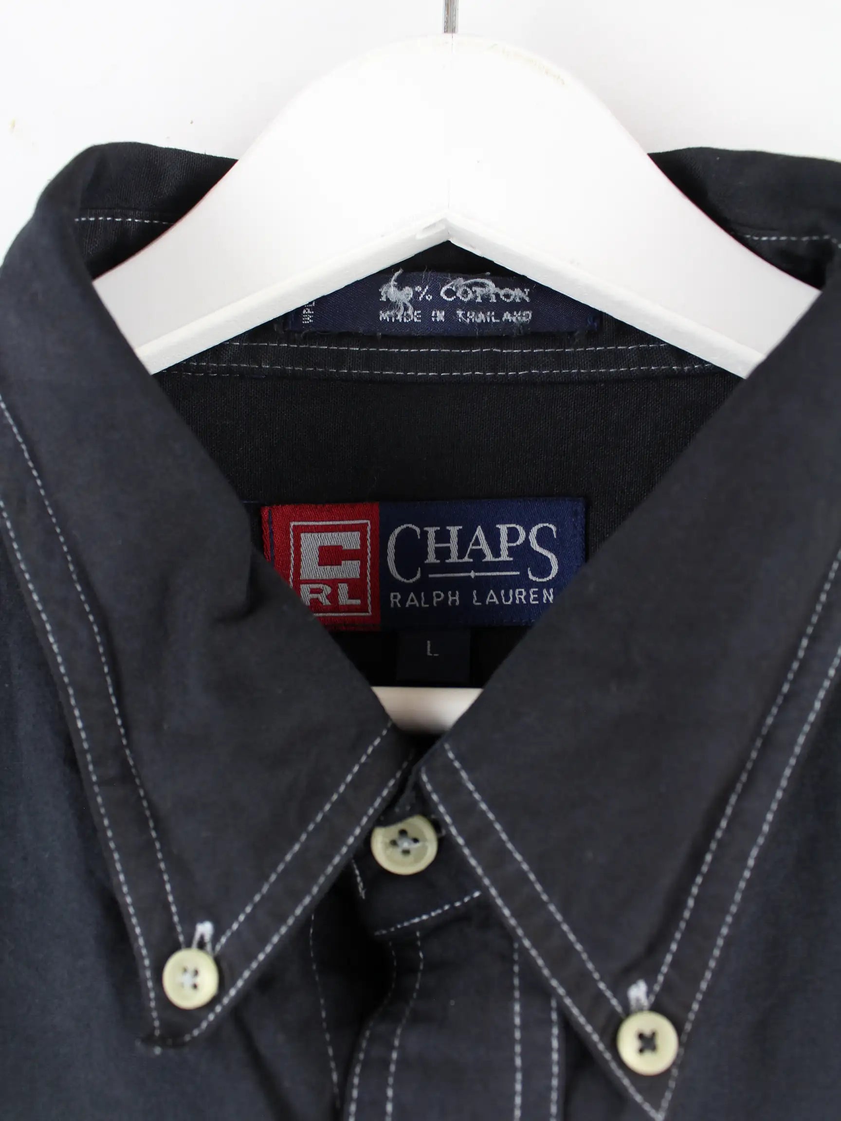 Schwarzes Freizeit Hemd von Chaps by Ralph Lauren in Größe L. Es ist aus Baumwolle angefertigt und in sehr gutem Zustand vorrätig.