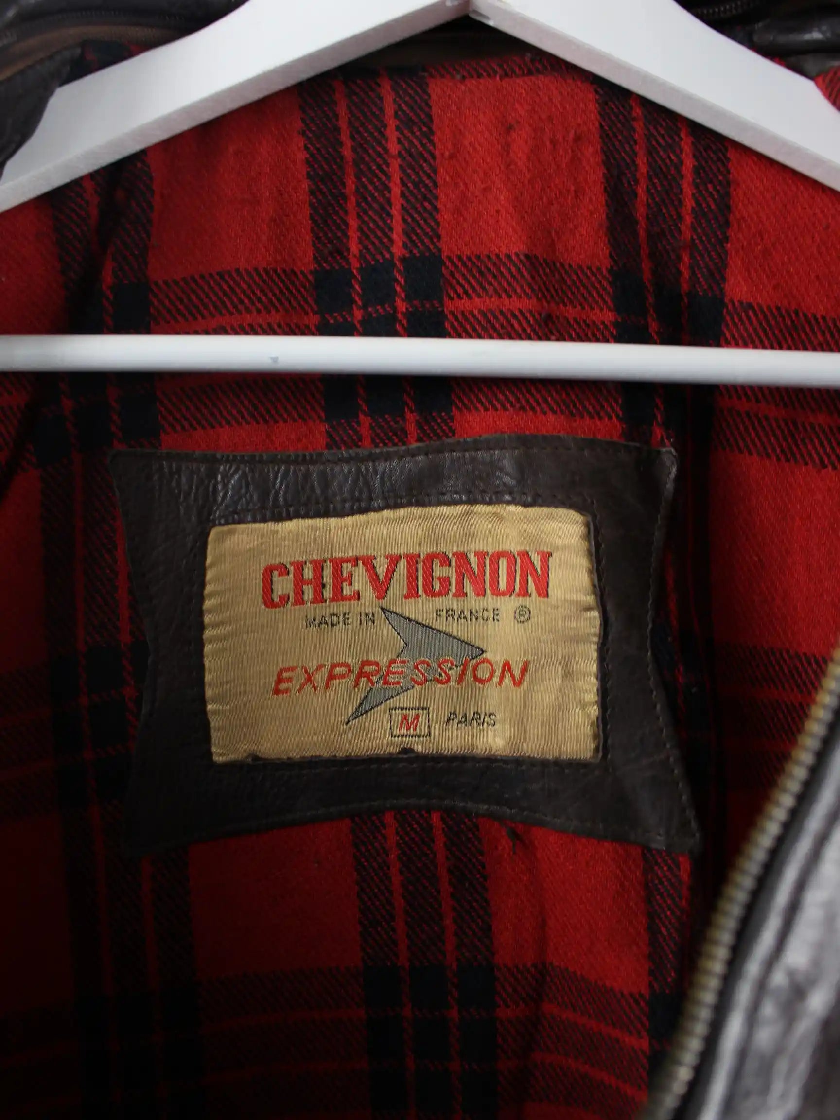 Jacke von Chevignon in Größe M aus den 90'ern. Sie ist aus Leder und in Braun im Bestand.