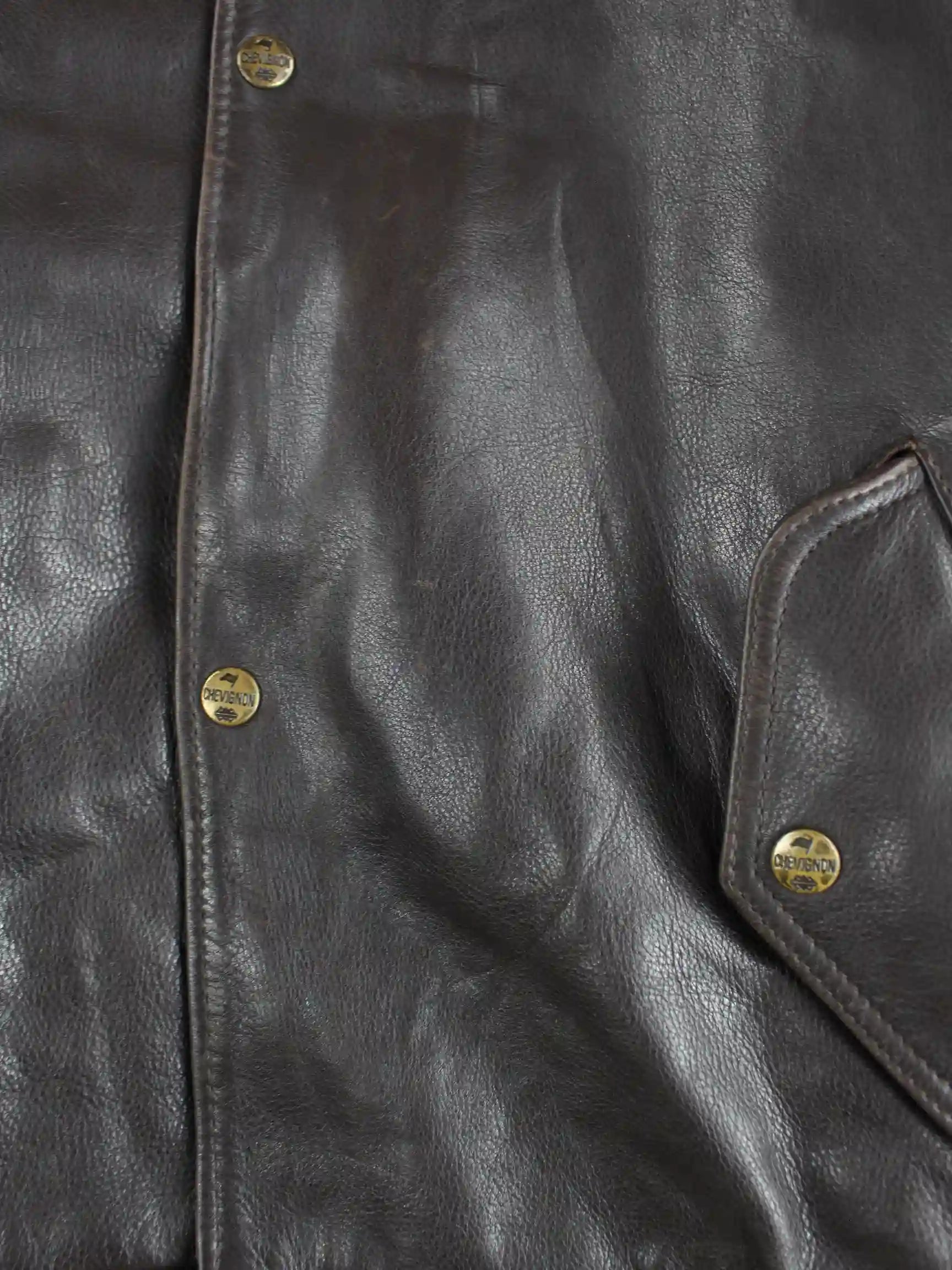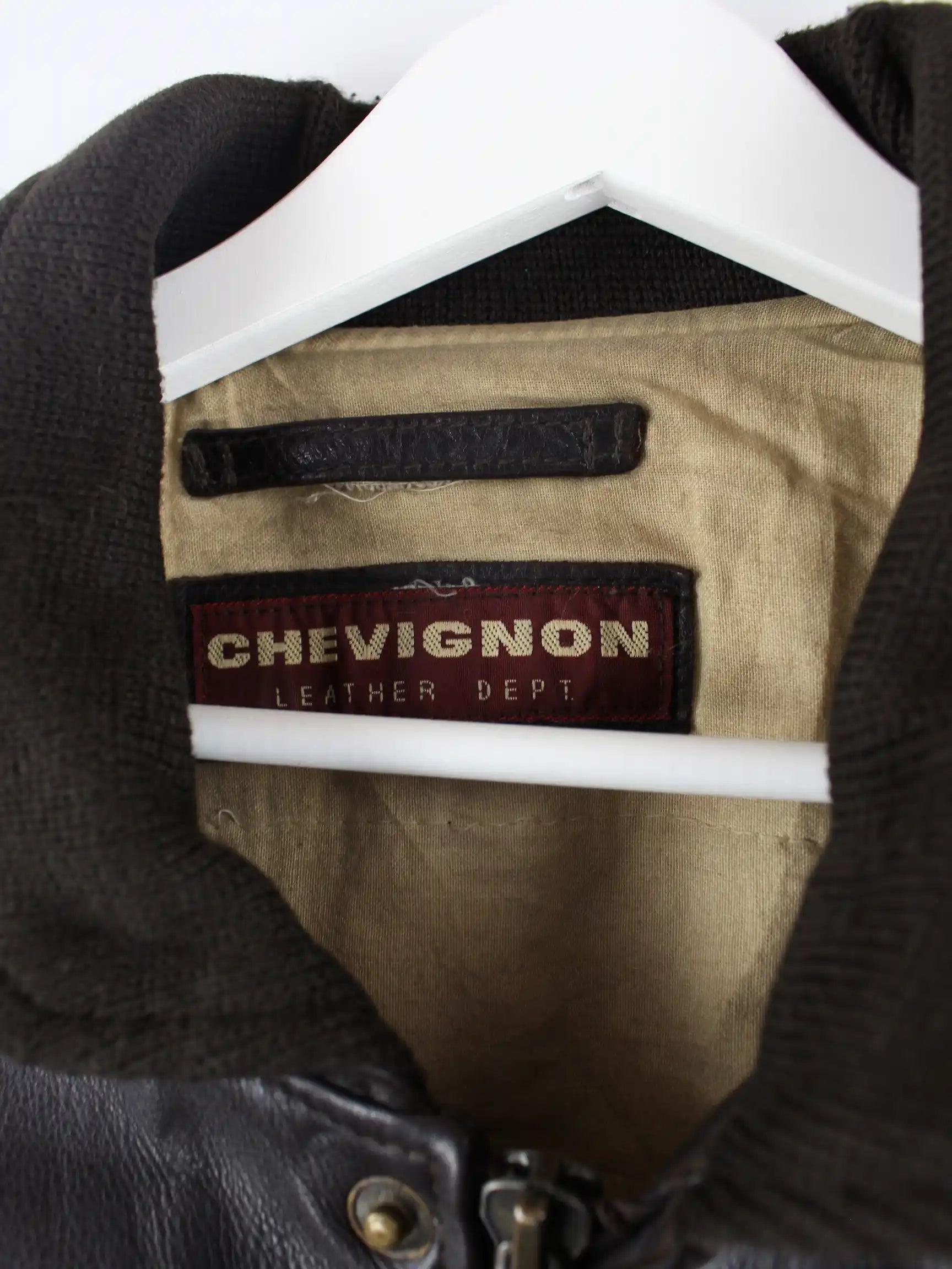 Jacke von Chevignon in Größe XXL aus den 90'ern. Sie ist aus Leder und in Schwarz zu haben.