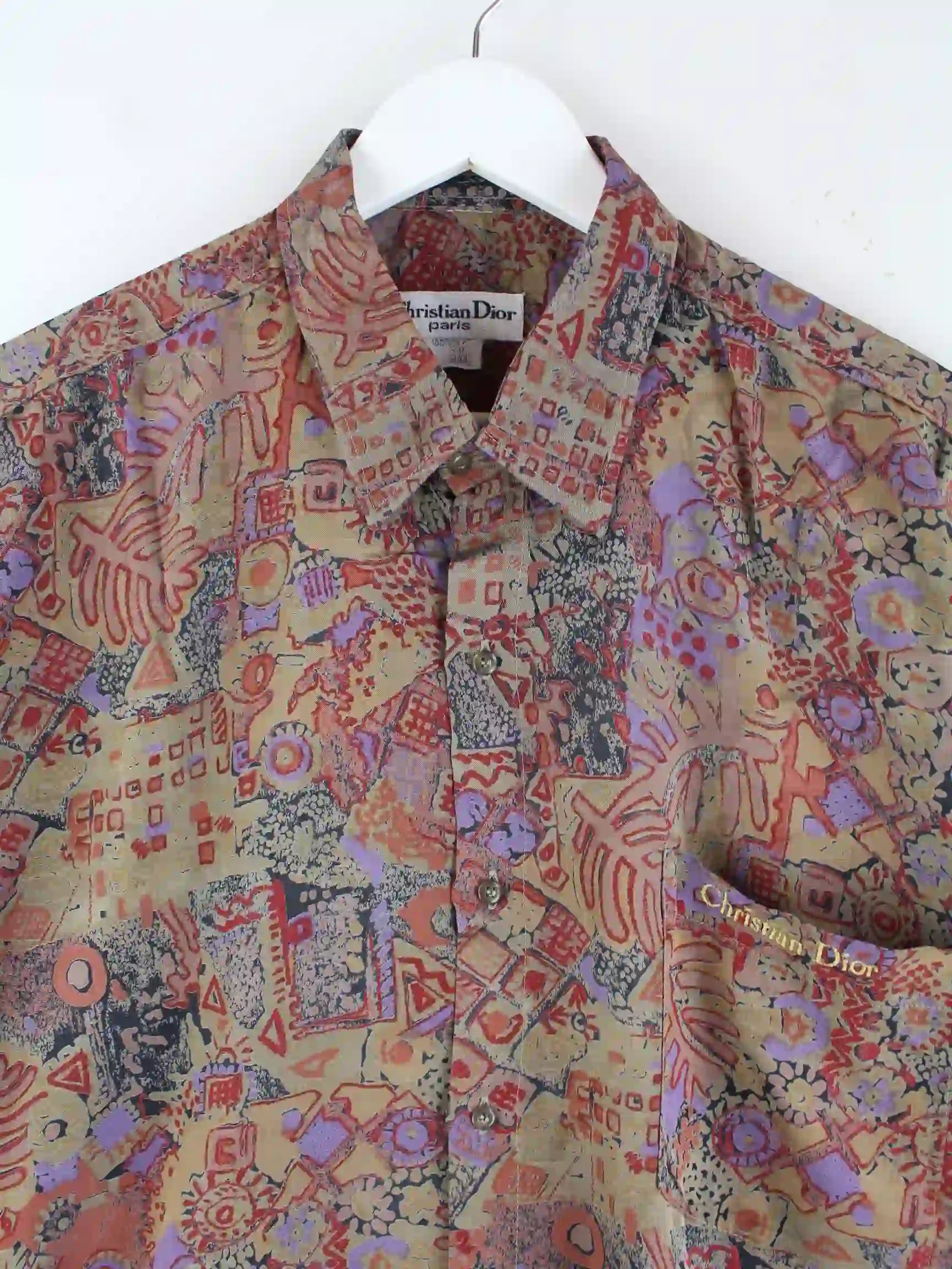 Freizeit Hemd von Christian Dior in Größe XL aus den 80'ern. Es ist aus Seide angefertigt und in bunten Farben auf Lager.