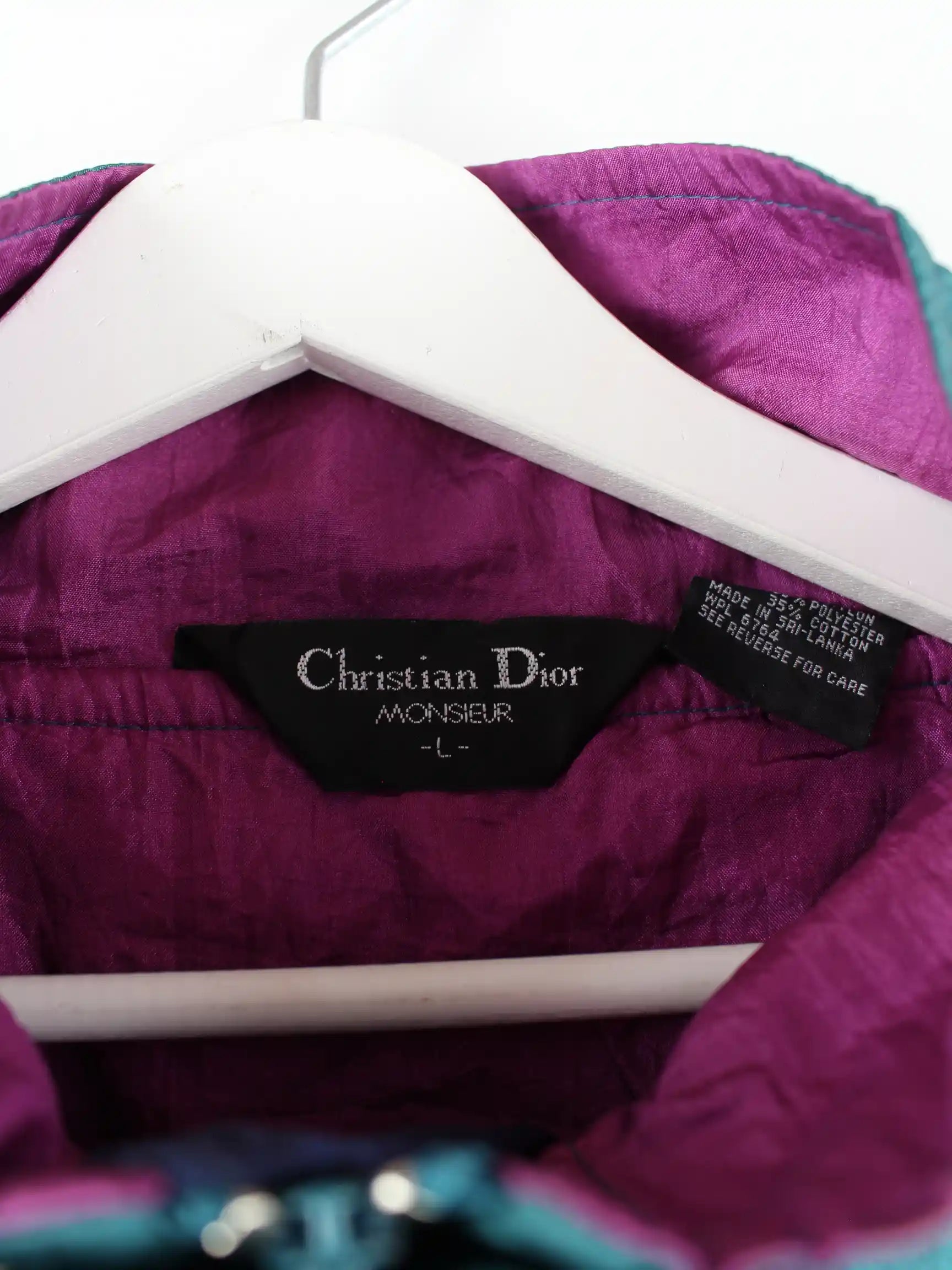 Leichte Jacke vom Label Christian Dior in Größe L aus den 80'ern. Sie ist aus Synthetik angefertigt und in Blau zu haben.