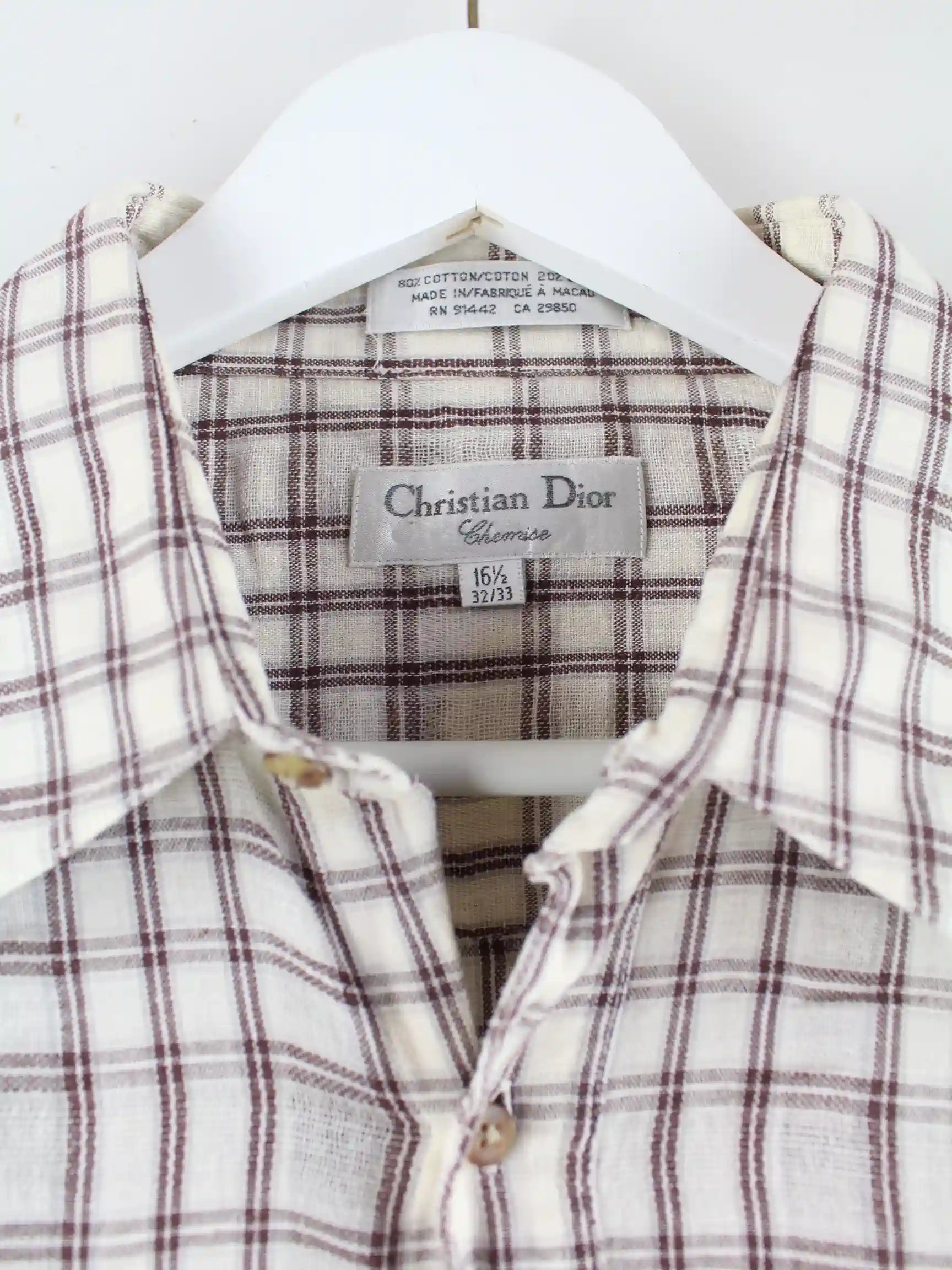 Freizeit Hemd von Christian Dior in Größe M aus den 90'ern. Es ist aus einer Baumwollmischung gefertigt und in Beige bei uns vorrätig.