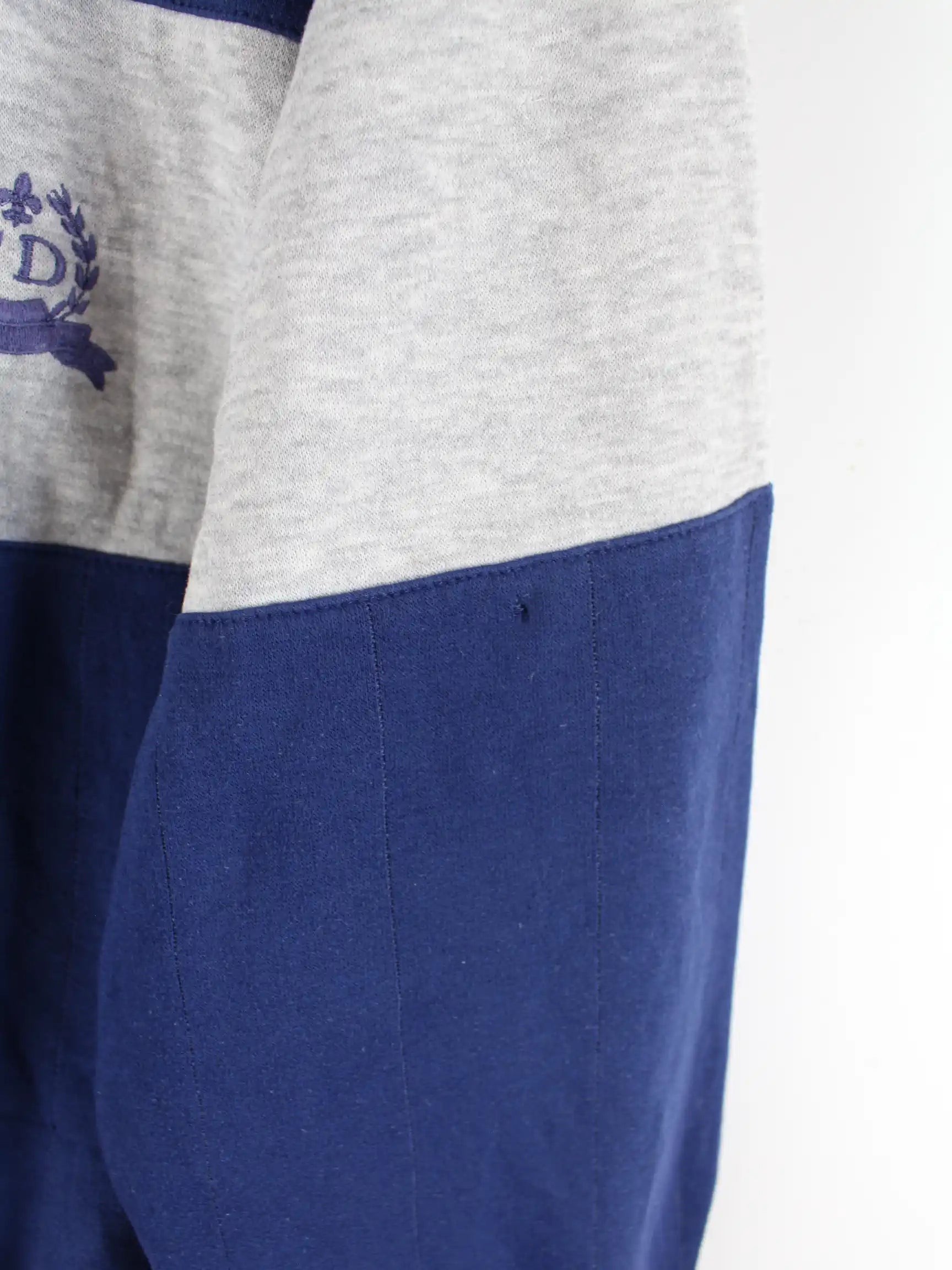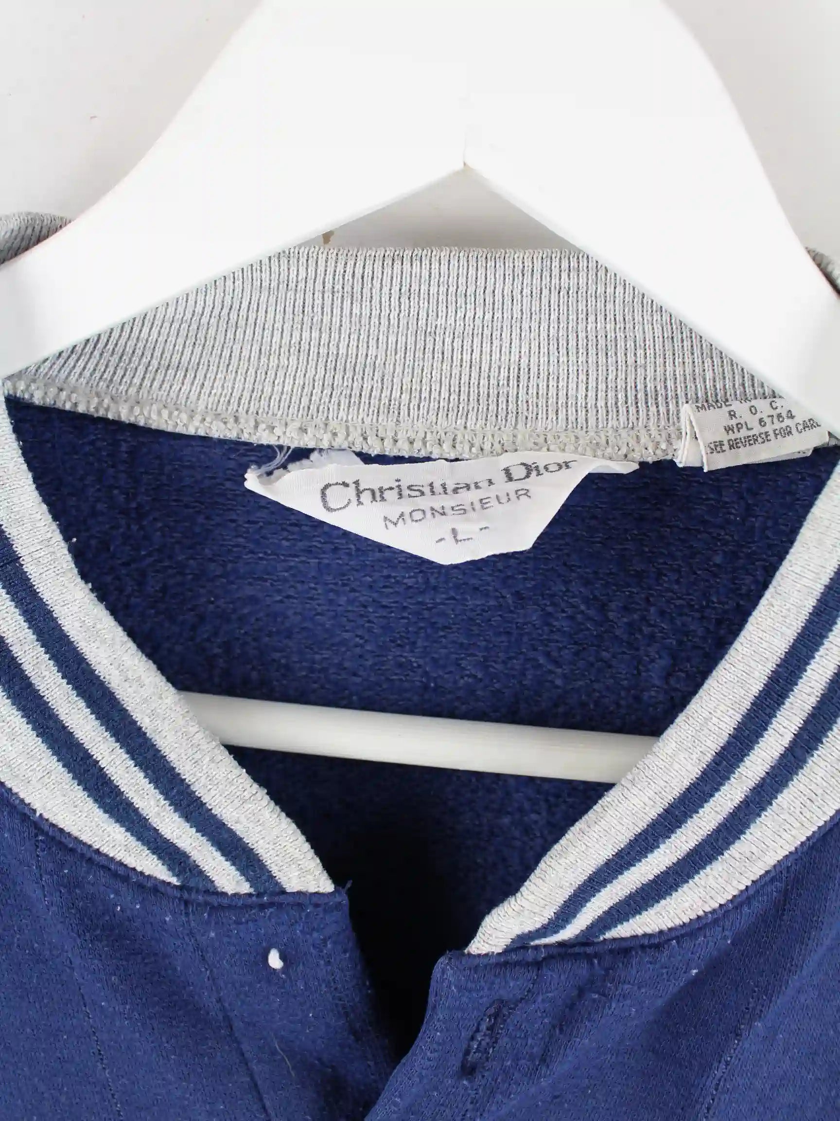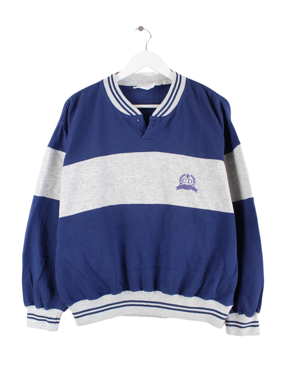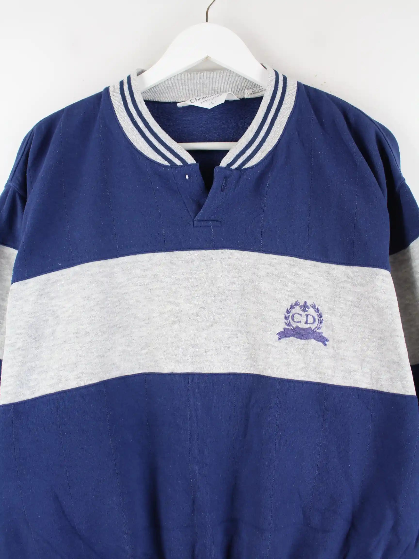 Blauer Sweater der Brand Christian Dior aus den 90'ern in Größe L. Er ist aus einer Baumwollmischung angefertigt und in gutem Zustand bei uns zu bekommen.