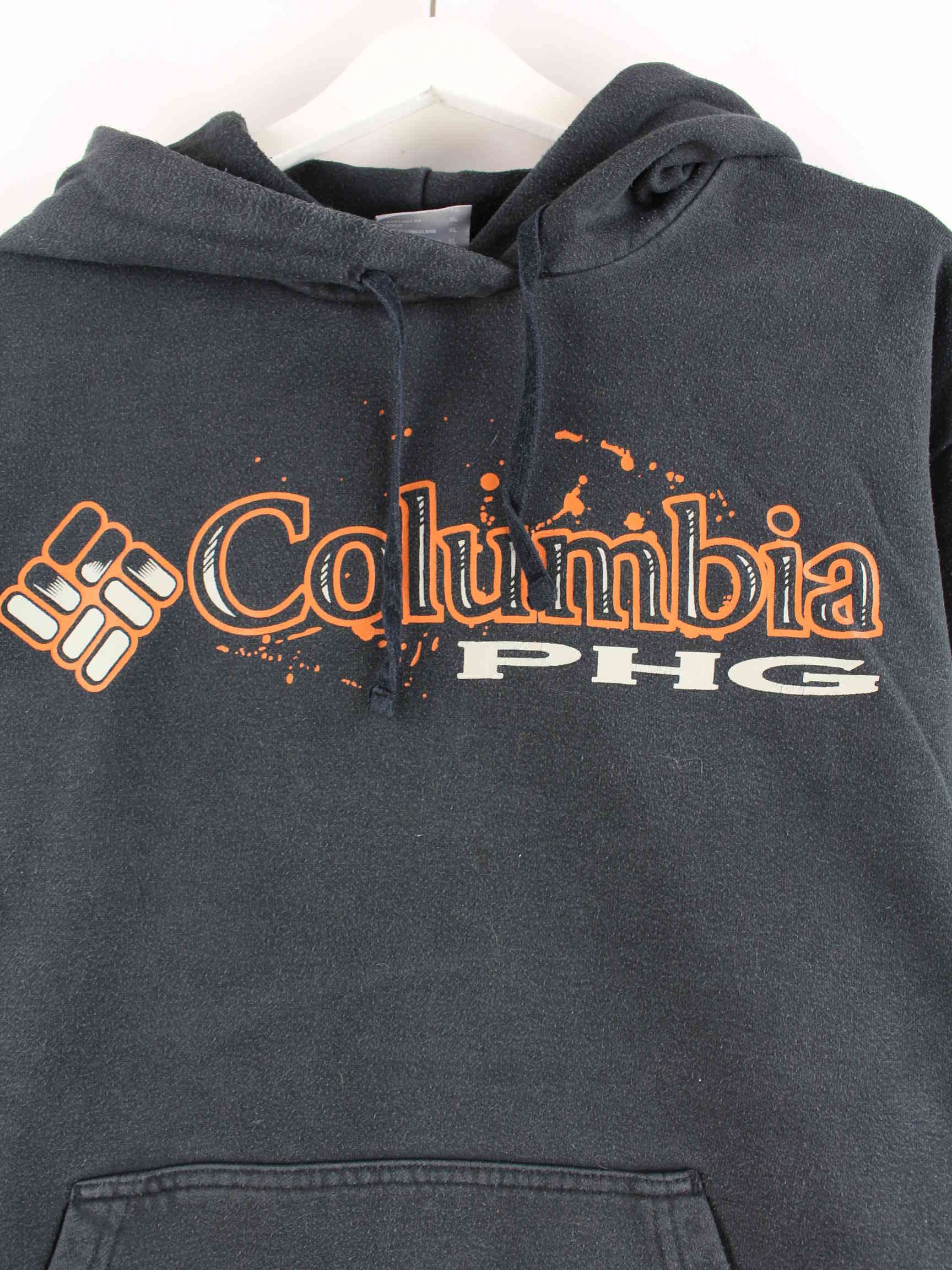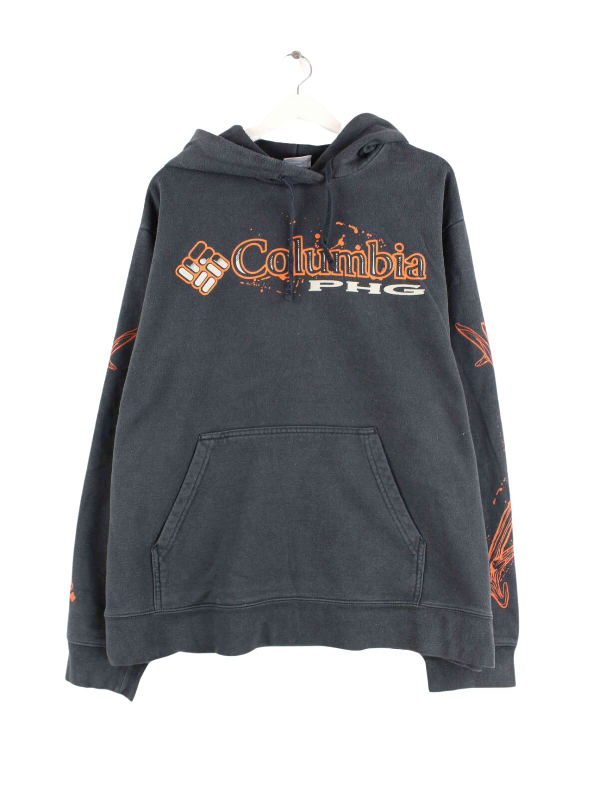 Hoodie from the Columbia brand in size XL from the early 2000s. It is made from a cotton blend and is available in gray. With a chic PHG print.