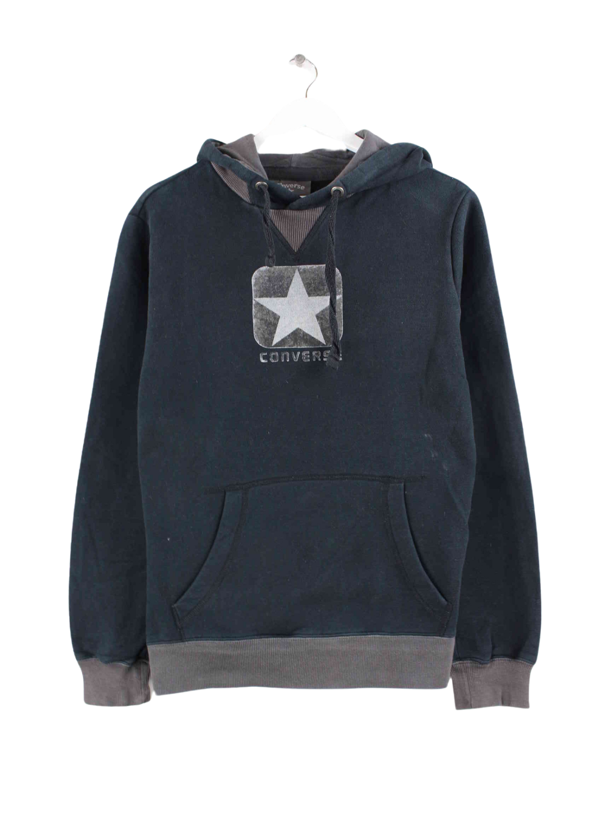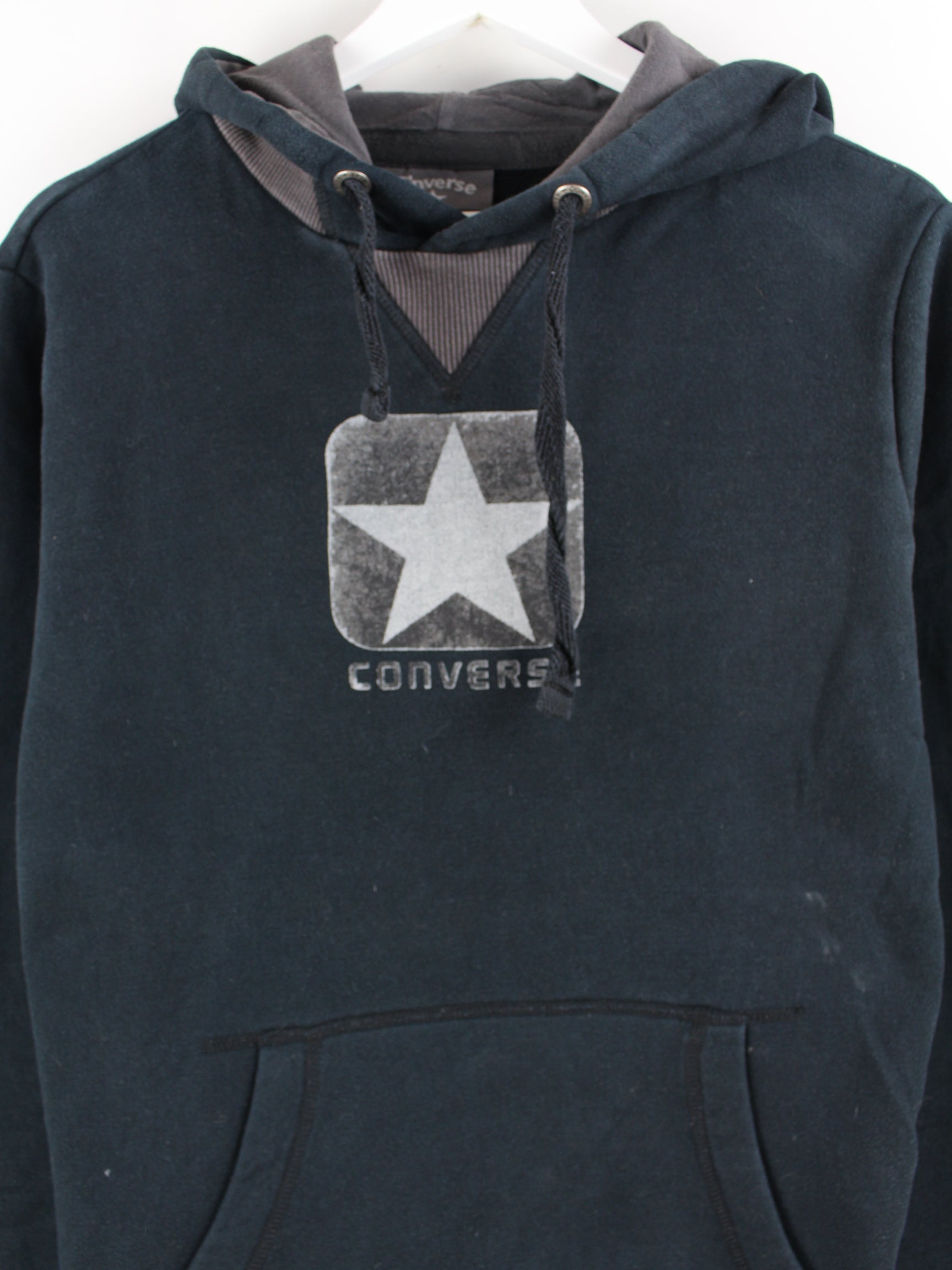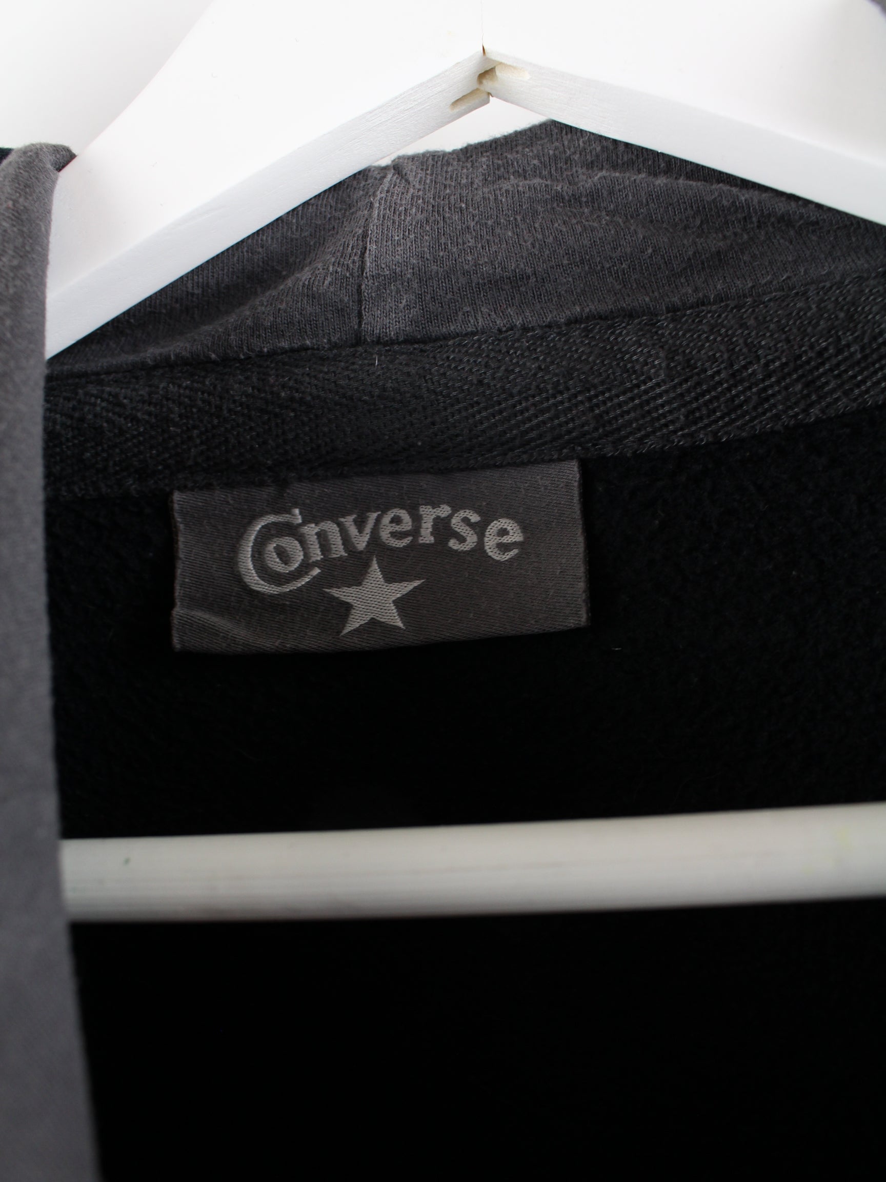 Black hoodie from the Converse label in size M. It is made from a cotton blend and is in stock in good condition. With great print.