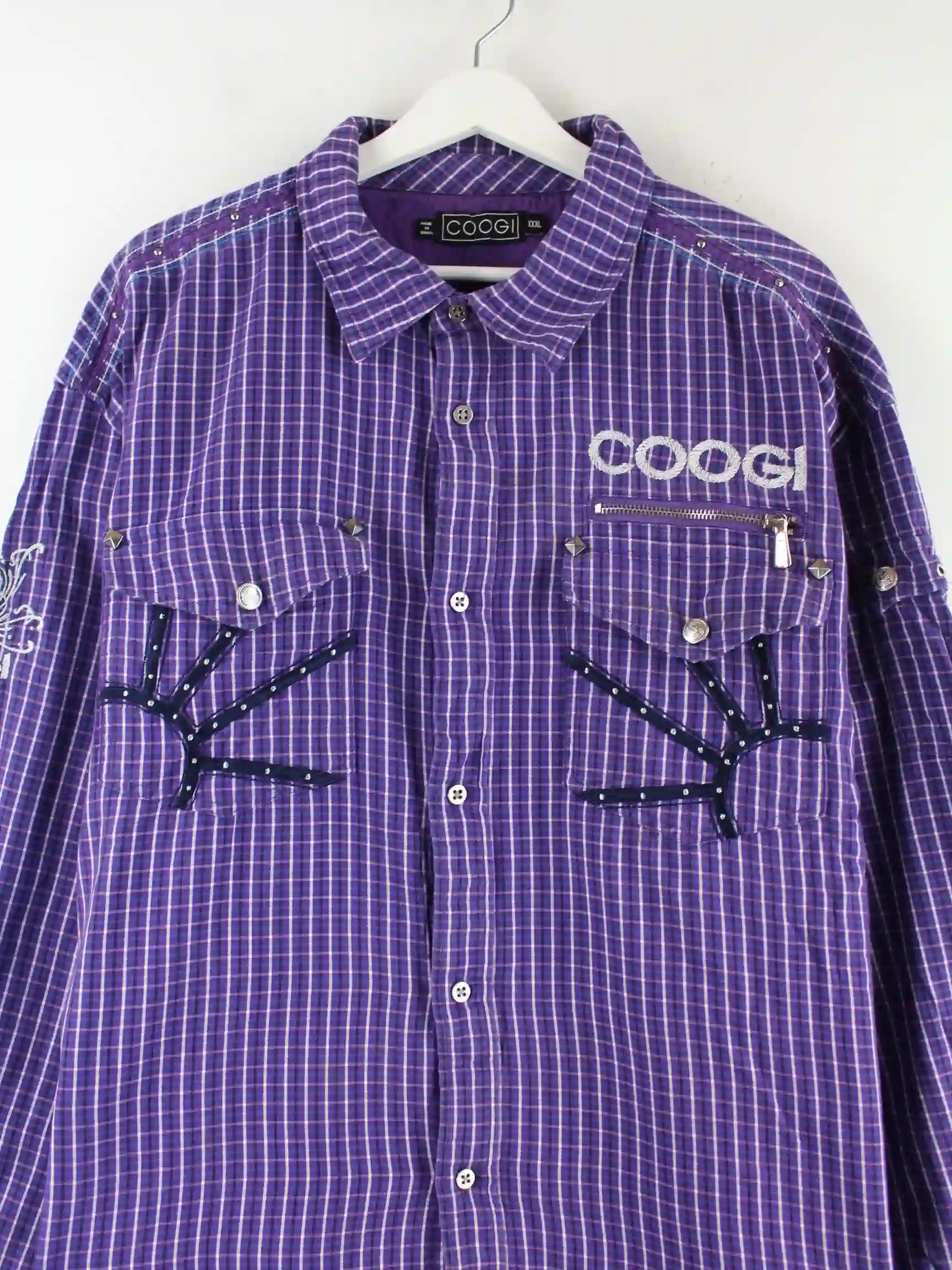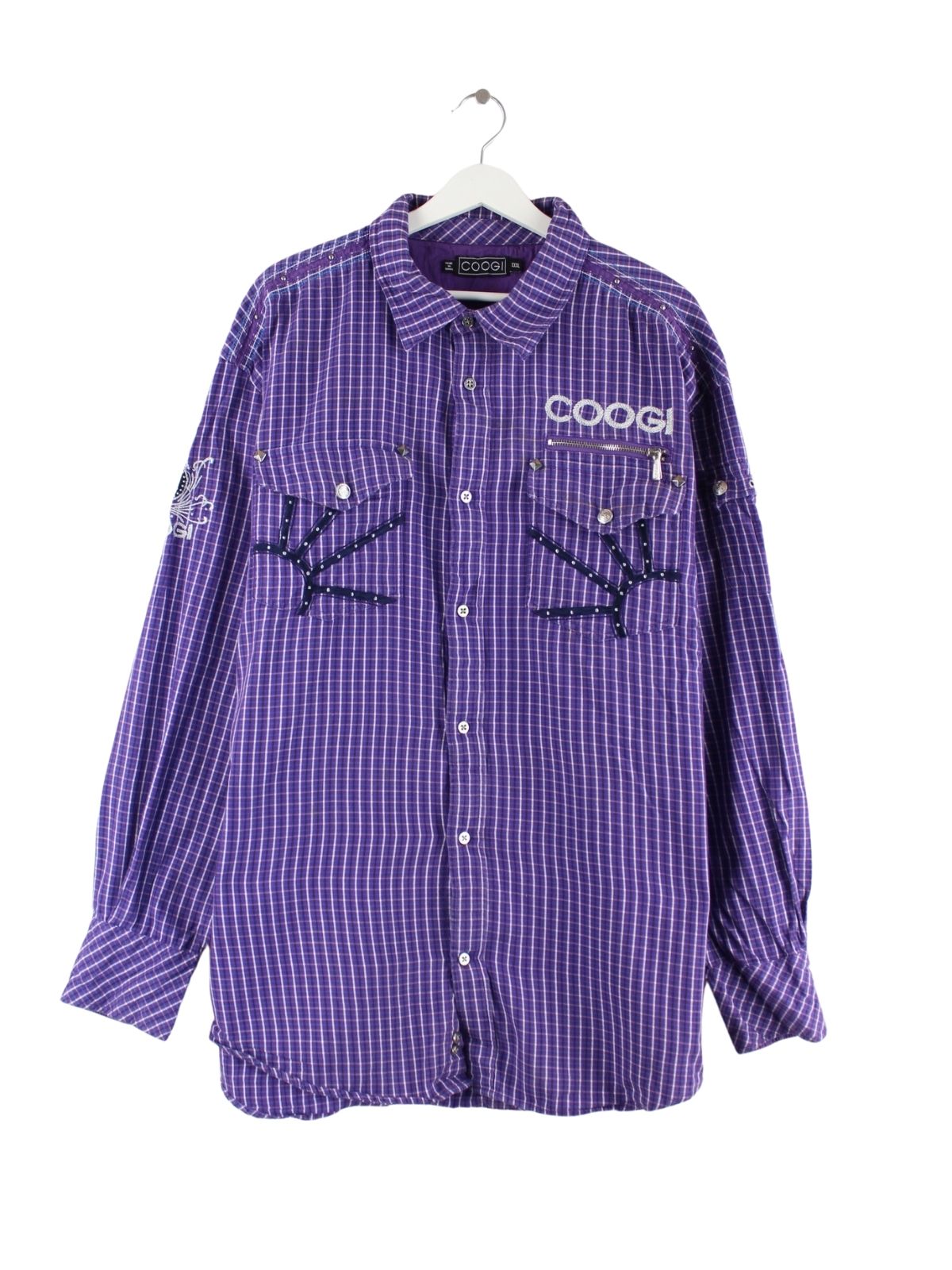 Freizeit Hemd vom Label Coogi mit Stickereien in Größe XXL. Es ist aus Baumwolle und in Lila bei uns zu bekommen.