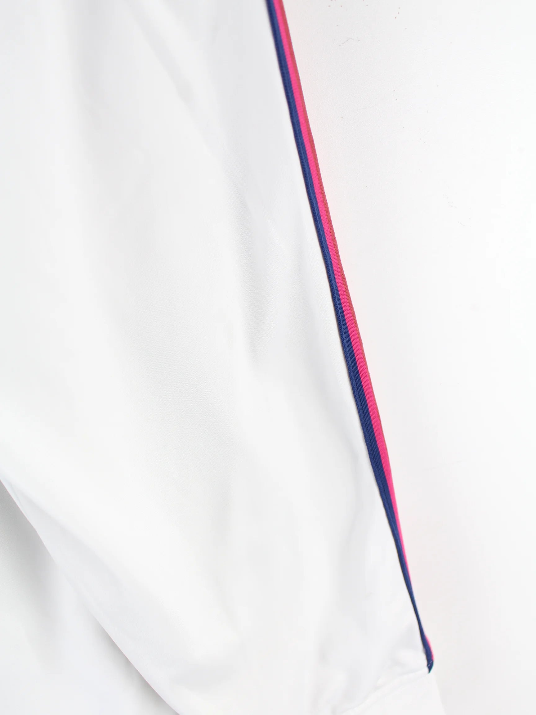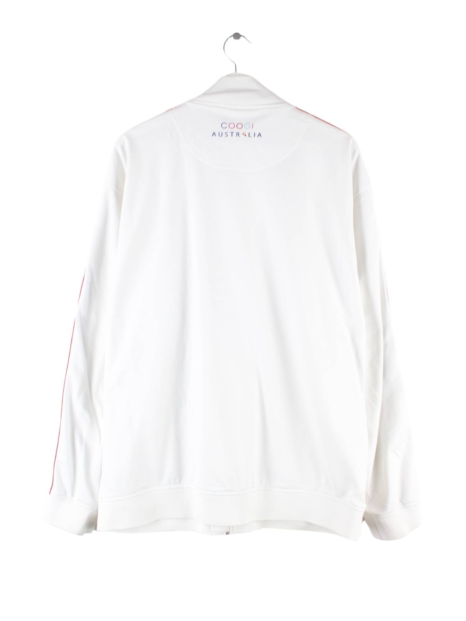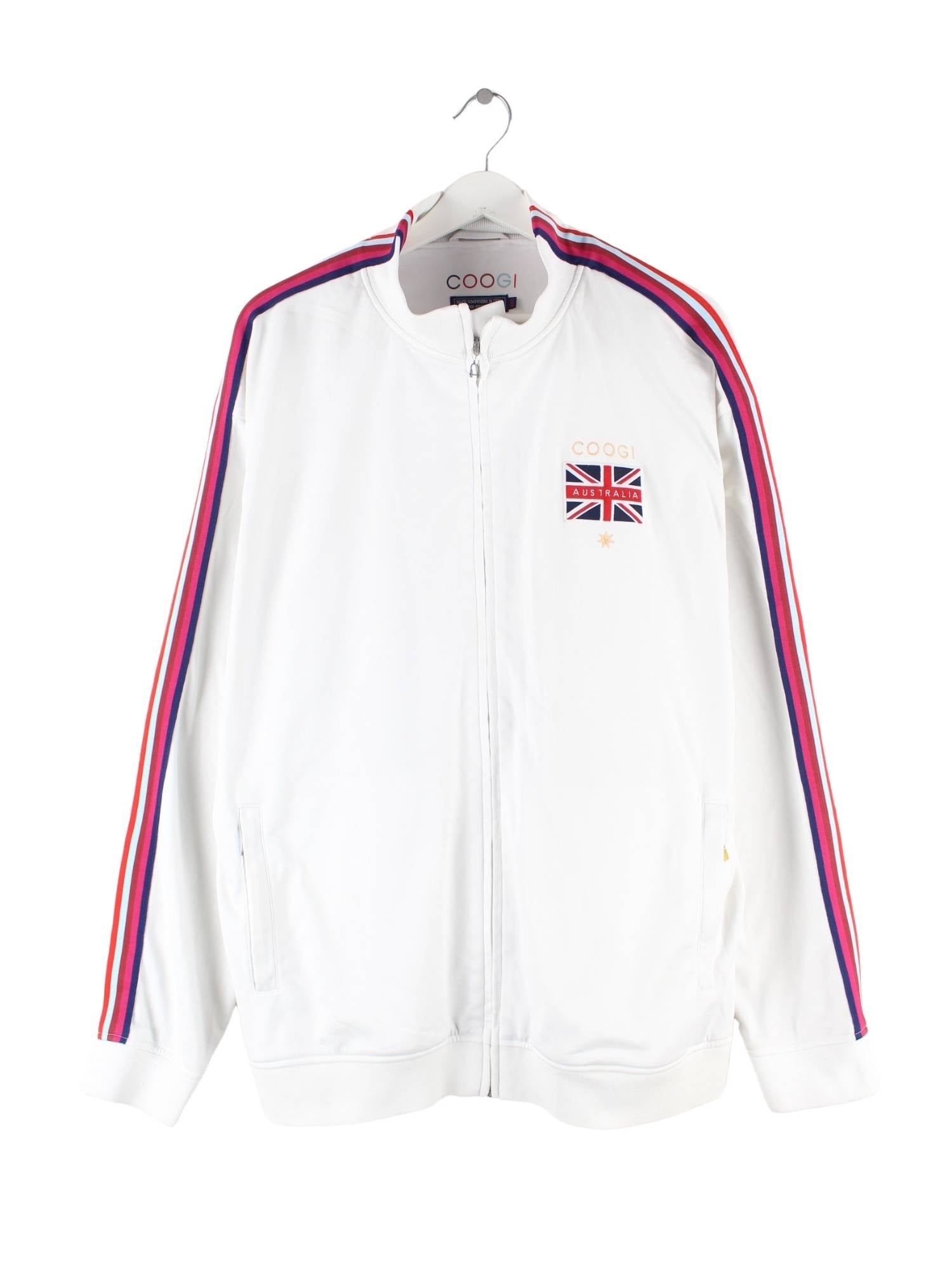 Weiße Trainingsjacke mit Stickereien vom Label Coogi in Größe XXL. Sie ist aus Synthetik gemacht und in gutem Zustand bei uns zu bekommen.