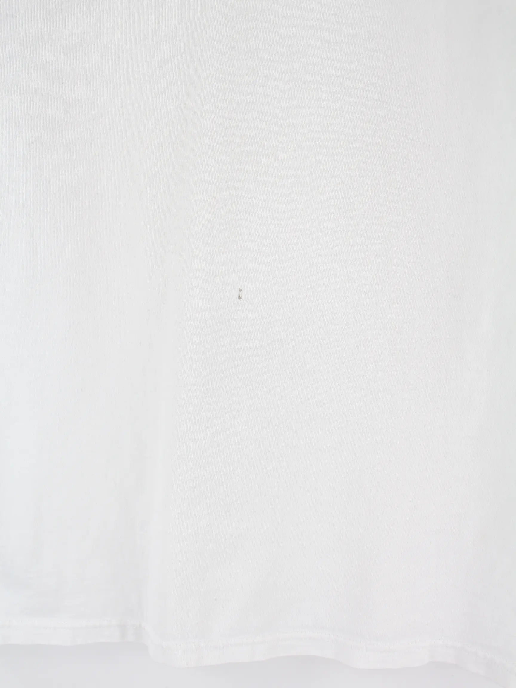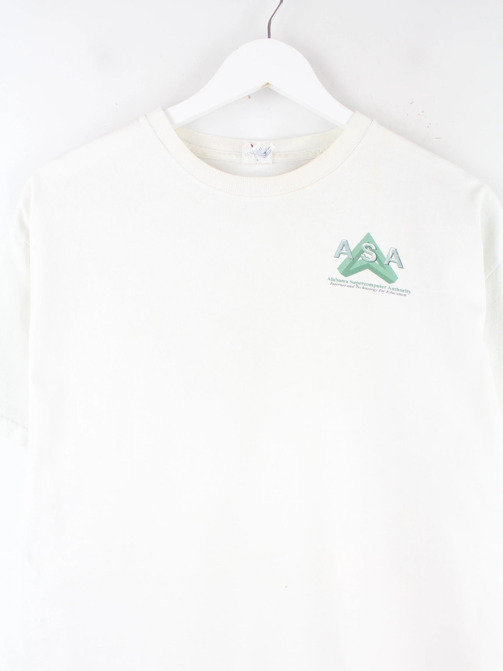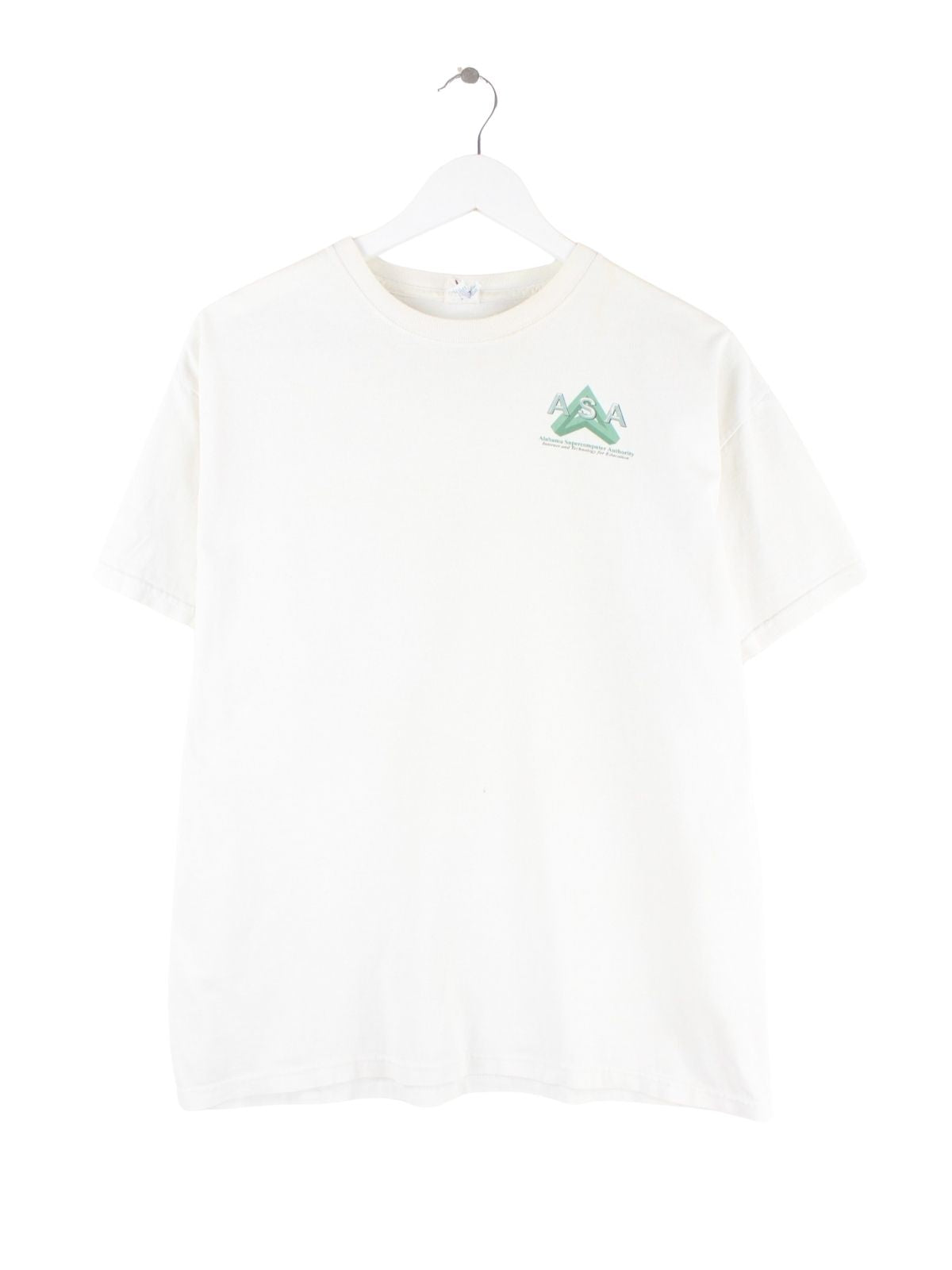 T-Shirt vom Label Delta in Größe L aus den 90'ern. Es ist aus Baumwolle gemacht und in Weiß zu haben. Mit chiquem Vintage Print.