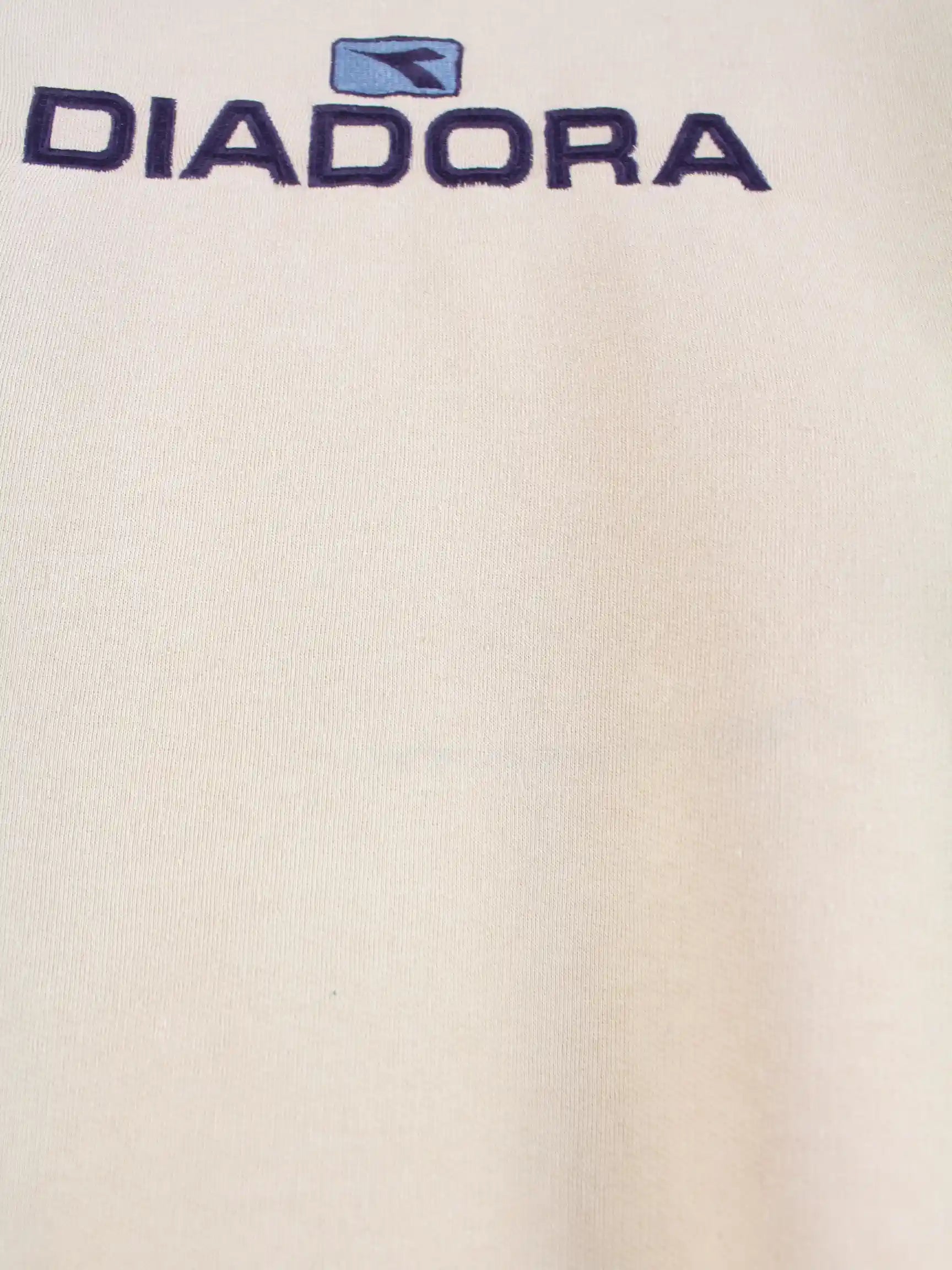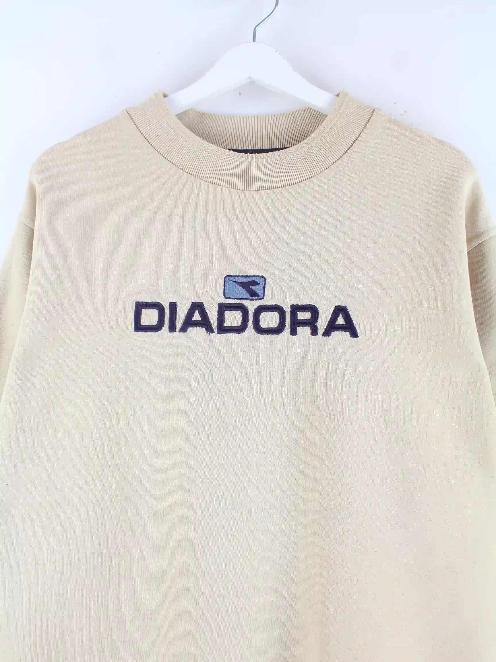 Sweater der Brand Diadora mit Stickereien in Größe M. Er ist aus einer Baumwollmischung gefertigt und in Braun lieferbar.