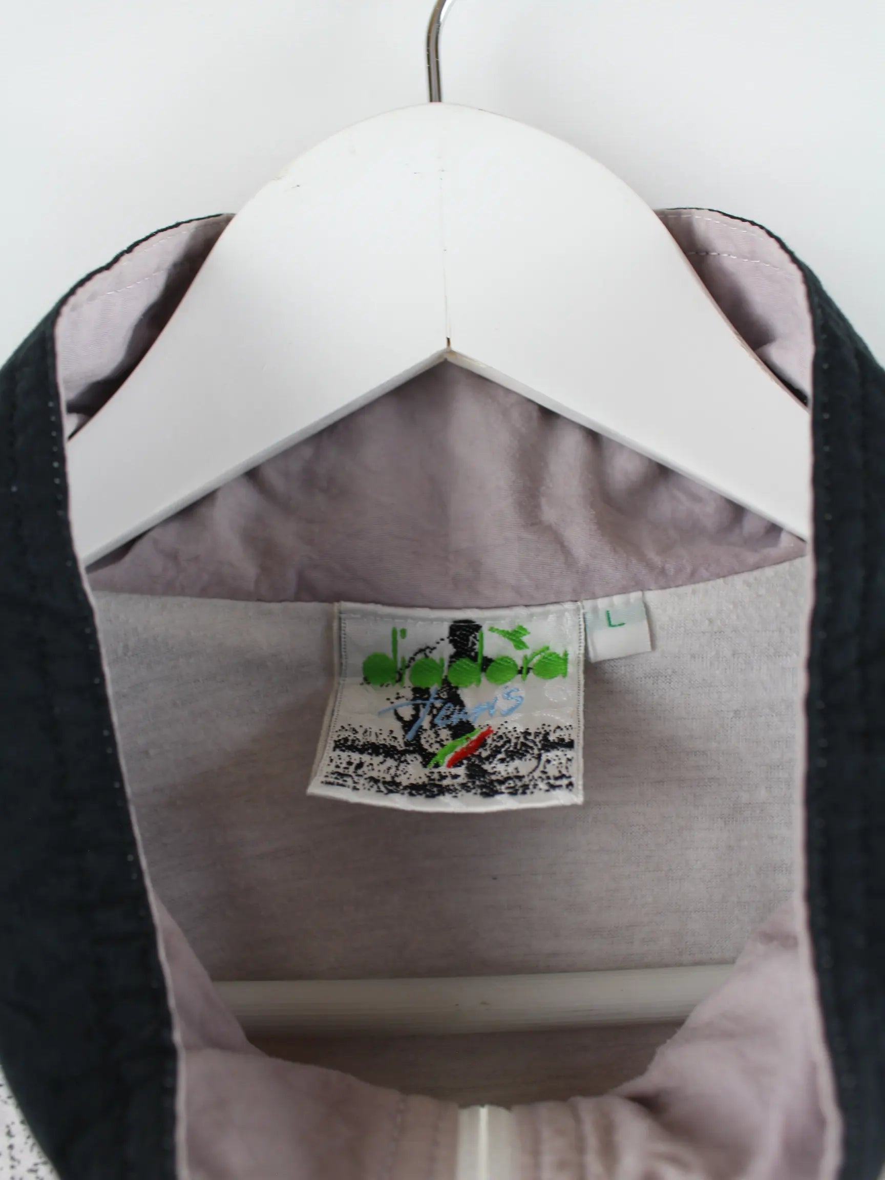 Graue Trainingsjacke aus dem Hause Diadora aus den 90'ern in Größe L. Sie ist aus Synthetik hergestellt. Den Zustand würden wir als 'In Ordnung' bezeichnen (vergl. Bilder).