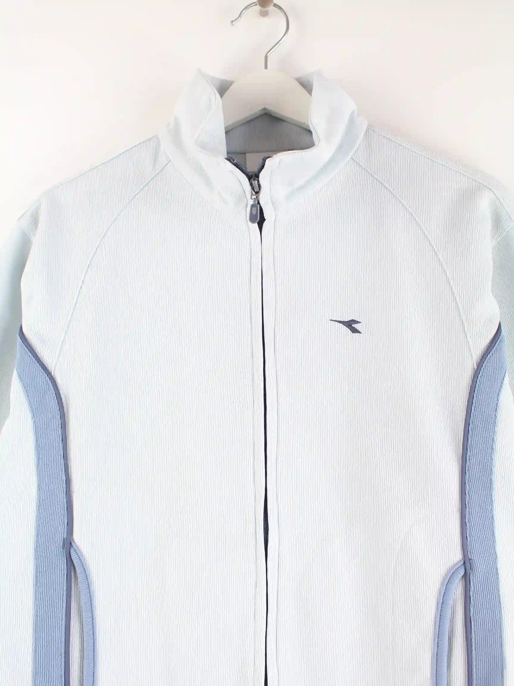 Trainingsjacke vom Brand Diadora in Größe L. Sie ist aus Synthetik hergestellt und in Blau lieferbar.