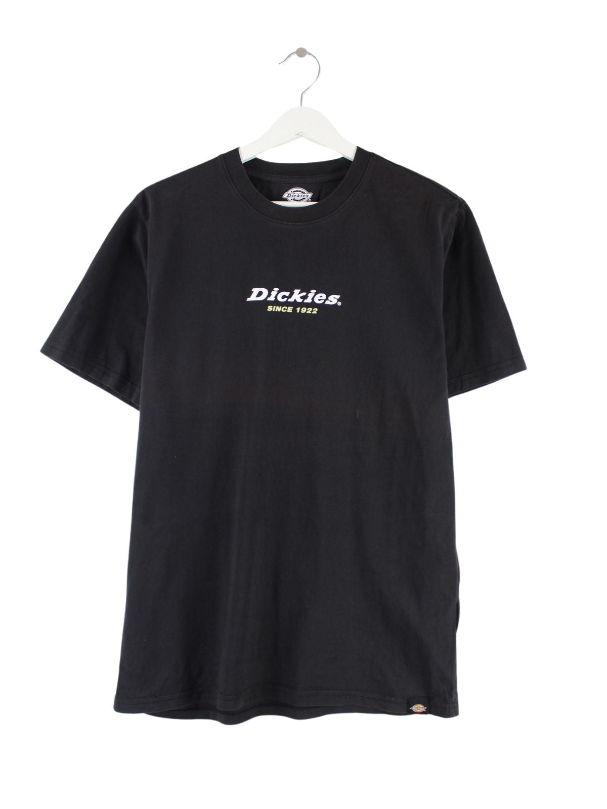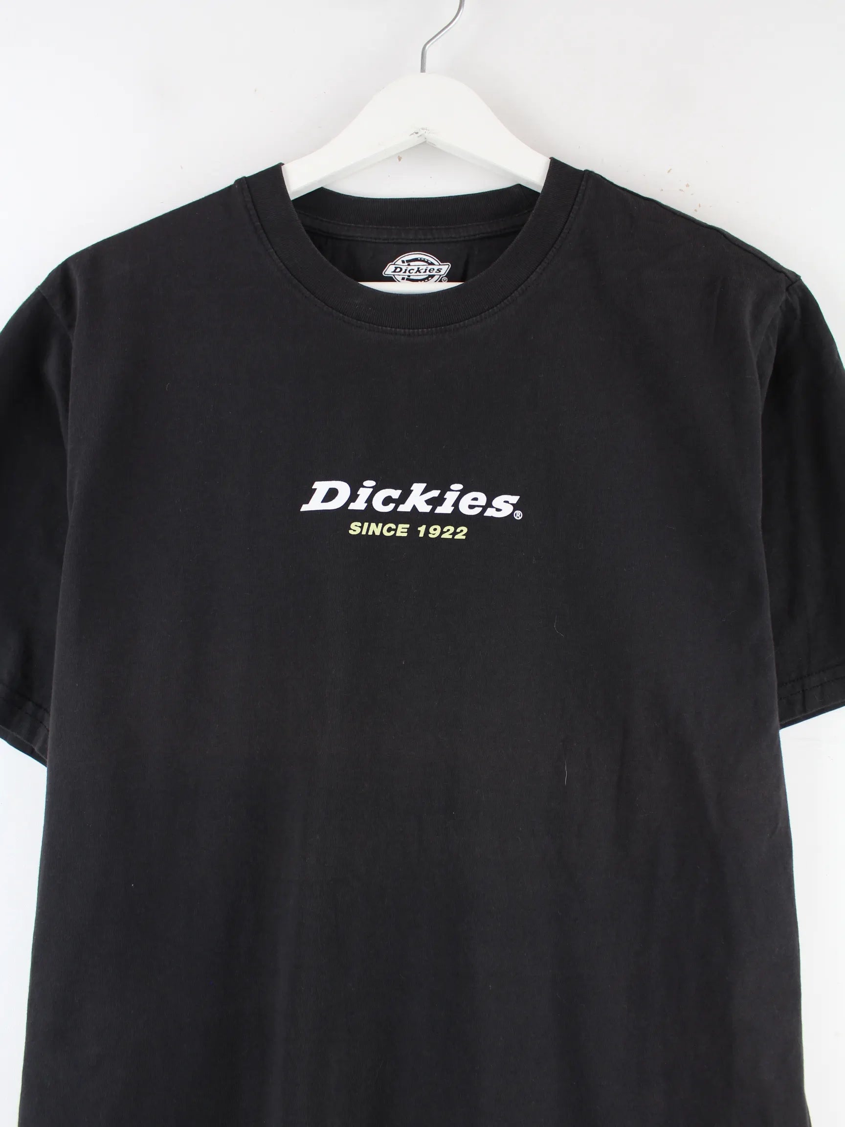 Schwarzes T-Shirt aus dem Hause Dickies in Größe M. Es ist aus Baumwolle produziert und in sehr gutem Zustand im Bestand. Mit tollem Print.