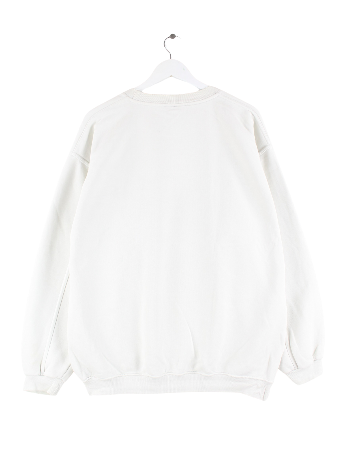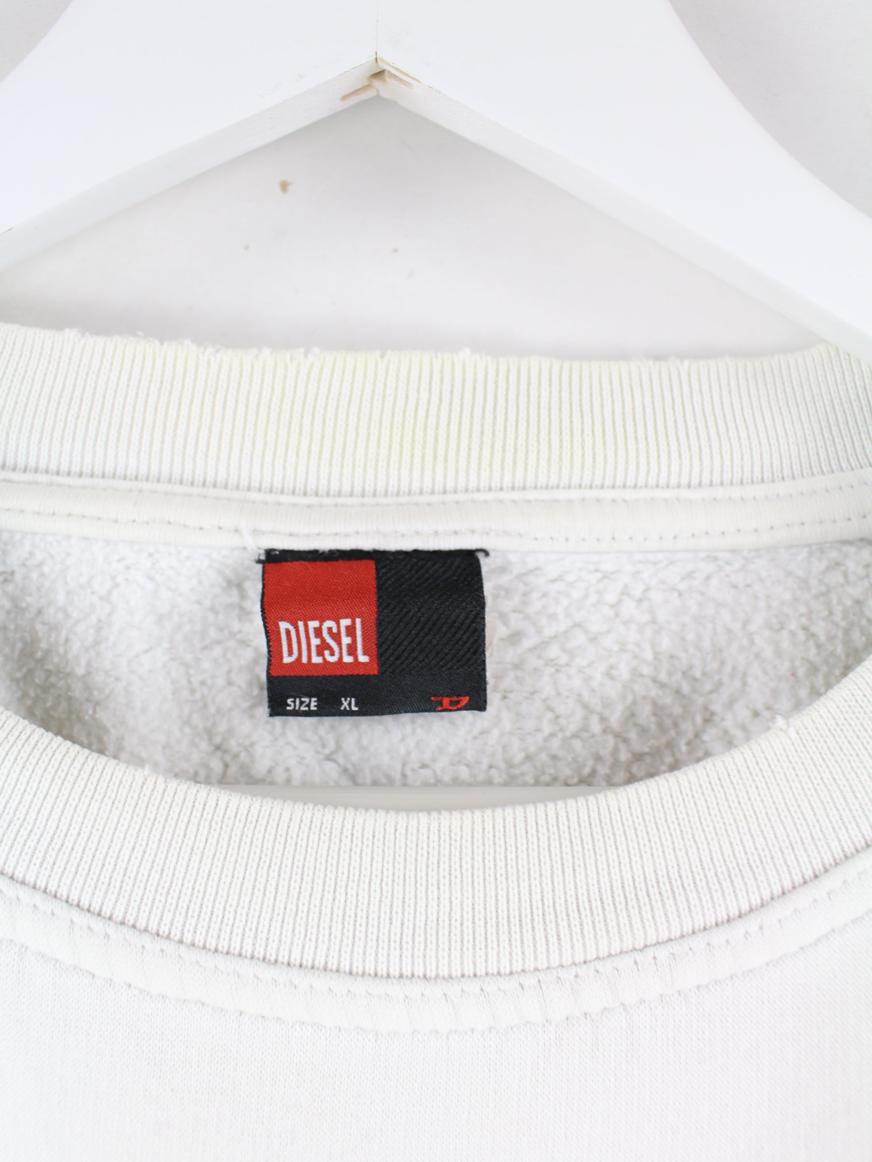 Weißer Sweater mit gestickten Motiven von Diesel aus den 90'ern in Größe XL. Er ist aus einer Baumwollmischung gemacht. Den Zustand würden wir als 'In Ordnung' bezeichnen (vergl. Bilder).