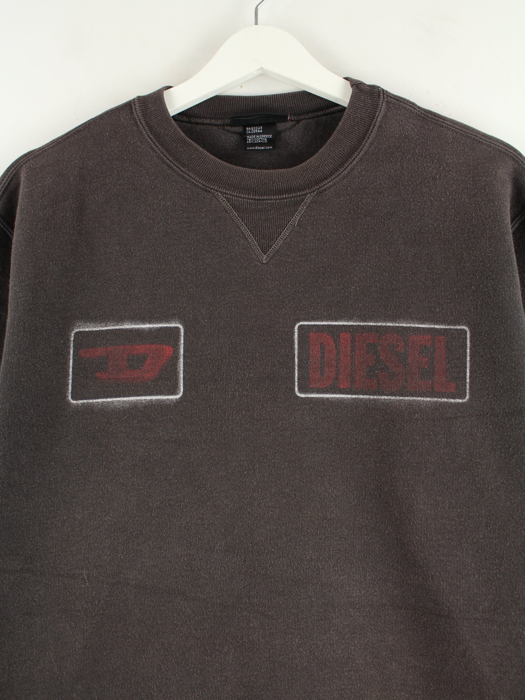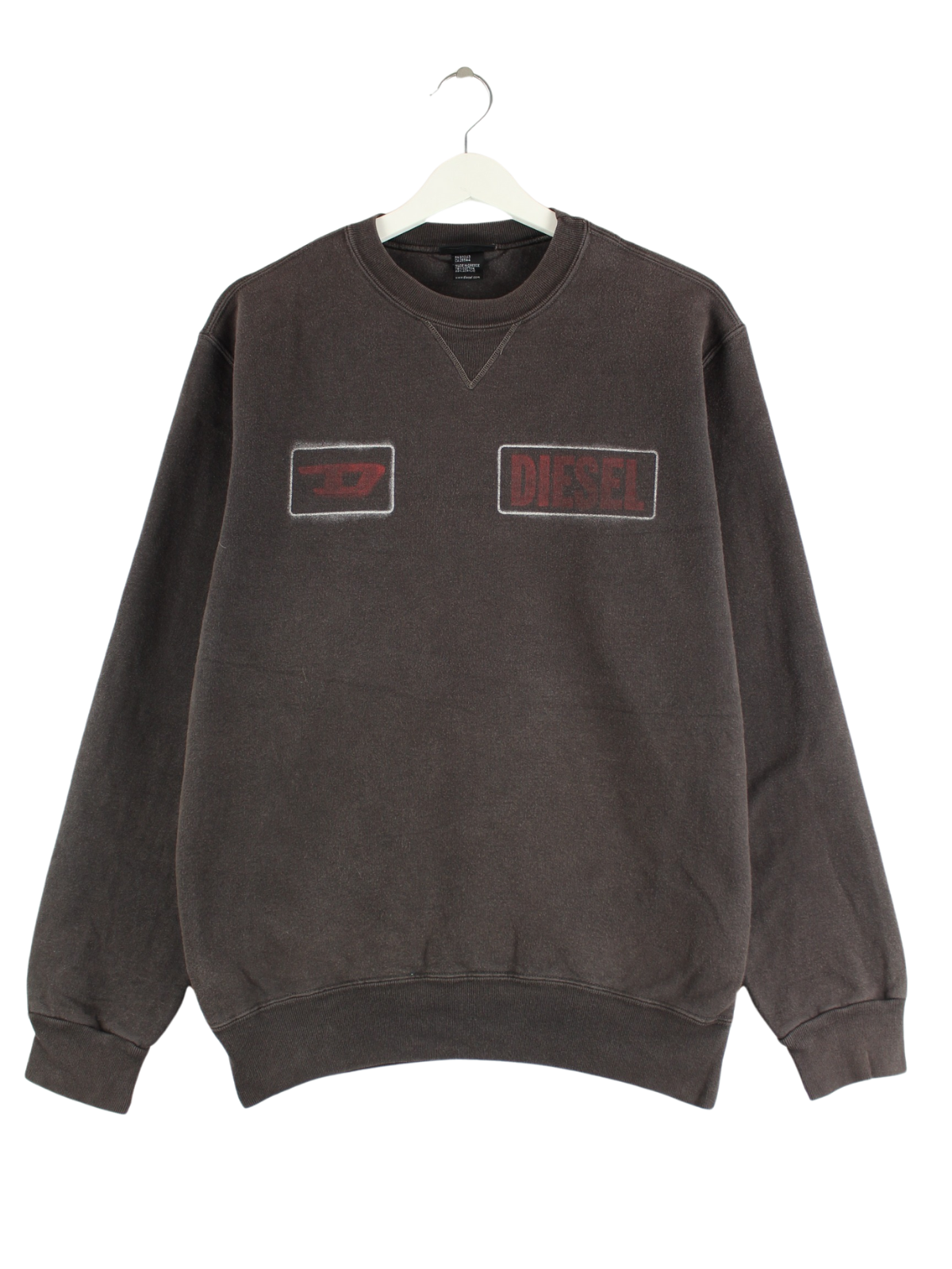 Sweater from the brand Diesel in size M. It is made from a cotton blend and is in stock in grey. With a chic undefined print.