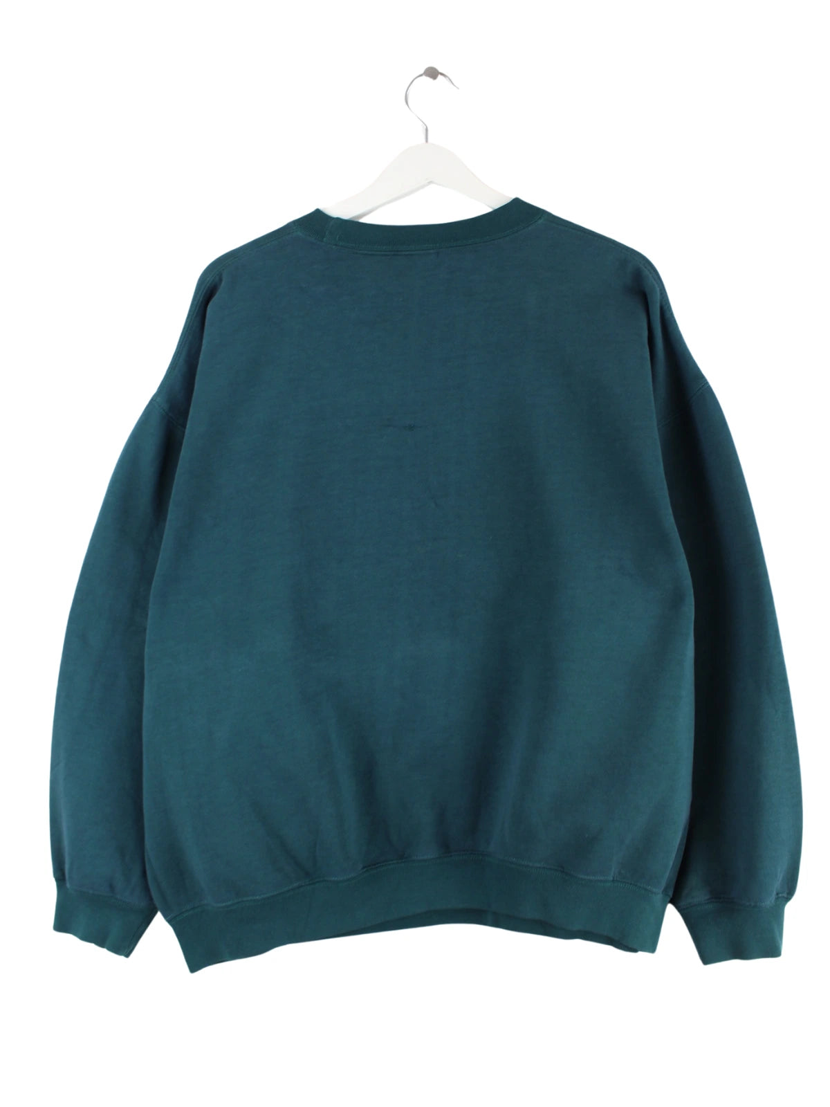 Grüner Sweater mit gesticktem Logo der Brand Disney aus den 90'ern in Größe L. Er ist aus einer Baumwollmischung. Den Zustand würden wir als 'In Ordnung' bezeichnen (vergl. Bilder).