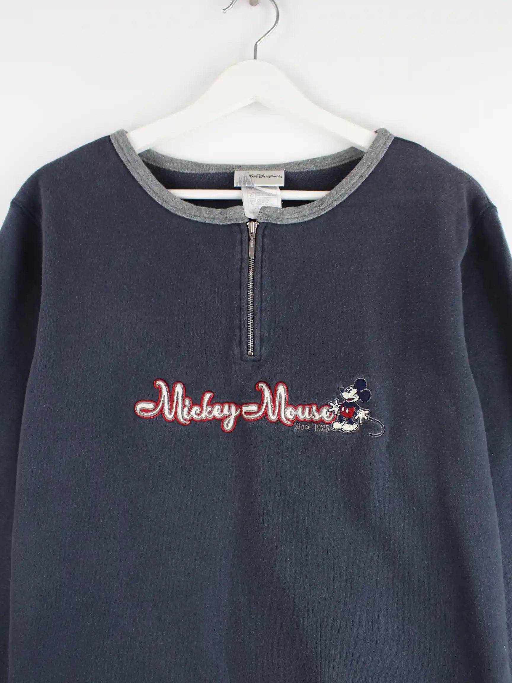 Disney Damen 00s Mickey Mouse Half Zip Sweater Grau L