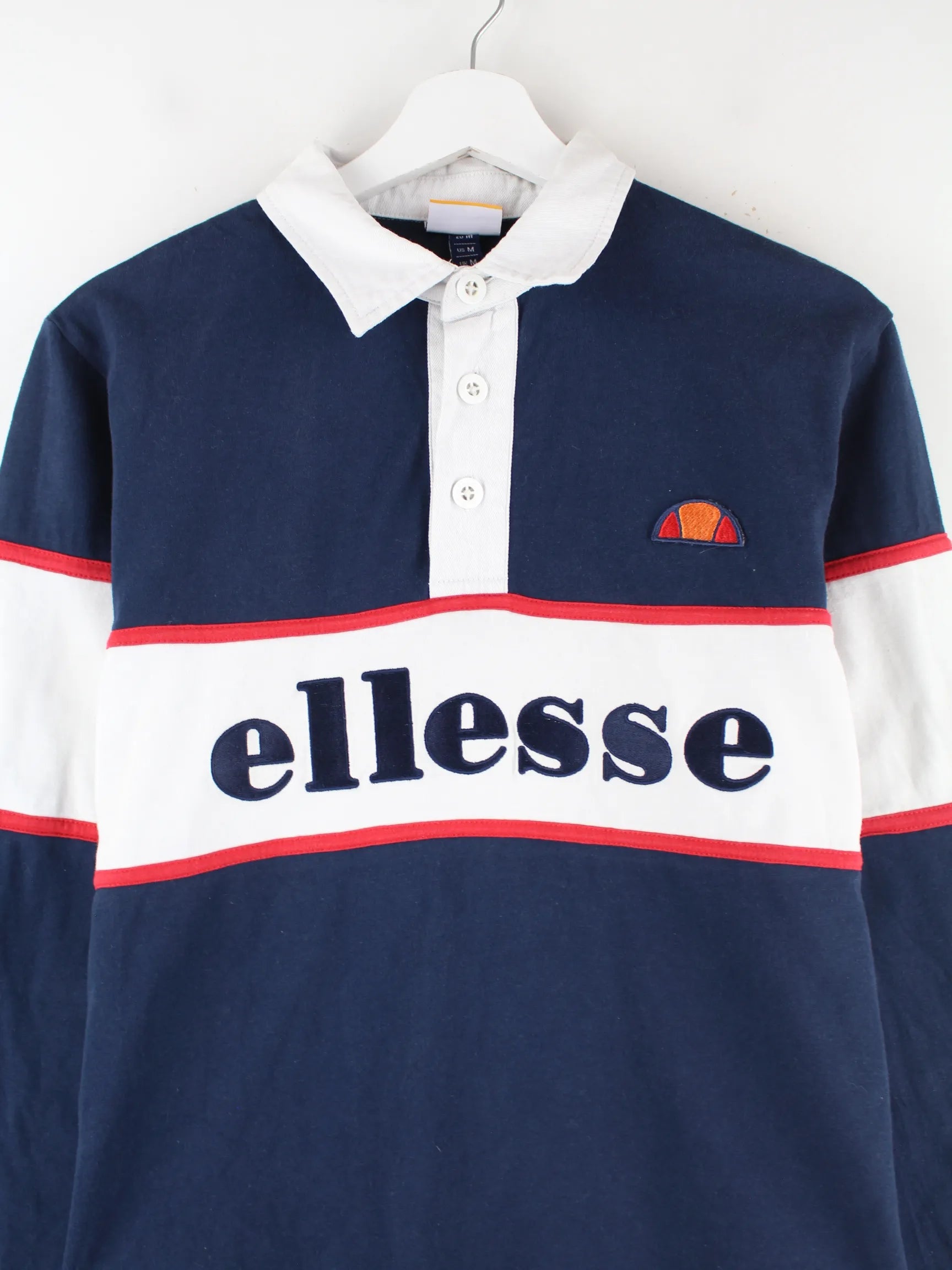 Poloshirt der Marke Ellesse mit Stick in Größe M. Es ist aus Baumwolle angefertigt und in Blau bei uns vorrätig.
