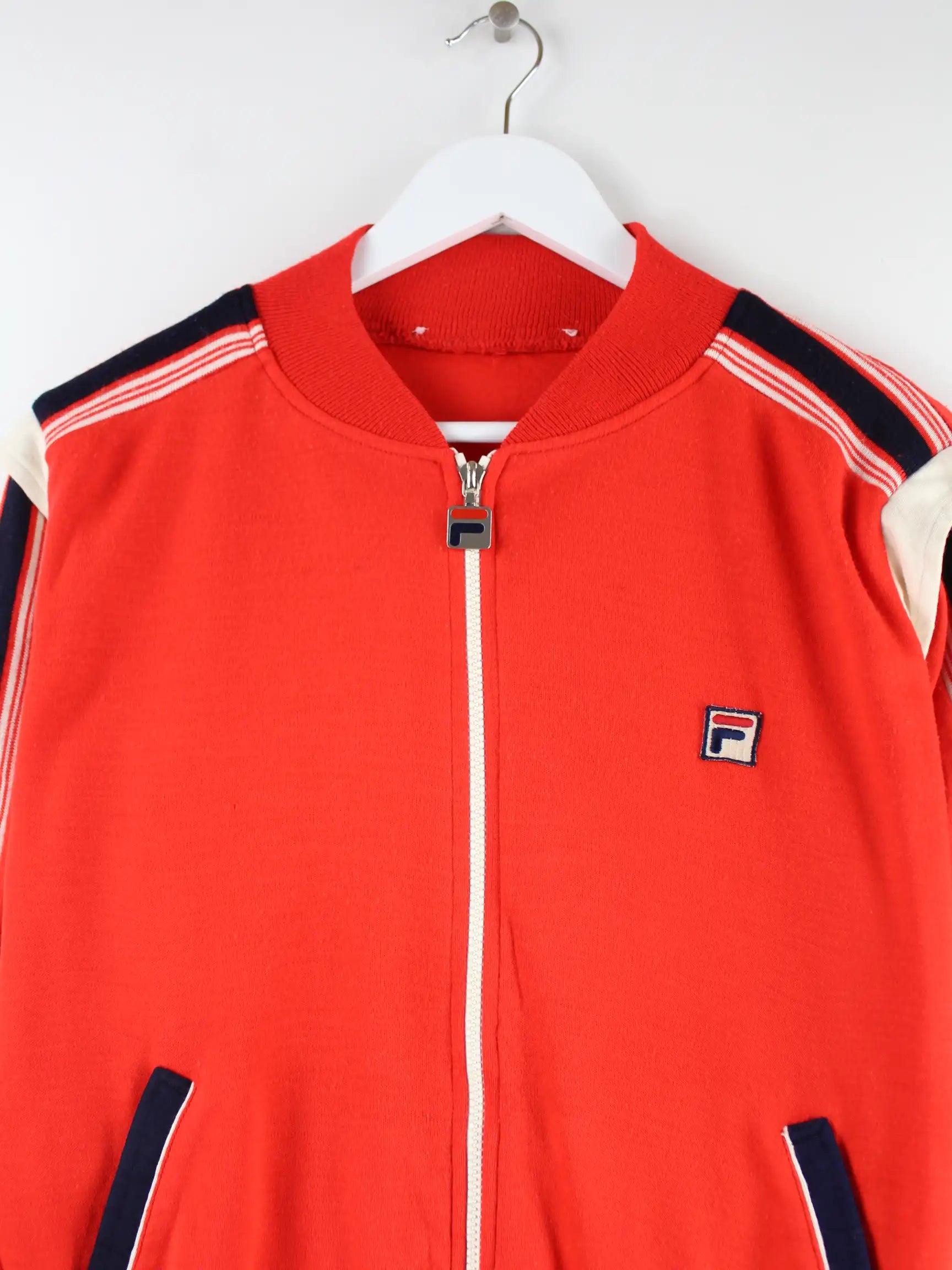 Rote Sweatjacke von Fila in Größe S. Sie ist aus einer Baumwollmischung angefertigt und in gutem Zustand lieferbar.
