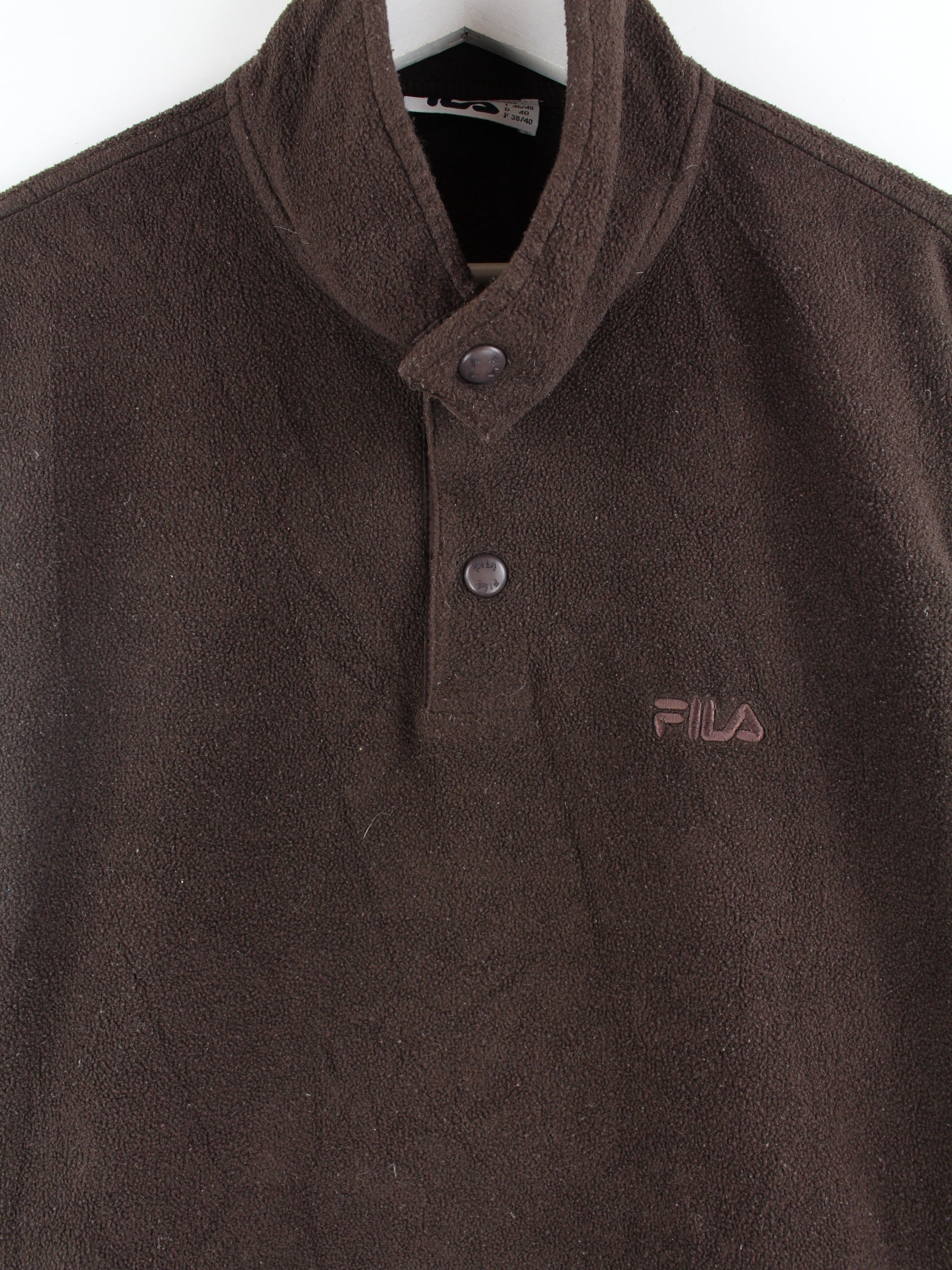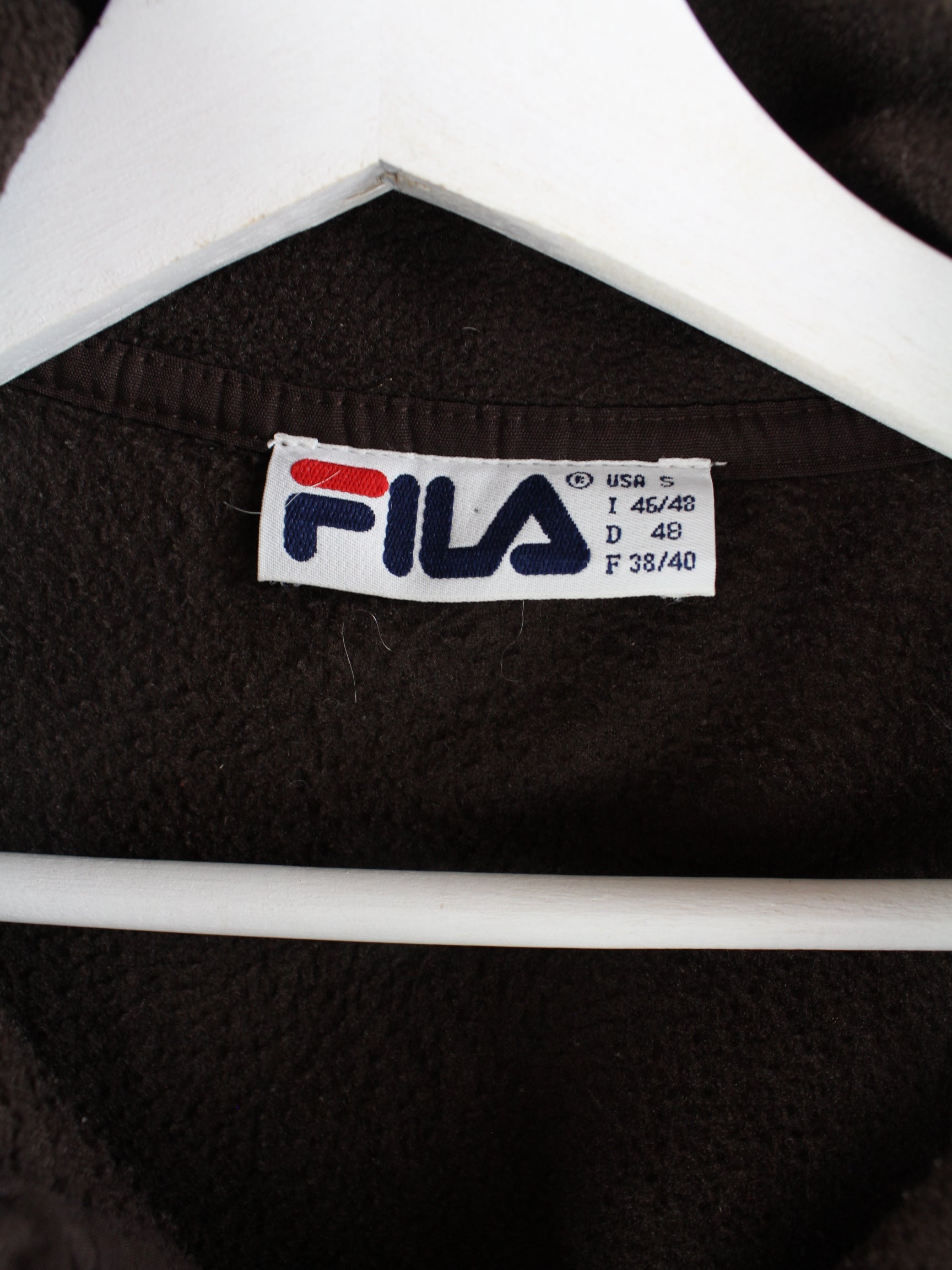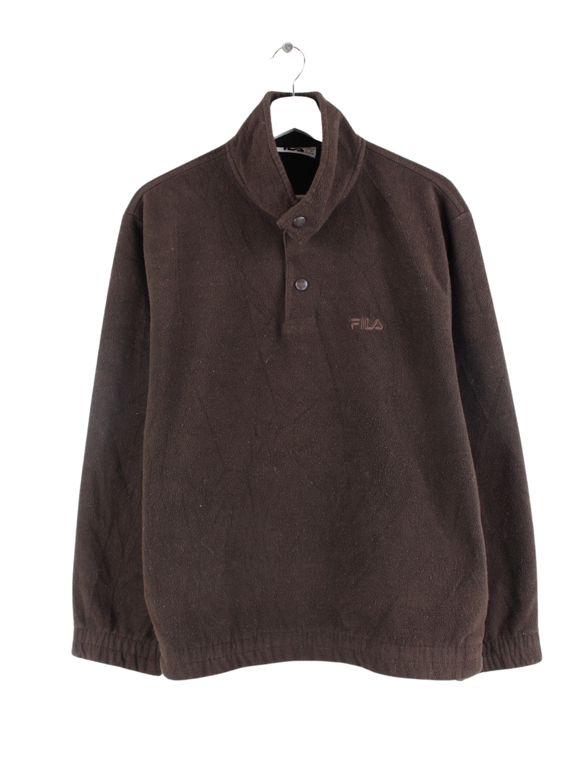Sweater from the brand Fila with an embroidered logo in size S from the 90s. It is made of cozy fleece and is available in brown.