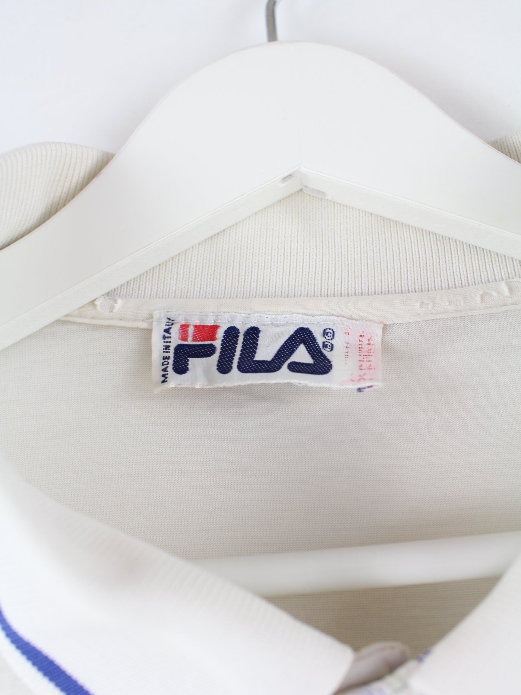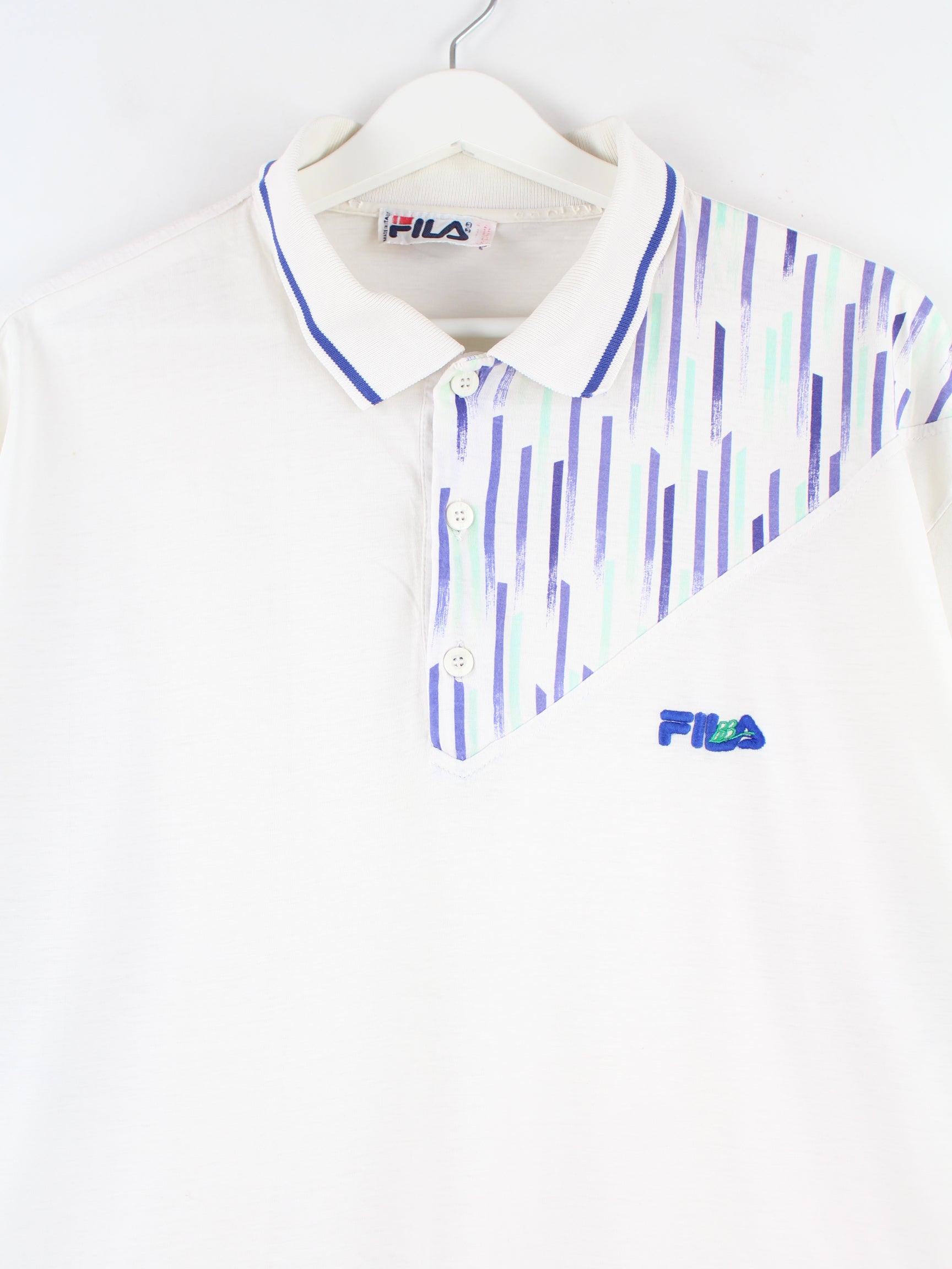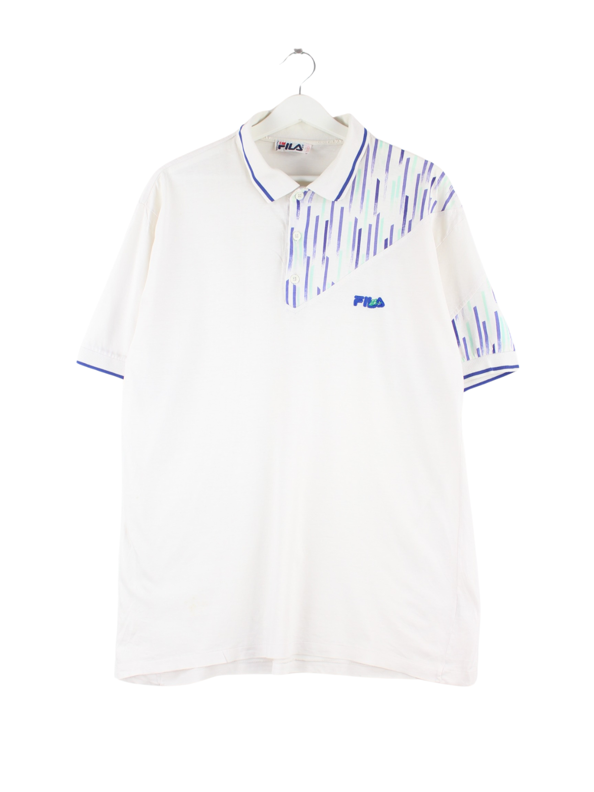 Polo shirt from the brand Fila in size XL from the 90's. It is made of cotton and in stock in white.