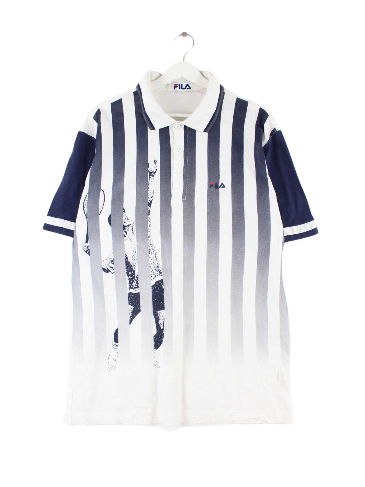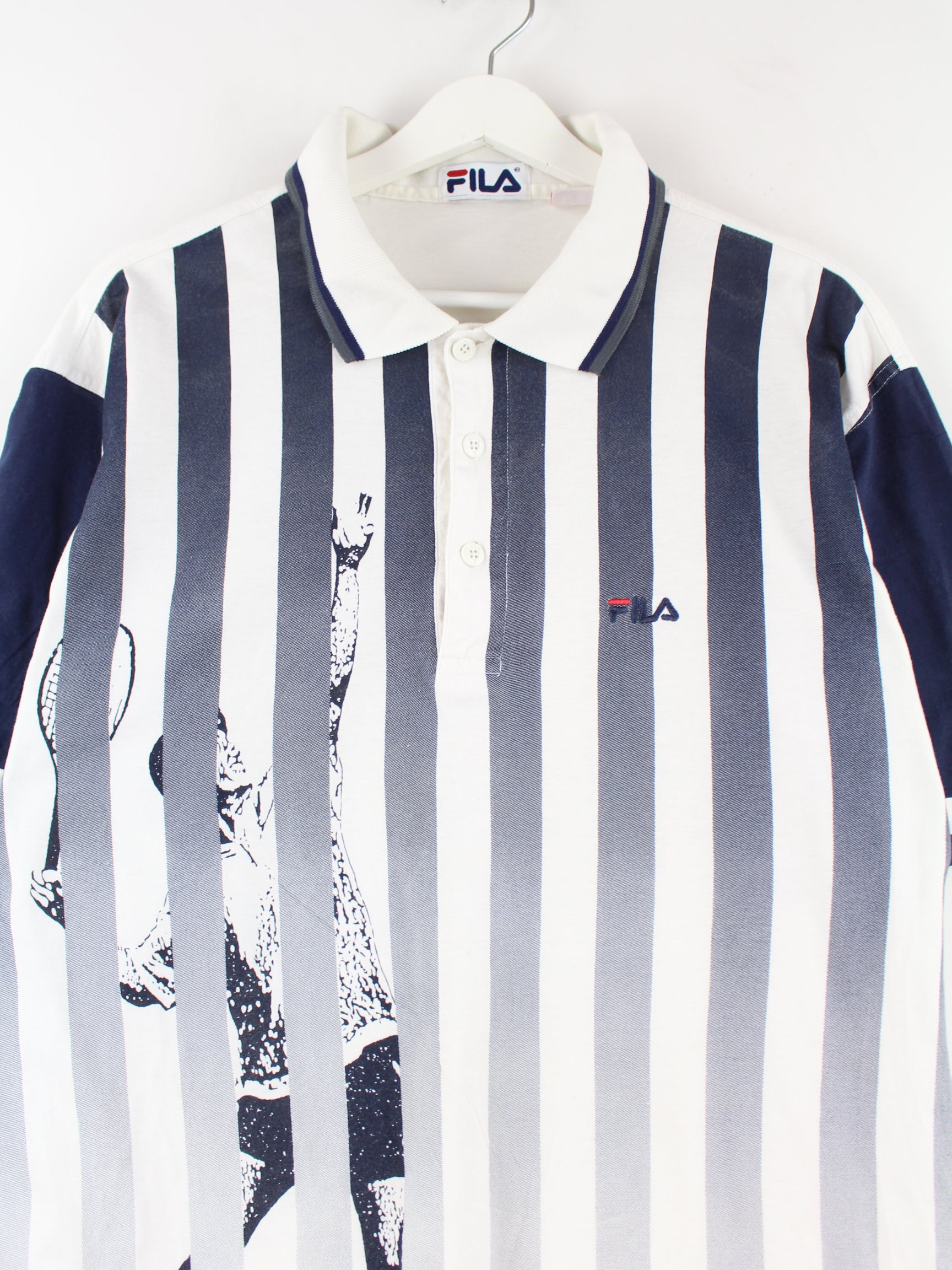 Fila 90s Vintage Tennis Print Polo White M