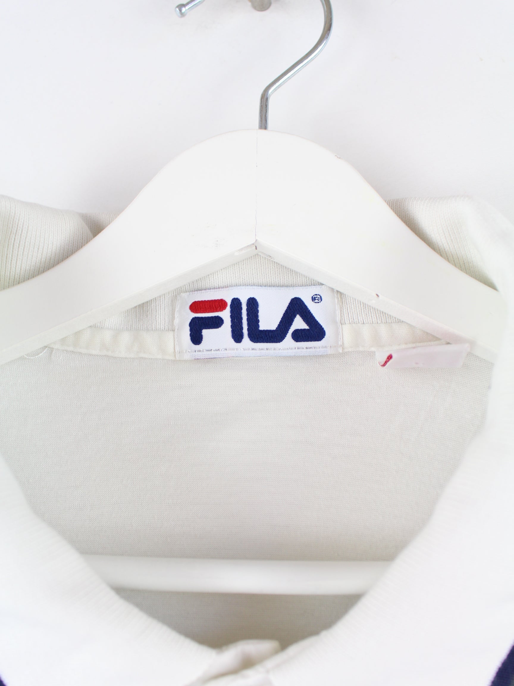 Polo shirt from the Fila label in size M from the 90's. It is made of cotton and available in white. With a chic tennis print.