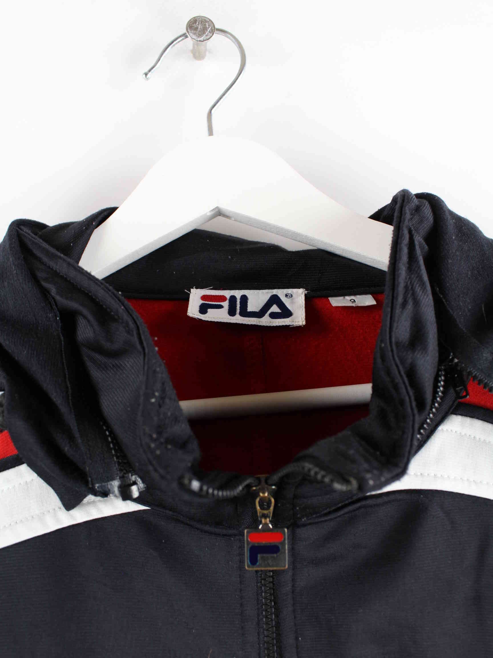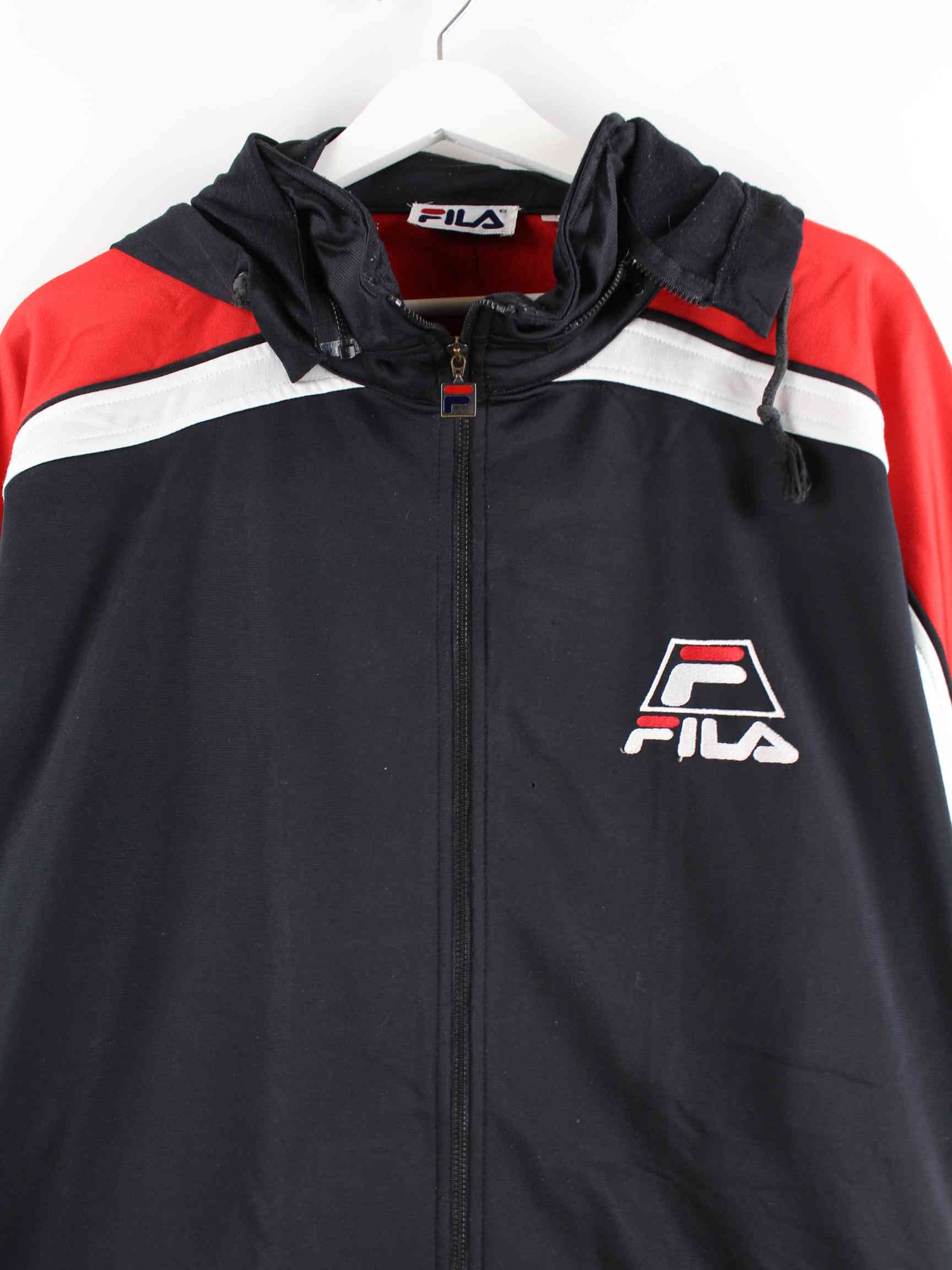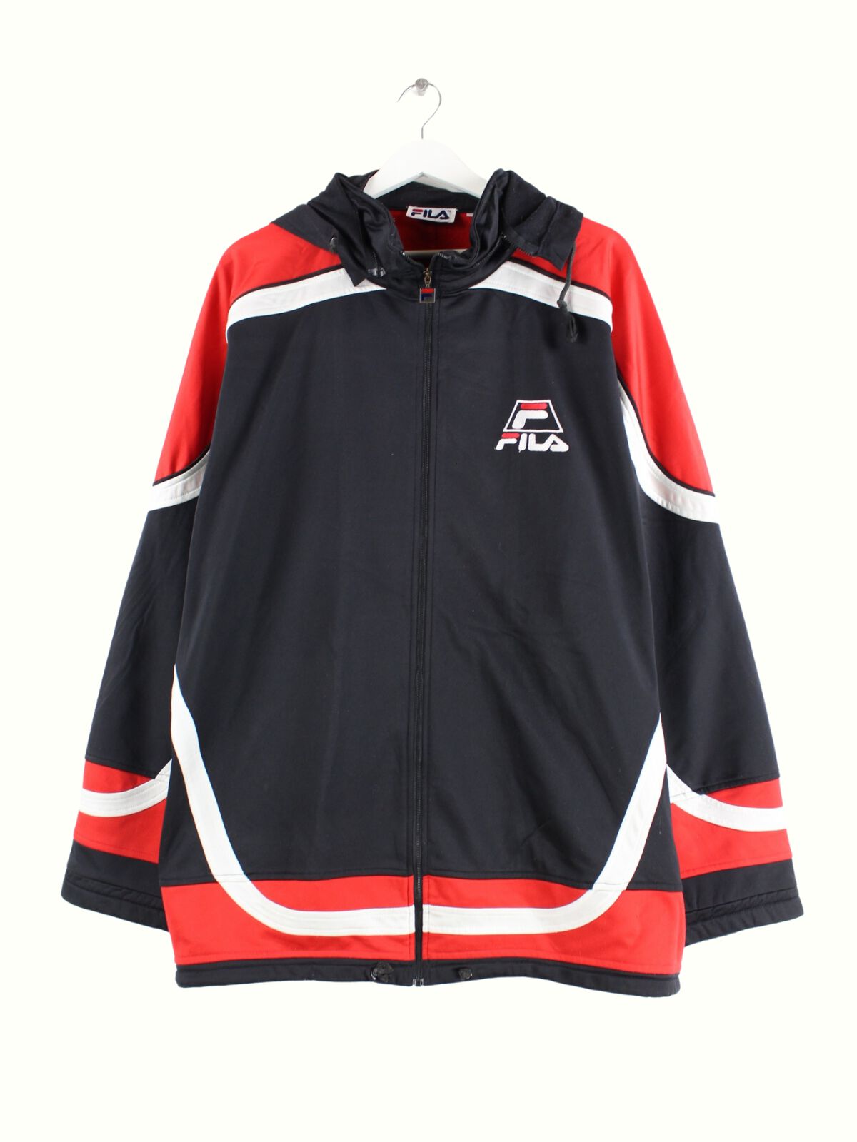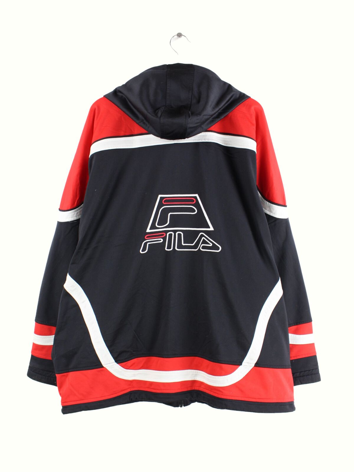 Fila brand training jacket in size XXL from the 90s. It is made of synthetic and comes in black in stock.
