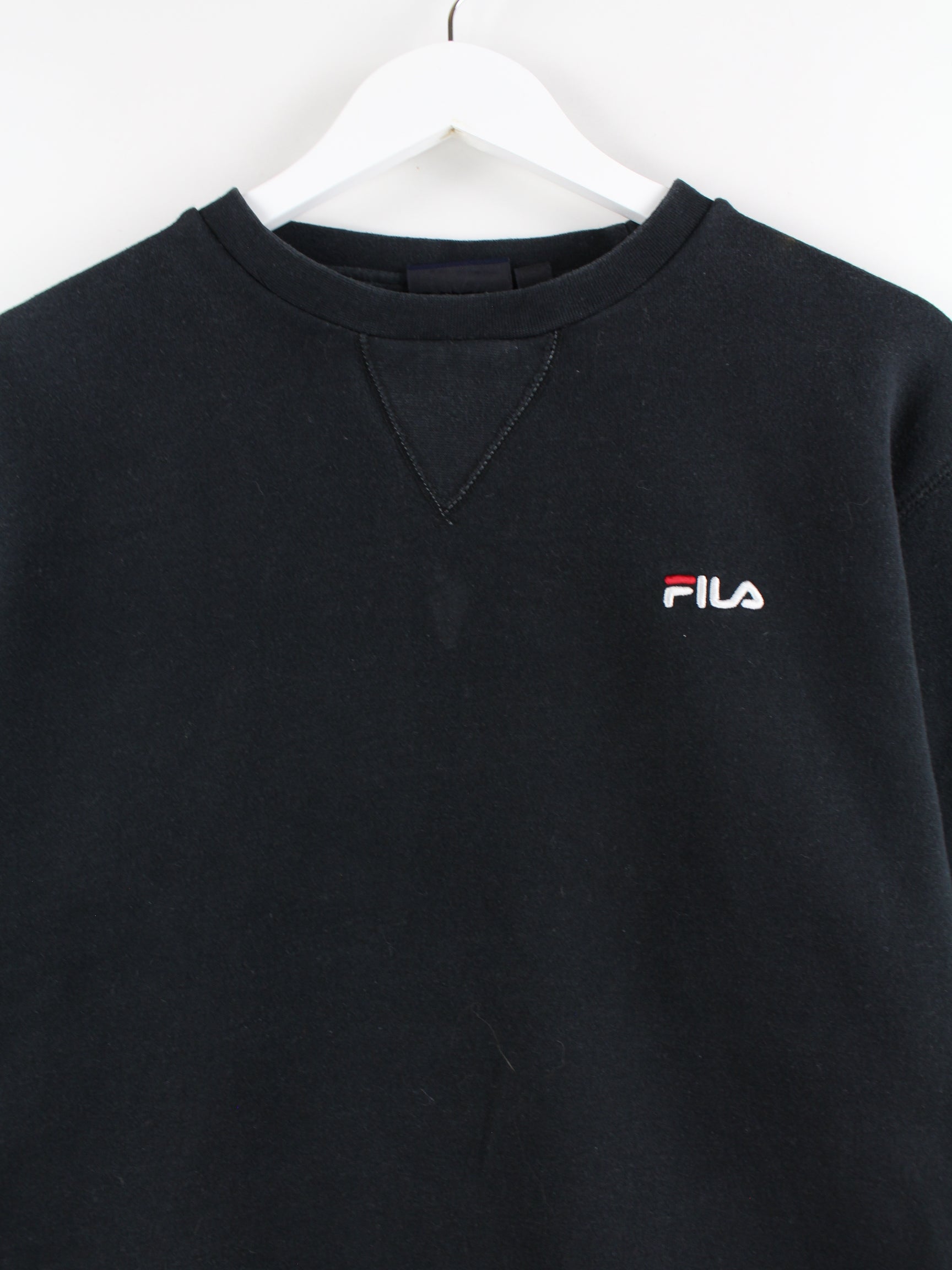 Fila sweater with embroidered logo in size L. It is made of a cotton blend and is available in black.