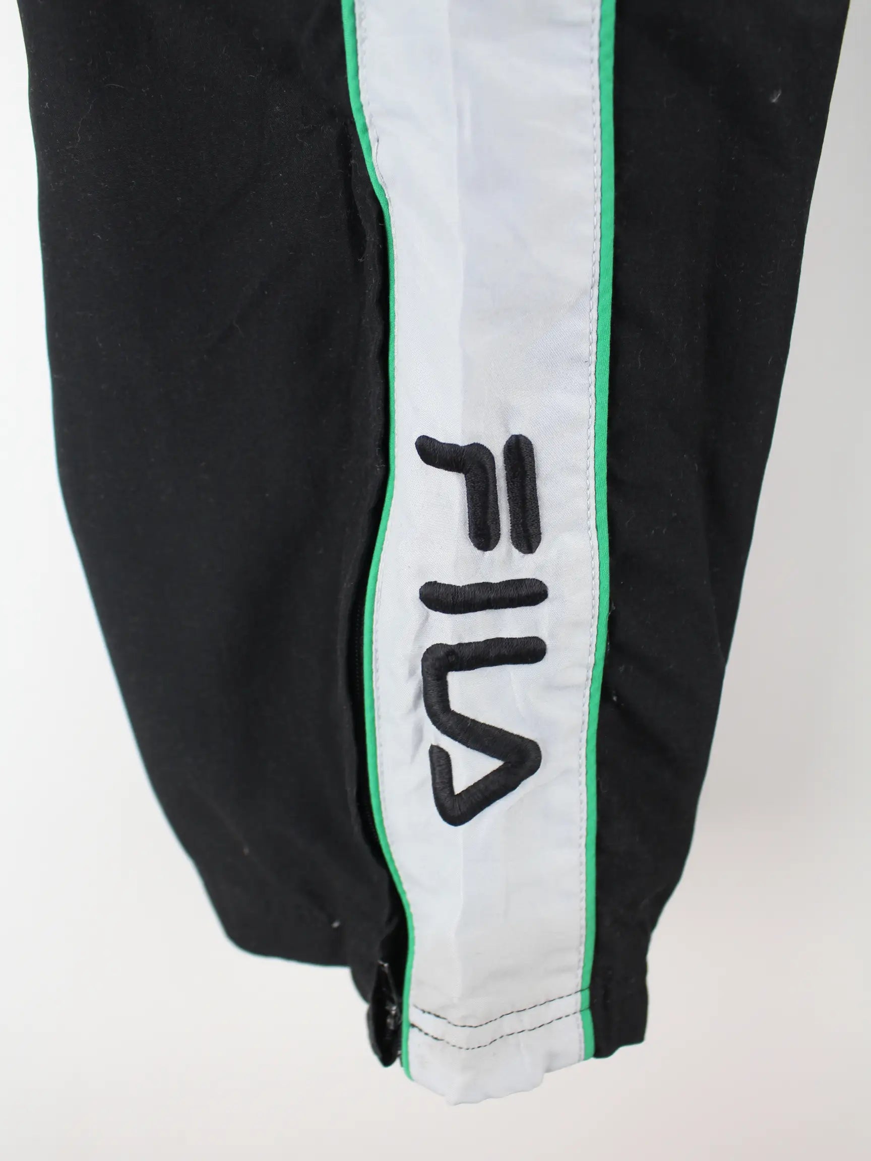Track Pants der Marke Fila in Größe M. Sie sind aus Synthetik gemacht und in Schwarz bei uns vorrätig.