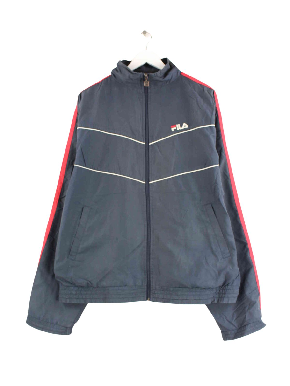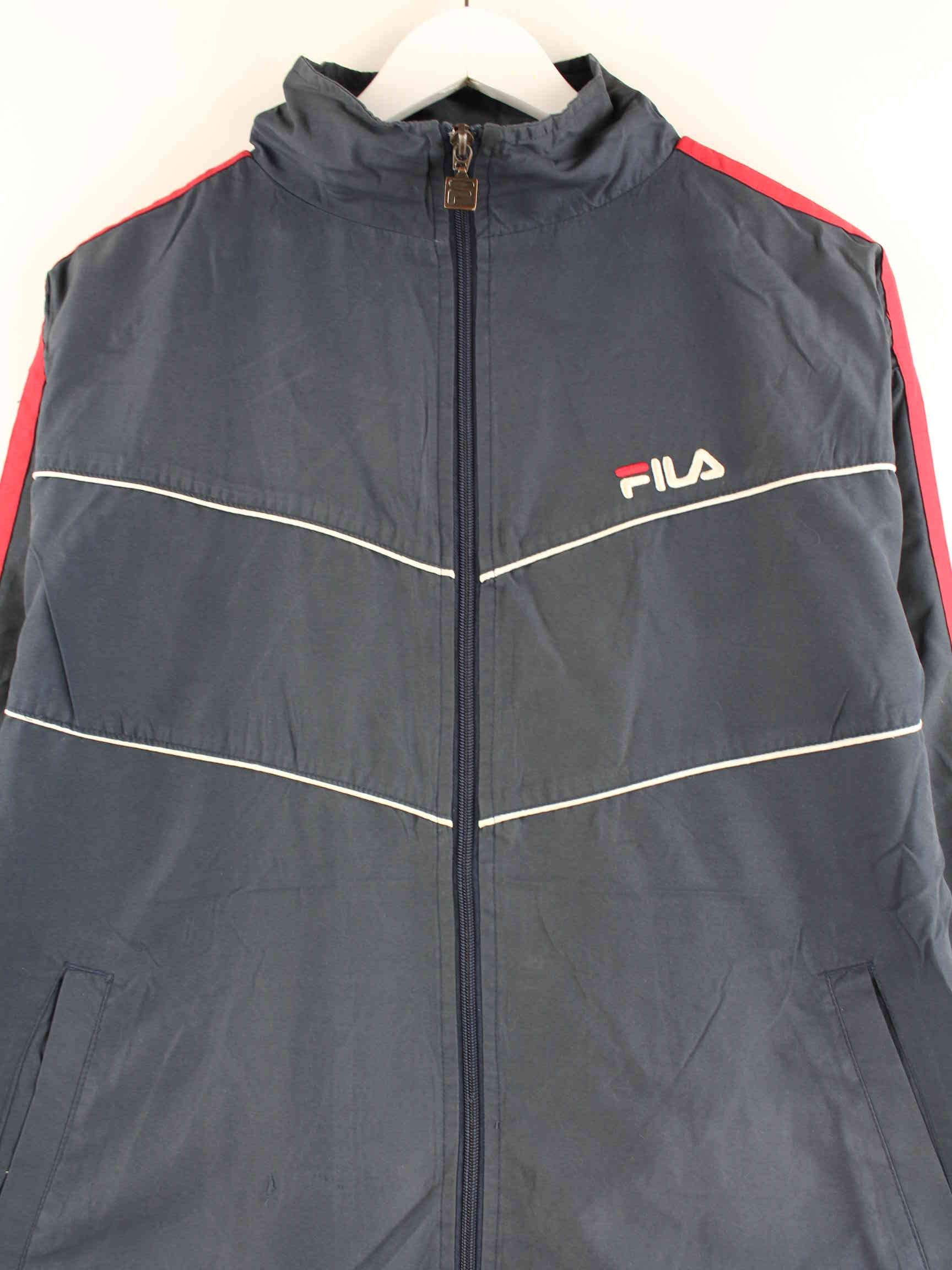 Gray training jacket from the Fila label from the early 2000s in size XXL. It is made of synthetic material and is in very good condition in stock.