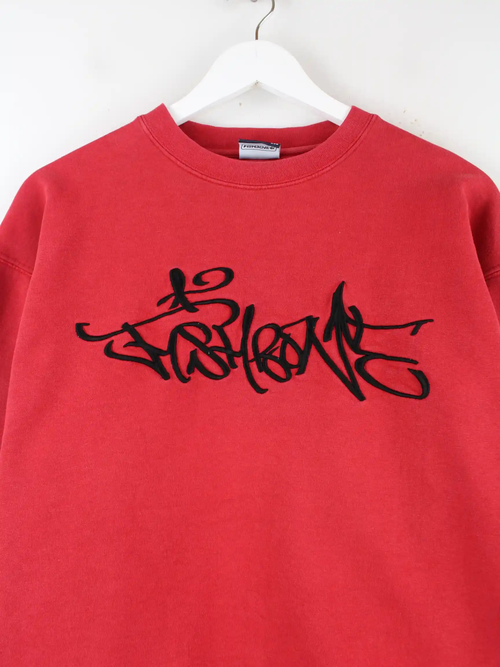 Roter Sweater mit Stick von Fishbone aus Anfang der 2000'er in Größe M. Er ist aus einer Baumwollmischung produziert und in gutem Zustand zu bekommen.