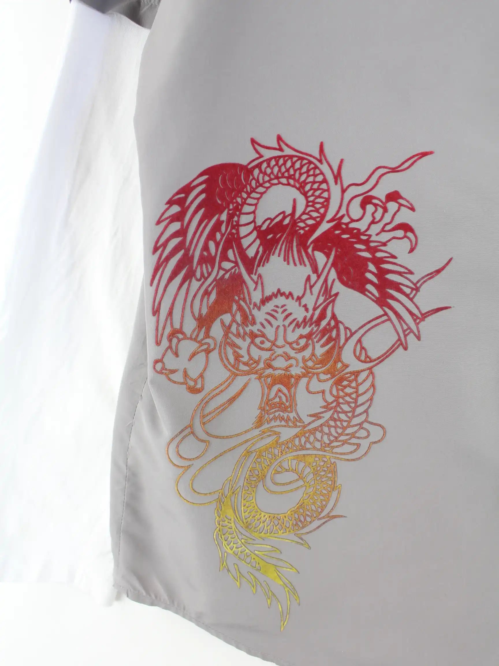 Freizeit Hemd des Labels Fishbone in Größe XL aus Anfang der 2000'er. Es ist aus Baumwolle produziert und in Grau im Bestand. Mit tollem Dragon Print.