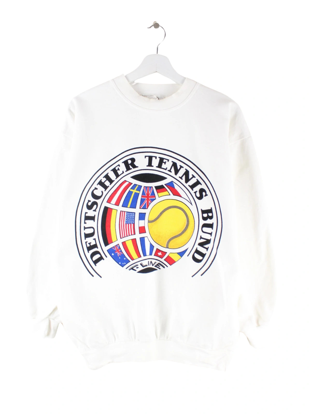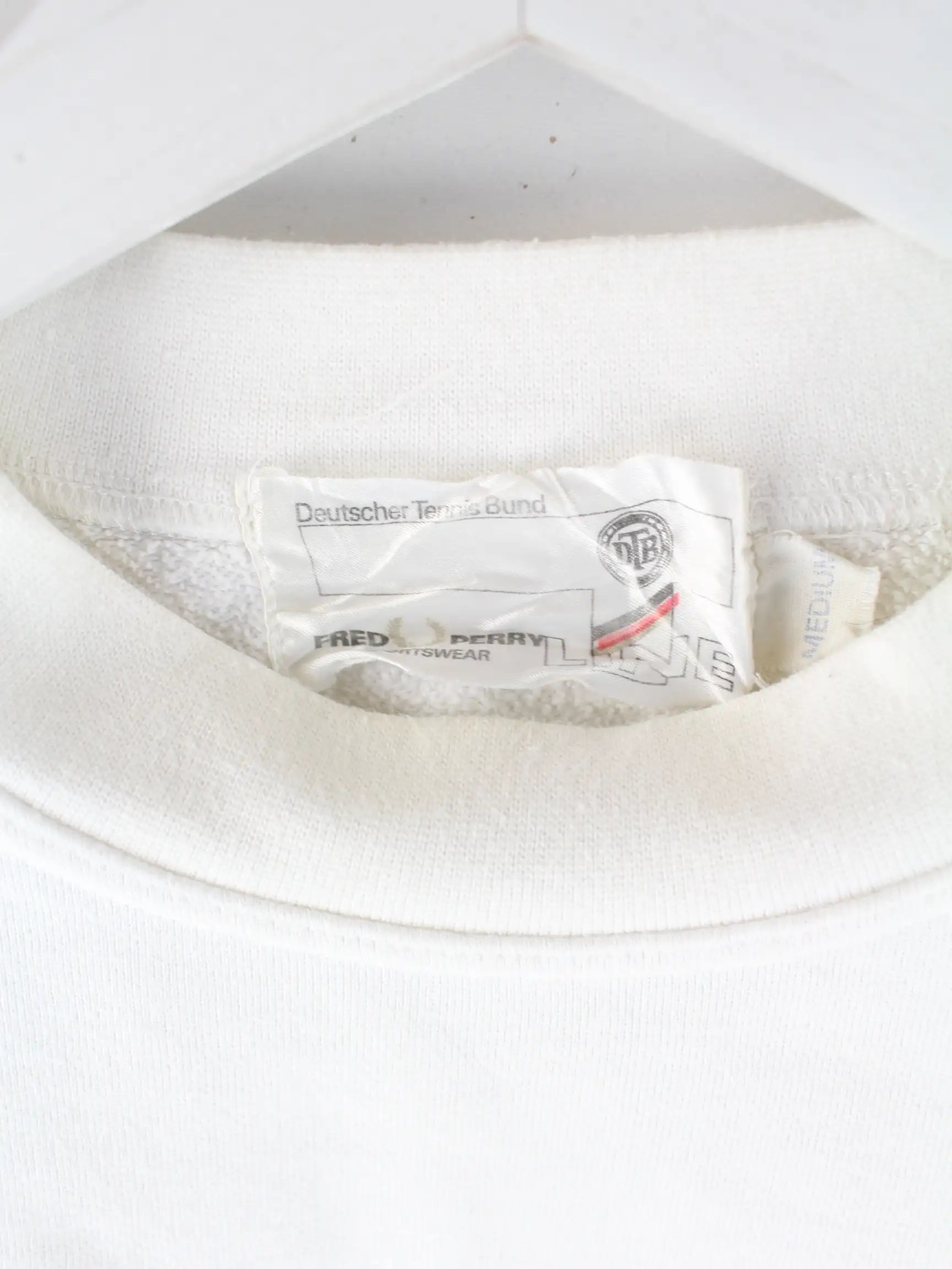 Fred Perry 90s Vintage Deutschland Tennis Bund Print Sweater Weiß M