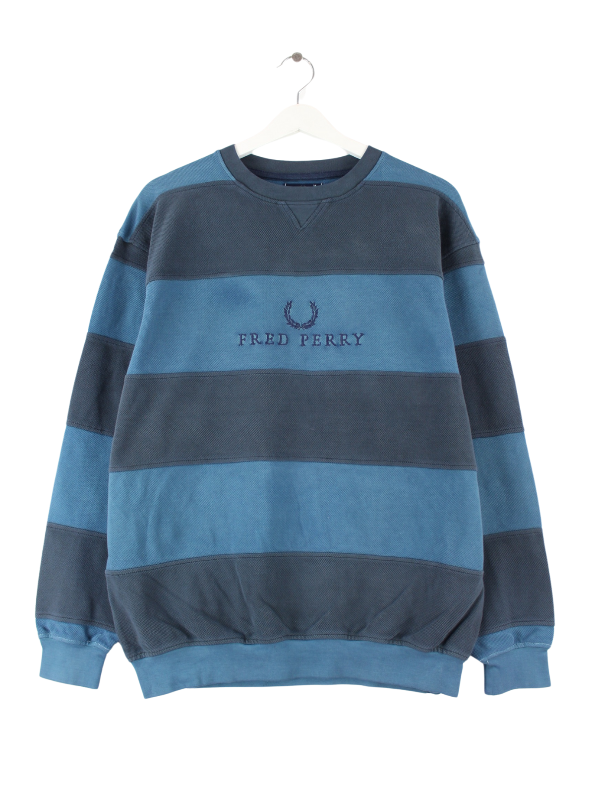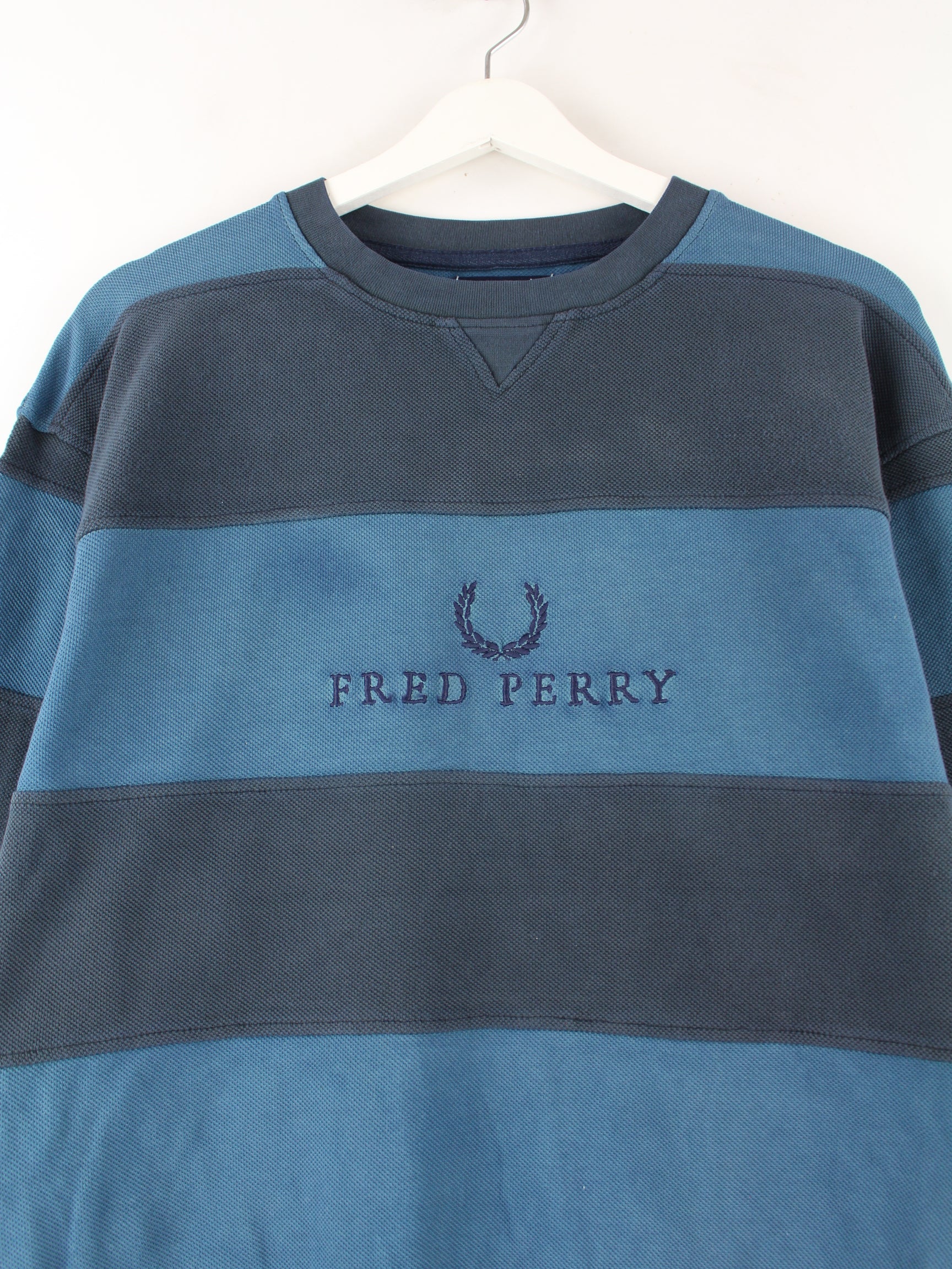 Fred Perry 90s Vintage Embroidered Striped Sweater Blue M